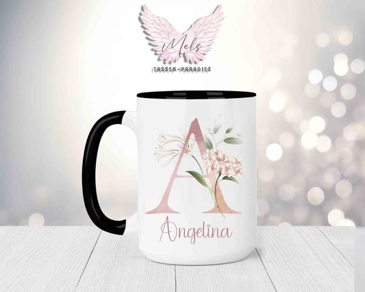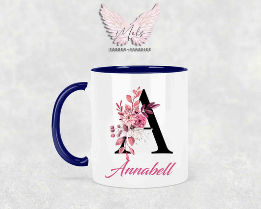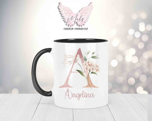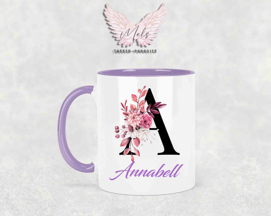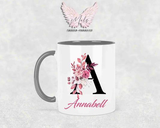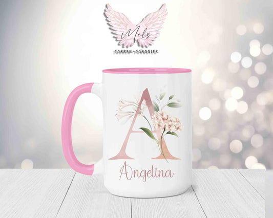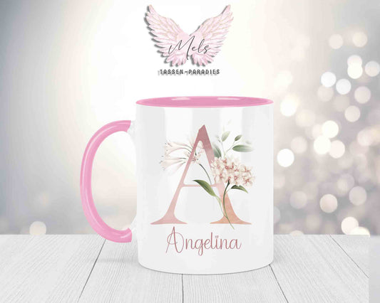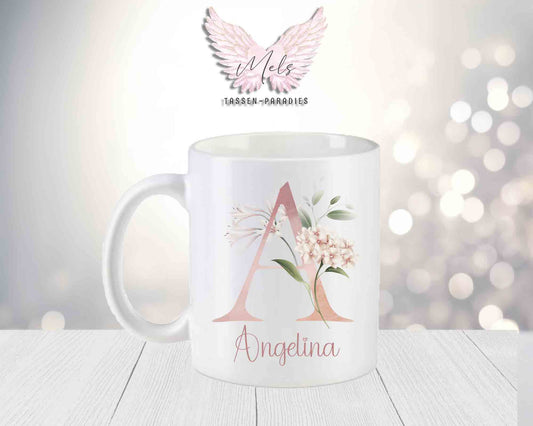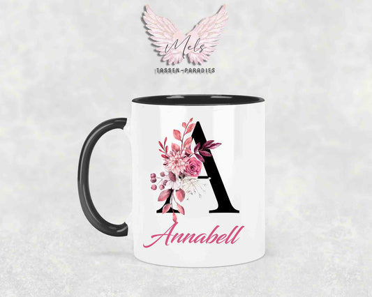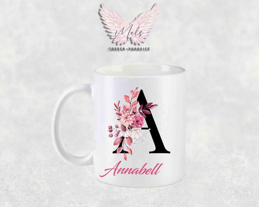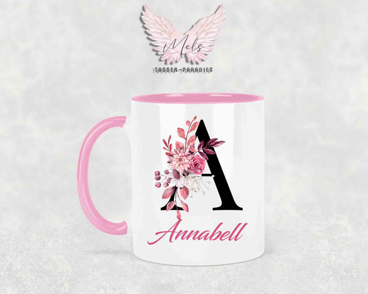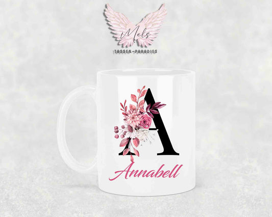 Blumen-Alphabet mit Name - Personalisierte Keramik-Tasse Rosa