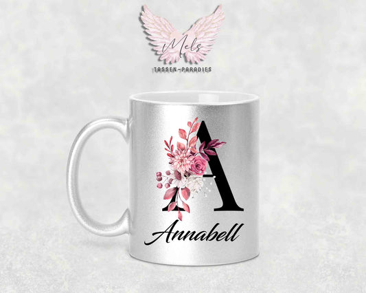 Alphabet mit Name - Personalisierte Keramik-Tasse Silber Met.