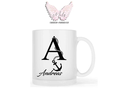 Anker-Alphabet mit Name - Personalisierte satinierte Glas-Tasse