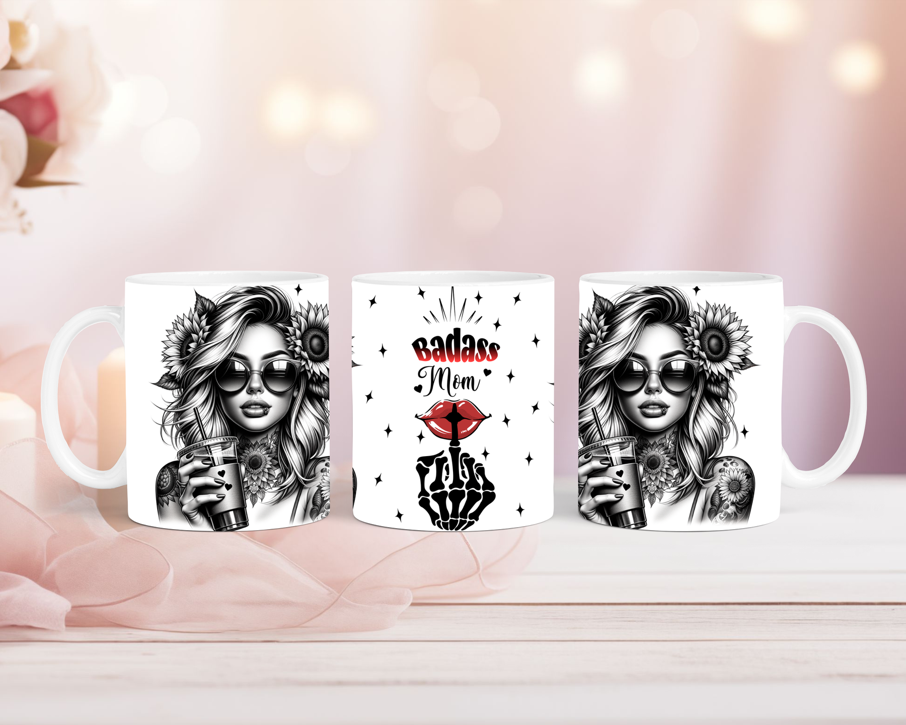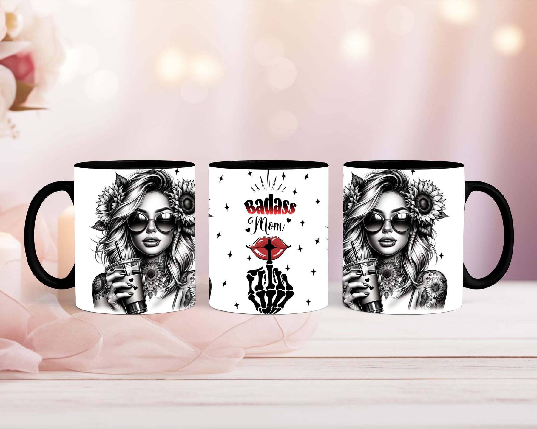 Tasse Badass Mom starke Frau mit Sonnenblumen