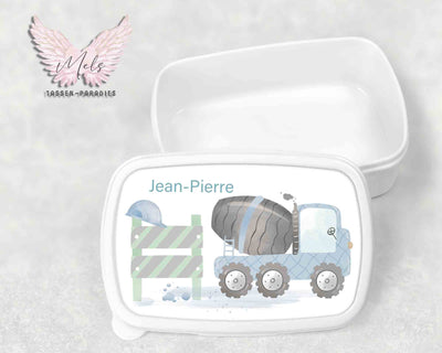 Baustelle 6 - Personalisierte Kinder-Brotbox / Lunchbox weiß mit und ohne Name