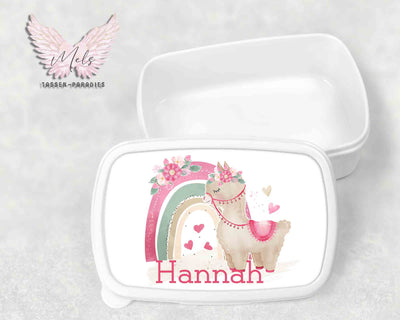 Lama 2 - Personalisierte Kinder-Brotbox / Lunchbox weiß mit und ohne Name