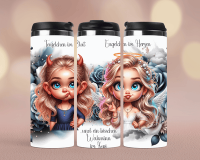 Thermobecher Tätowierte Frau mit Blumen & Spruch (Edelstahl, 340 ml)