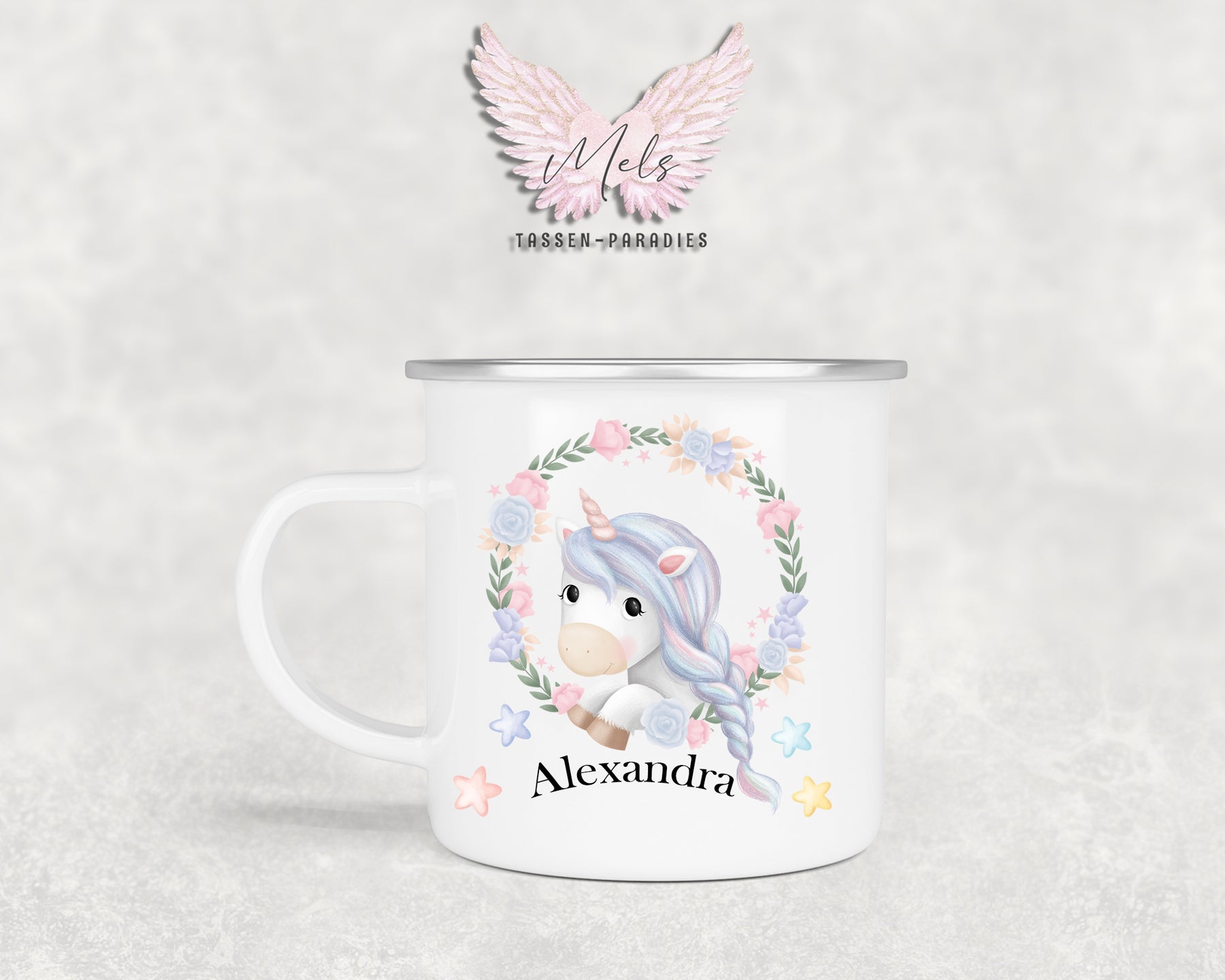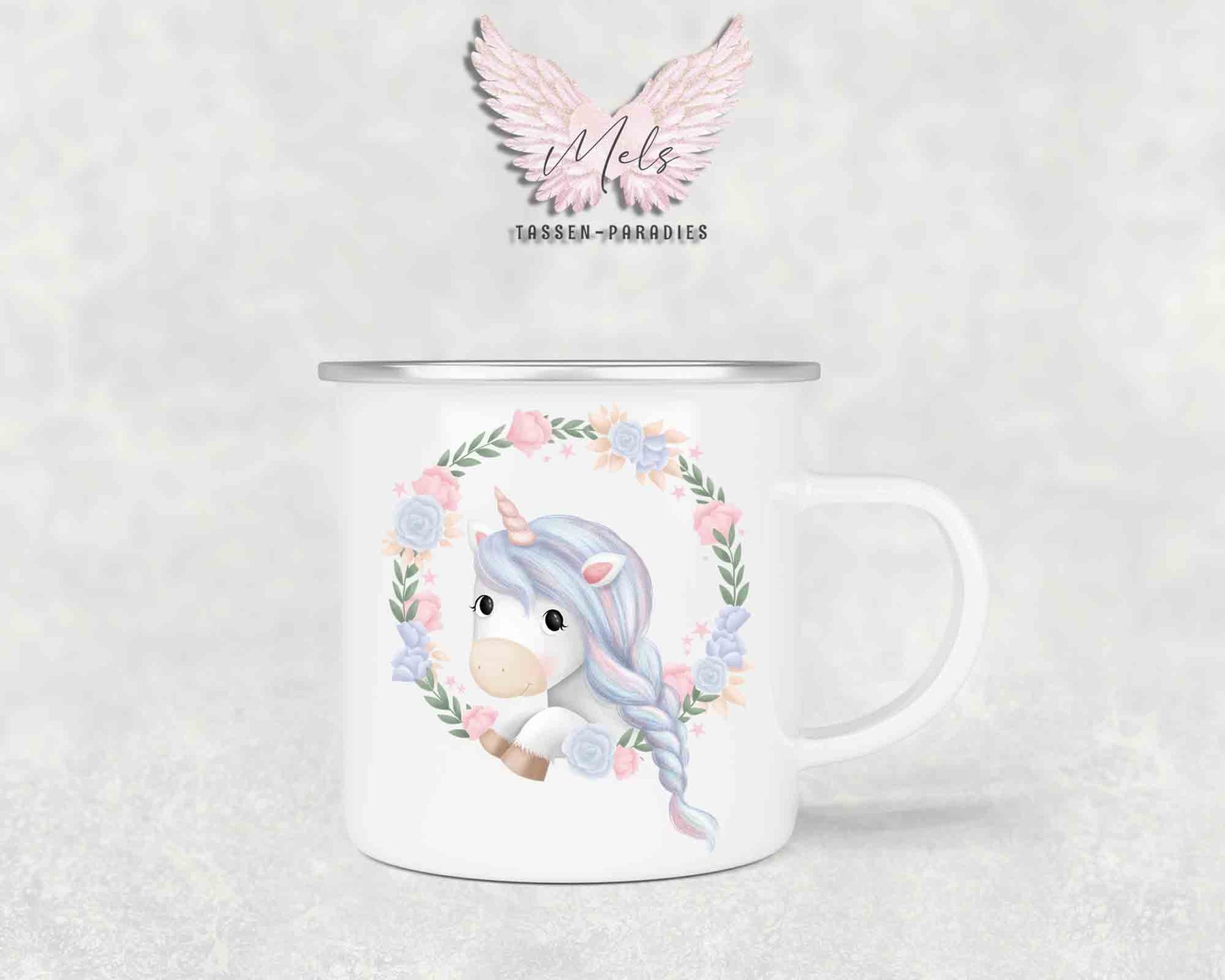 Hinweis: Stellenweise können folgende Unregelmäßigkeiten auftreten: - Leichte Schwellungen und Dellen (ohne Schmelzverlust) - Schwarze Punkte < 1 mm groß auf der Becheroberfläche und am Henkel - Inhomogener weißer Belag auf Becher und Henkel Diese Unregelmäßigkeiten sind auf den einzigartigen Herstellungsprozess von Emaille-Produkten zurückzuführen und unvermeidbar, sie stellen keinen Reklamationsgrund dar.