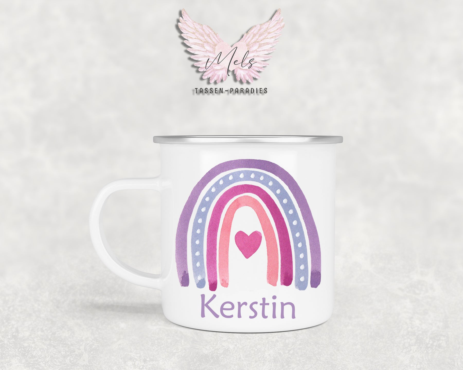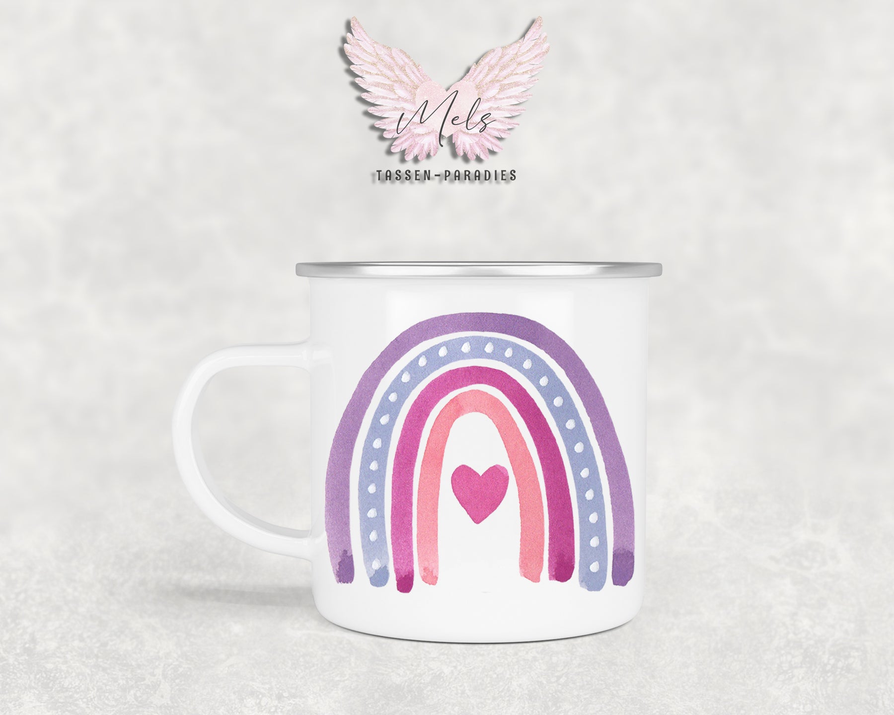 Hinweis: Stellenweise können folgende Unregelmäßigkeiten auftreten: - Leichte Schwellungen und Dellen (ohne Schmelzverlust) - Schwarze Punkte < 1 mm groß auf der Becheroberfläche und am Henkel - Inhomogener weißer Belag auf Becher und Henkel Diese Unregelmäßigkeiten sind auf den einzigartigen Herstellungsprozess von Emaille-Produkten zurückzuführen und unvermeidbar, sie stellen keinen Reklamationsgrund dar.