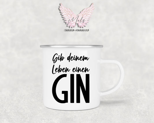 GIN "Leben" - Personalisierte Emailletasse mit und ohne Name