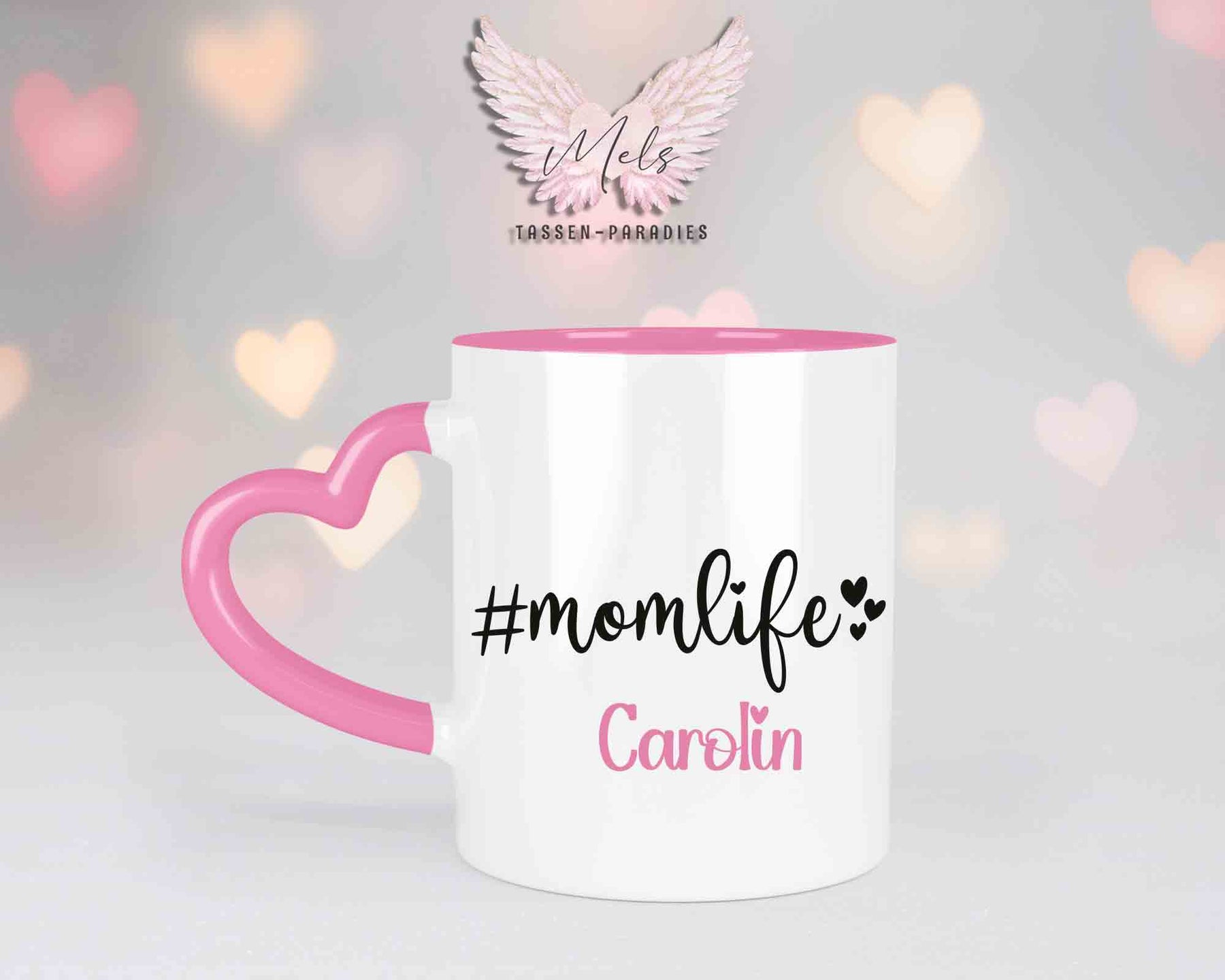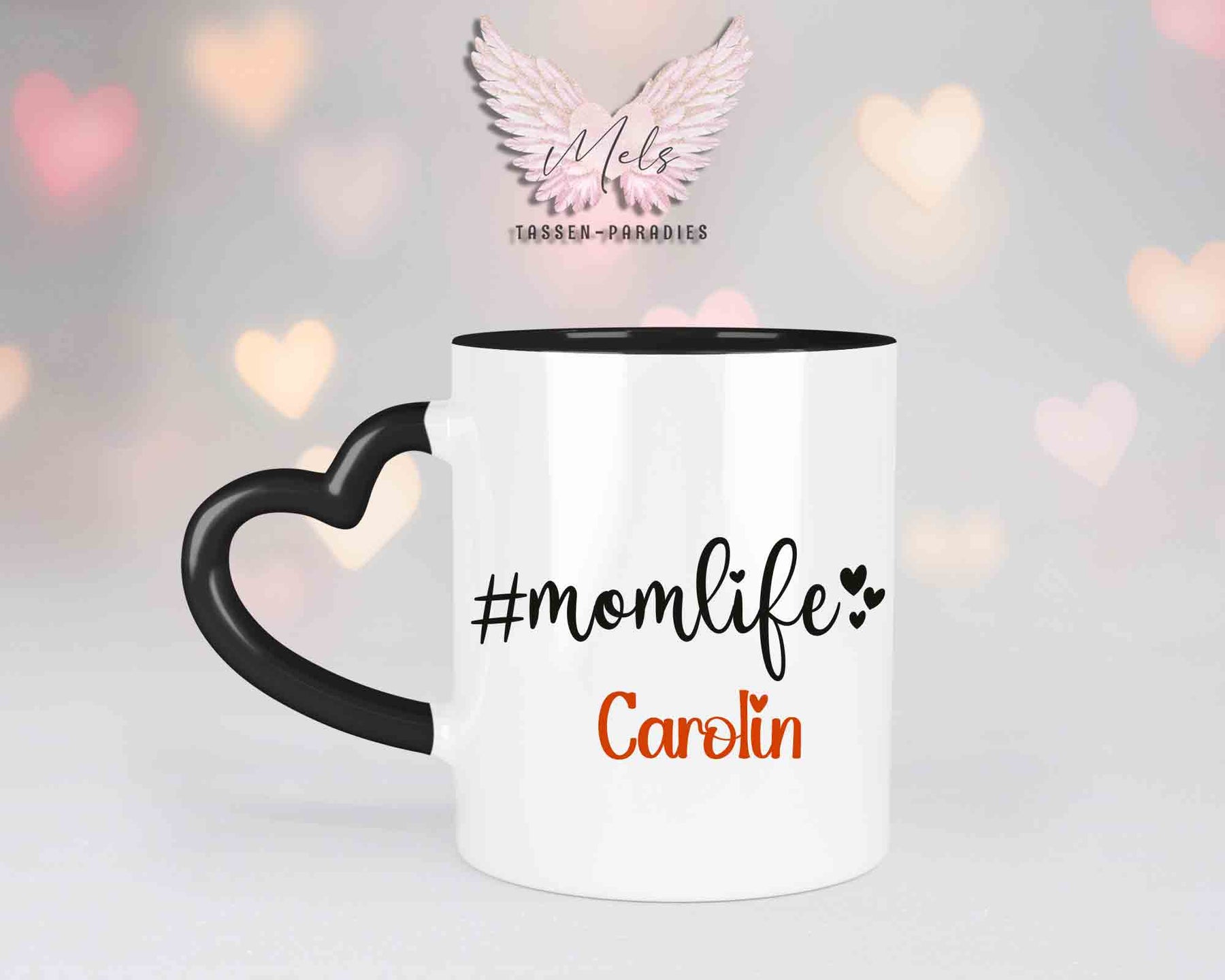Momlife 3 - mit Bild und wahlweise mit Name - Herz-Tasse
