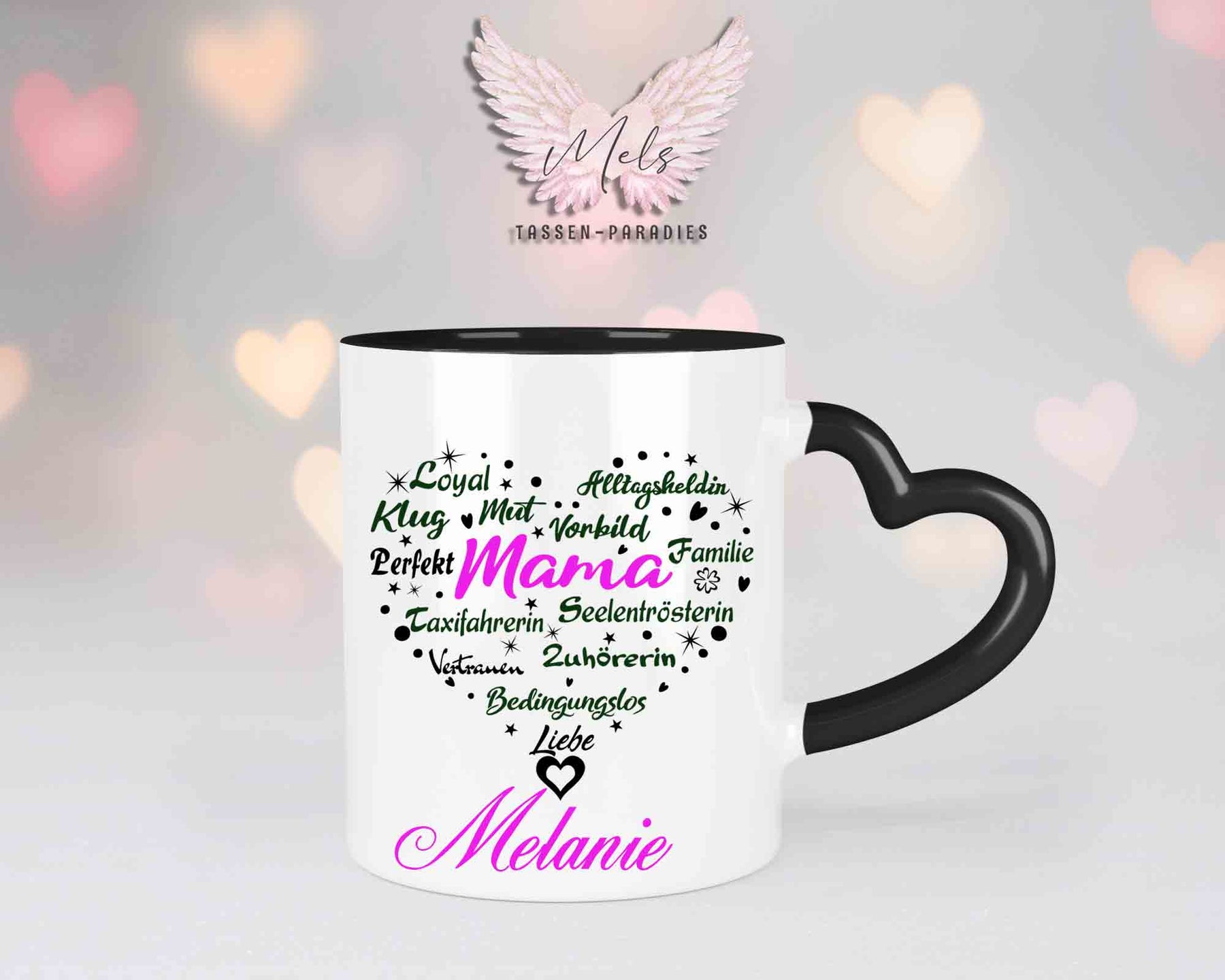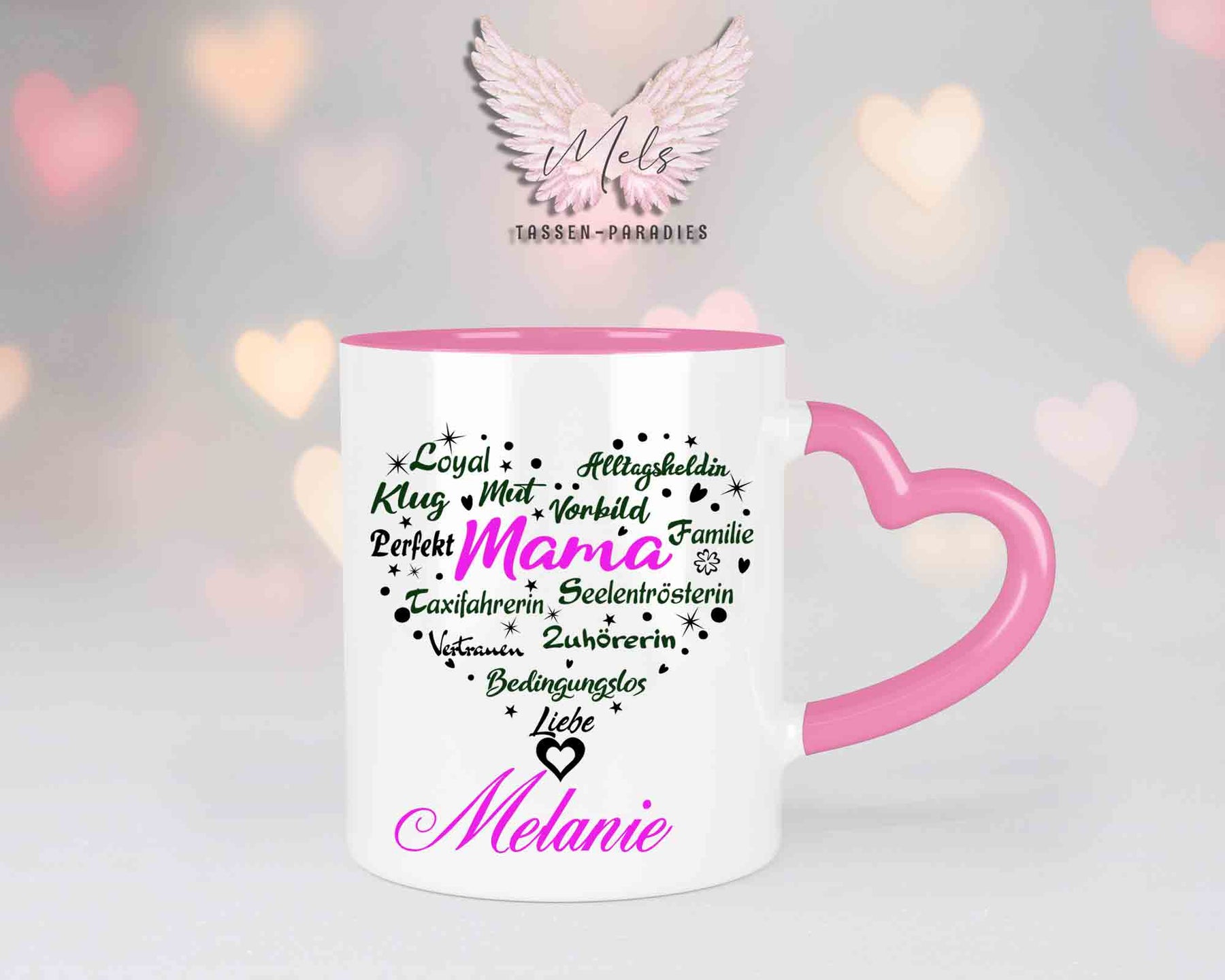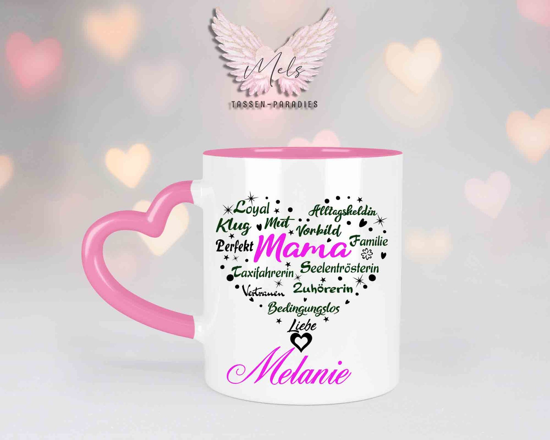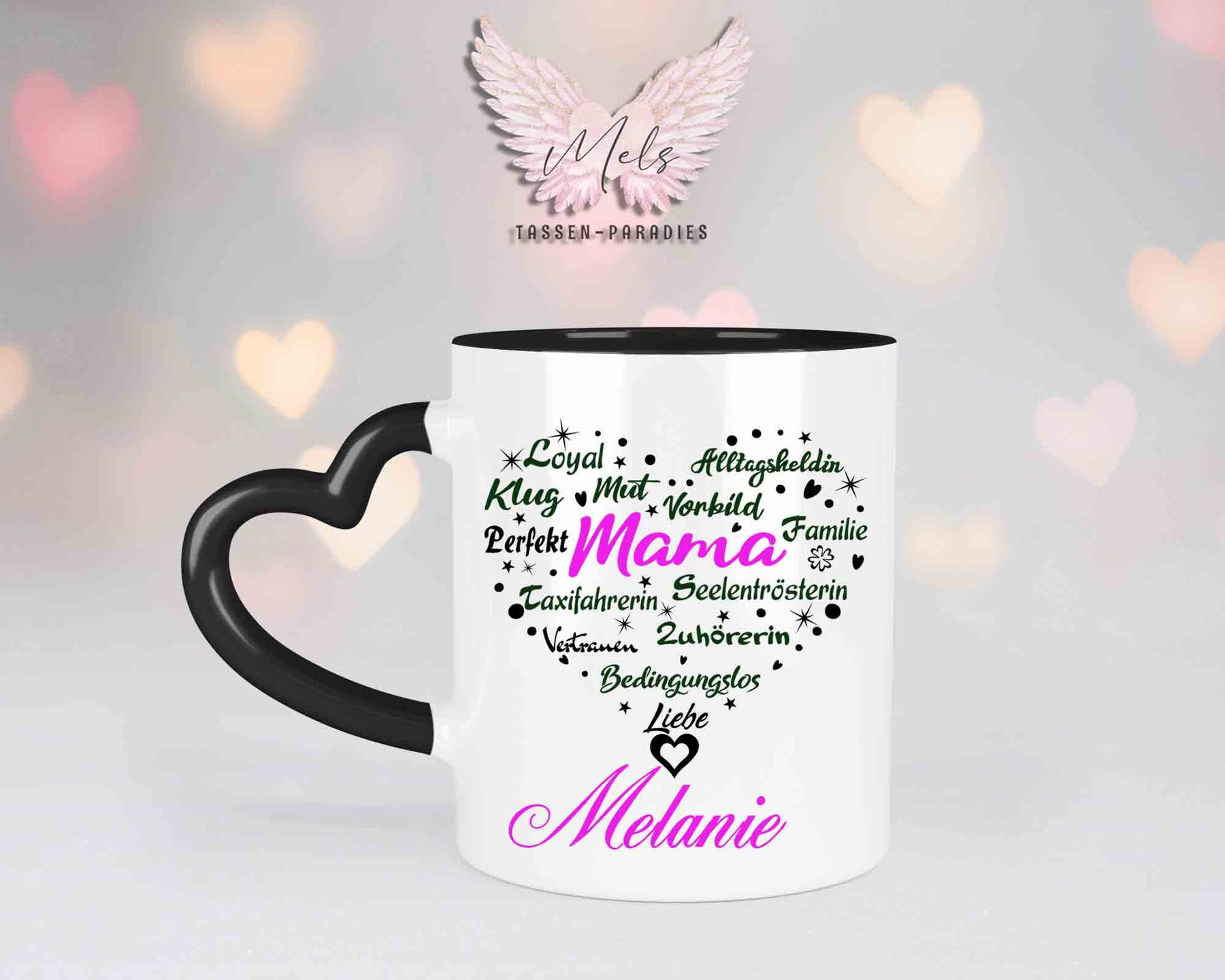 Sag es mit Herz-Mama - mit Bild und wahlweise mit Name - Herz-Tasse
