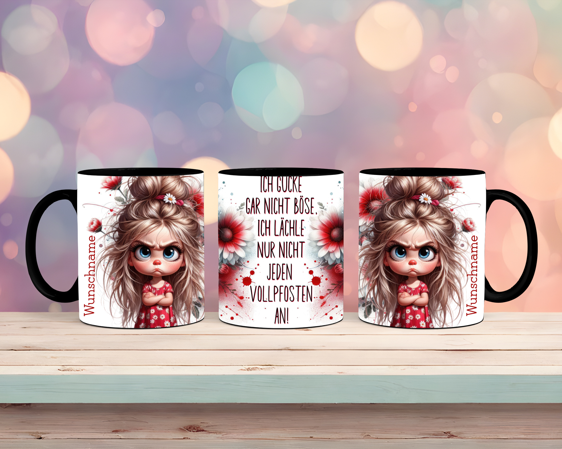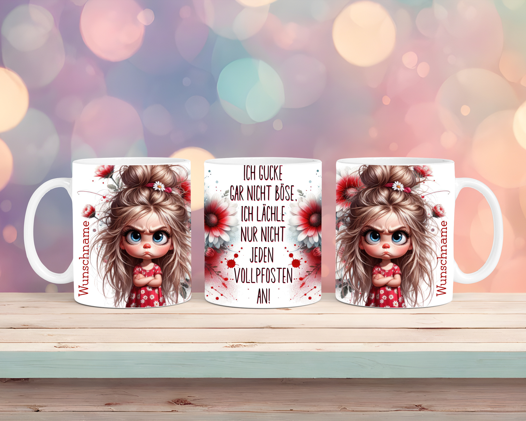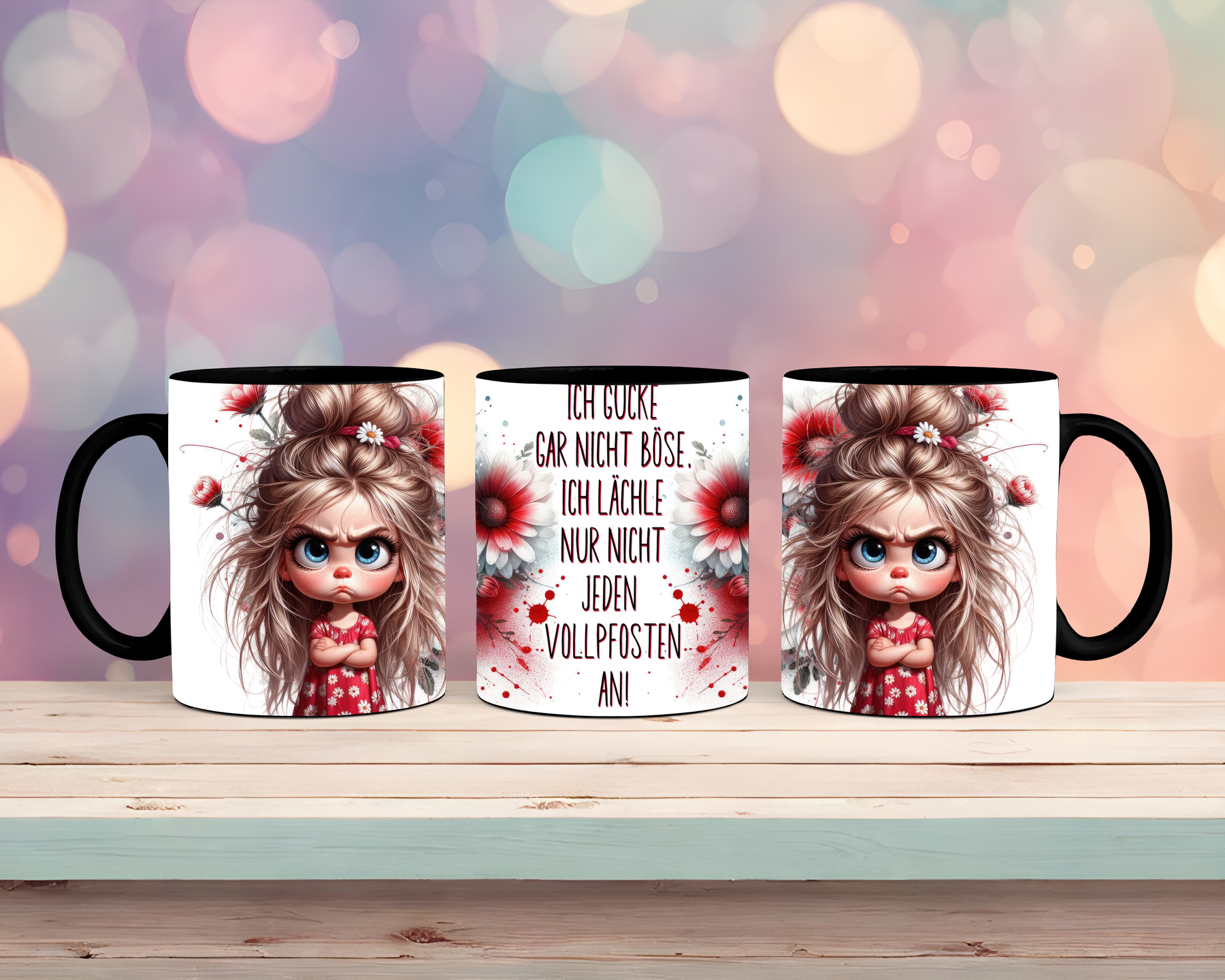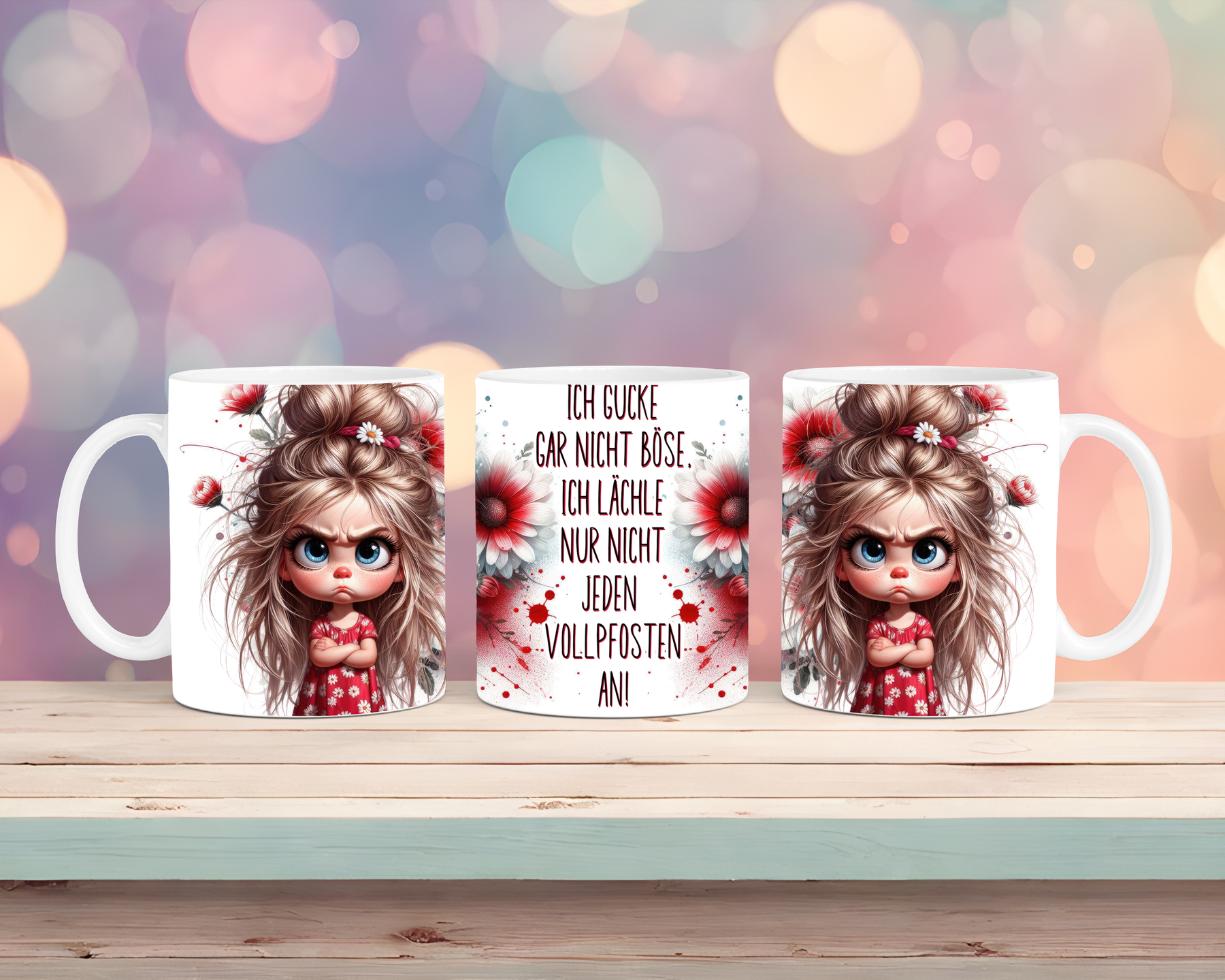 Diese freche Tasse mit Mädchen-Motiv kombiniert klares Design mit einer ordentlichen Portion Ehrlichkeit. Der sarkastische Spruch „Ich schaue nicht böse – ich lächle nur nicht jeden Vollpfosten an“ bringt die Botschaft charmant, aber deutlich rüber, perfekt fürs Büro, den Alltag oder Homeoffice.