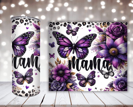 Thermobecher Mama mit Purple Blumen und Schmetterlingen