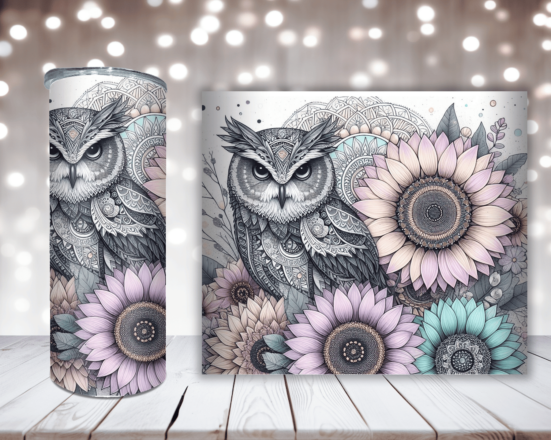 - Vollflächig bedruckt: Niedliche Eule mit Sonnenblumen ein fröhliches Design für Tierliebhaber.