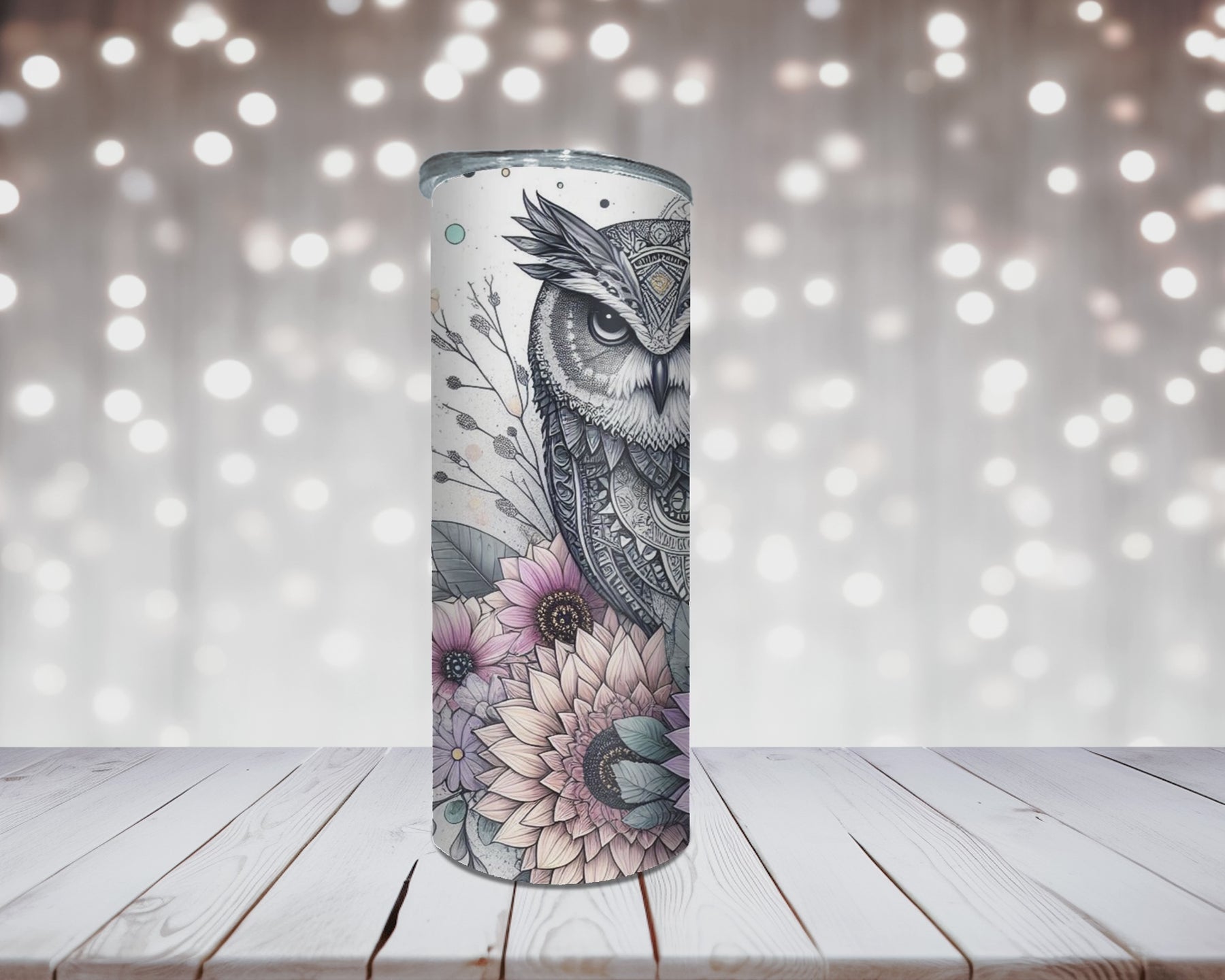 Thermobecher „Niedliche Eule mit Sonnenblumen“