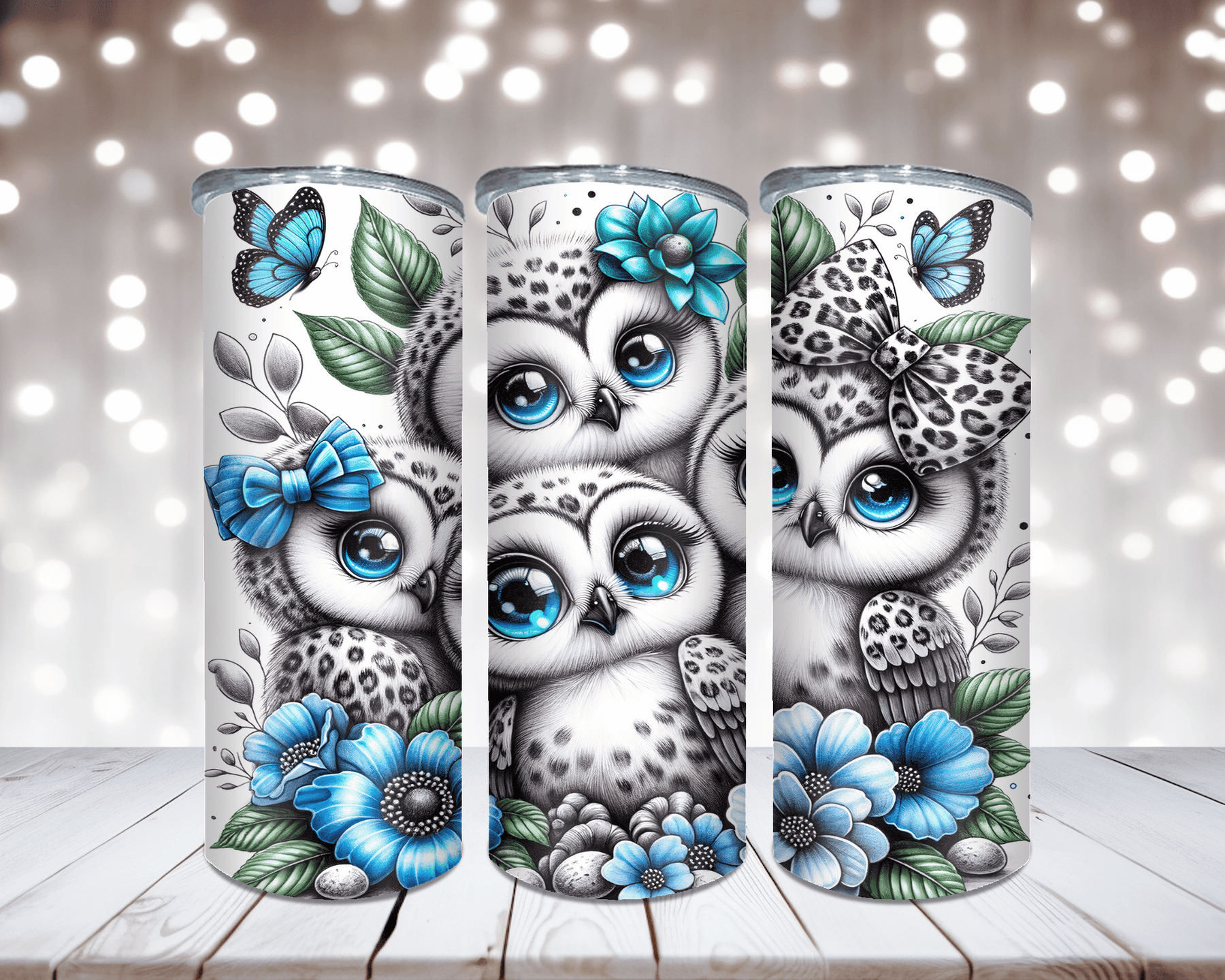 Der Thermobecher „Süße Eulenbabys mit Schleife“ vereint Niedlichkeit mit Funktionalität.