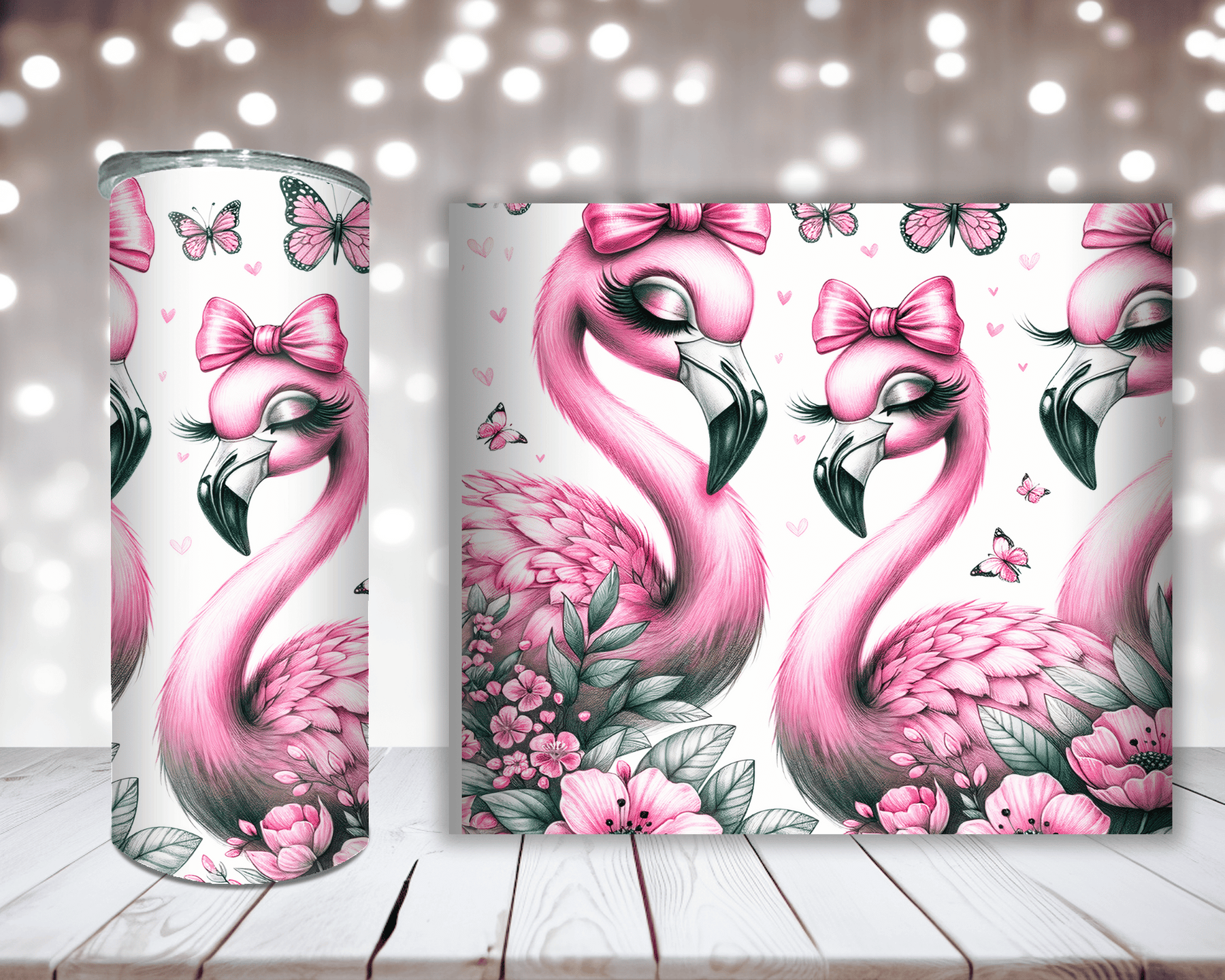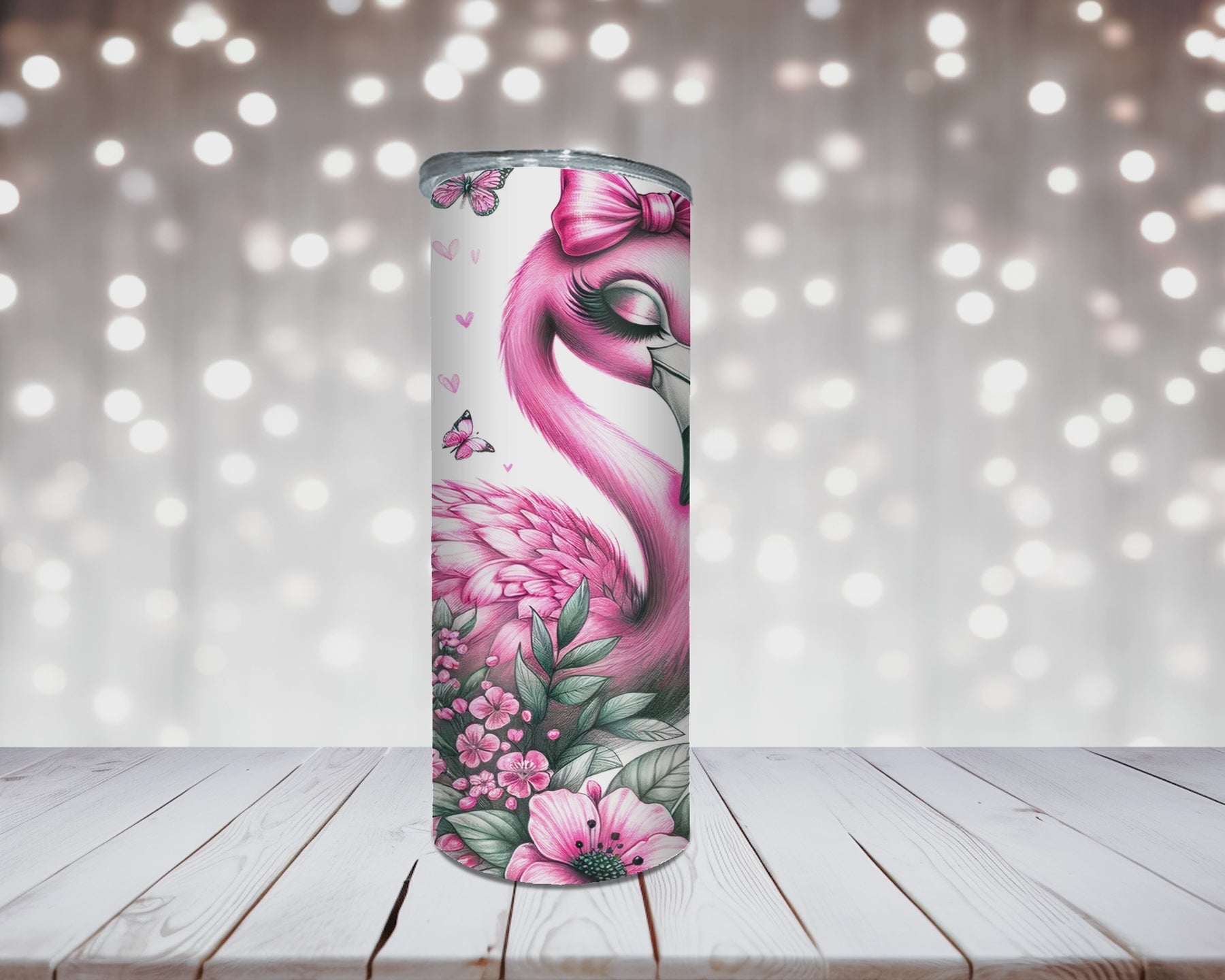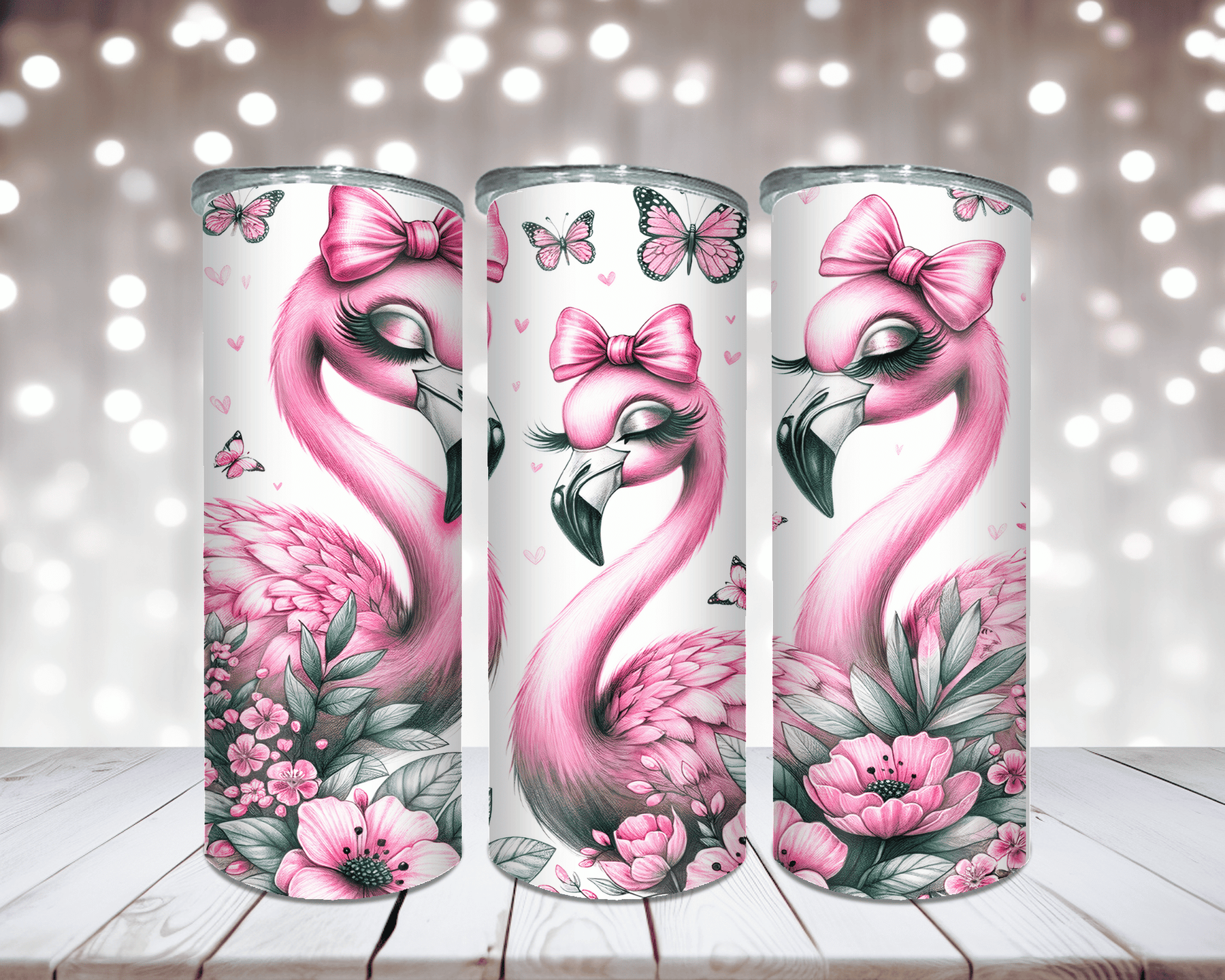 Der Thermobecher „Süße Flamingo mit Schleife“ kombiniert verspieltes Design mit hoher Funktionalität.