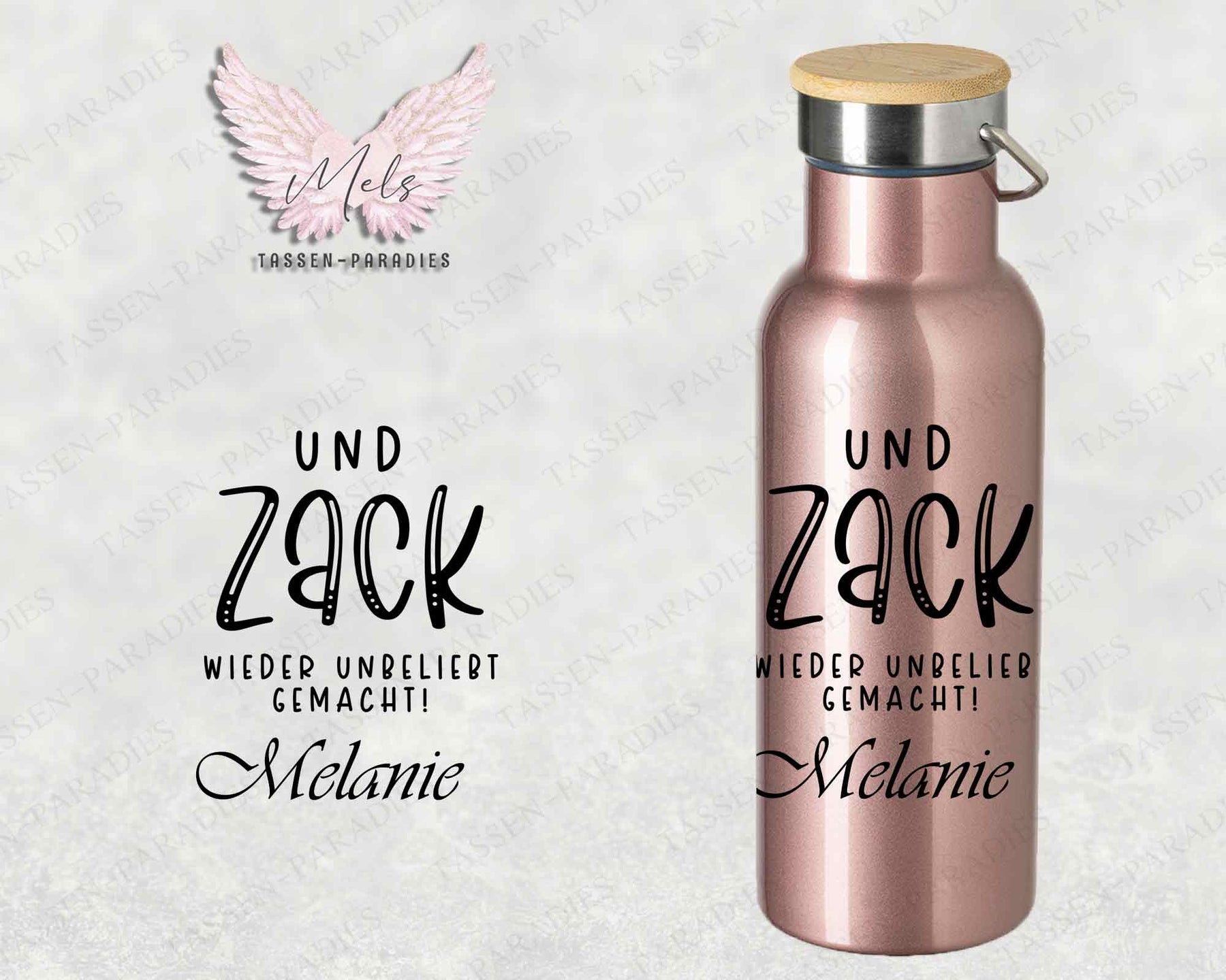 - hochwertige, doppelwandige und formschöne Edelstahl-Trinkfasche