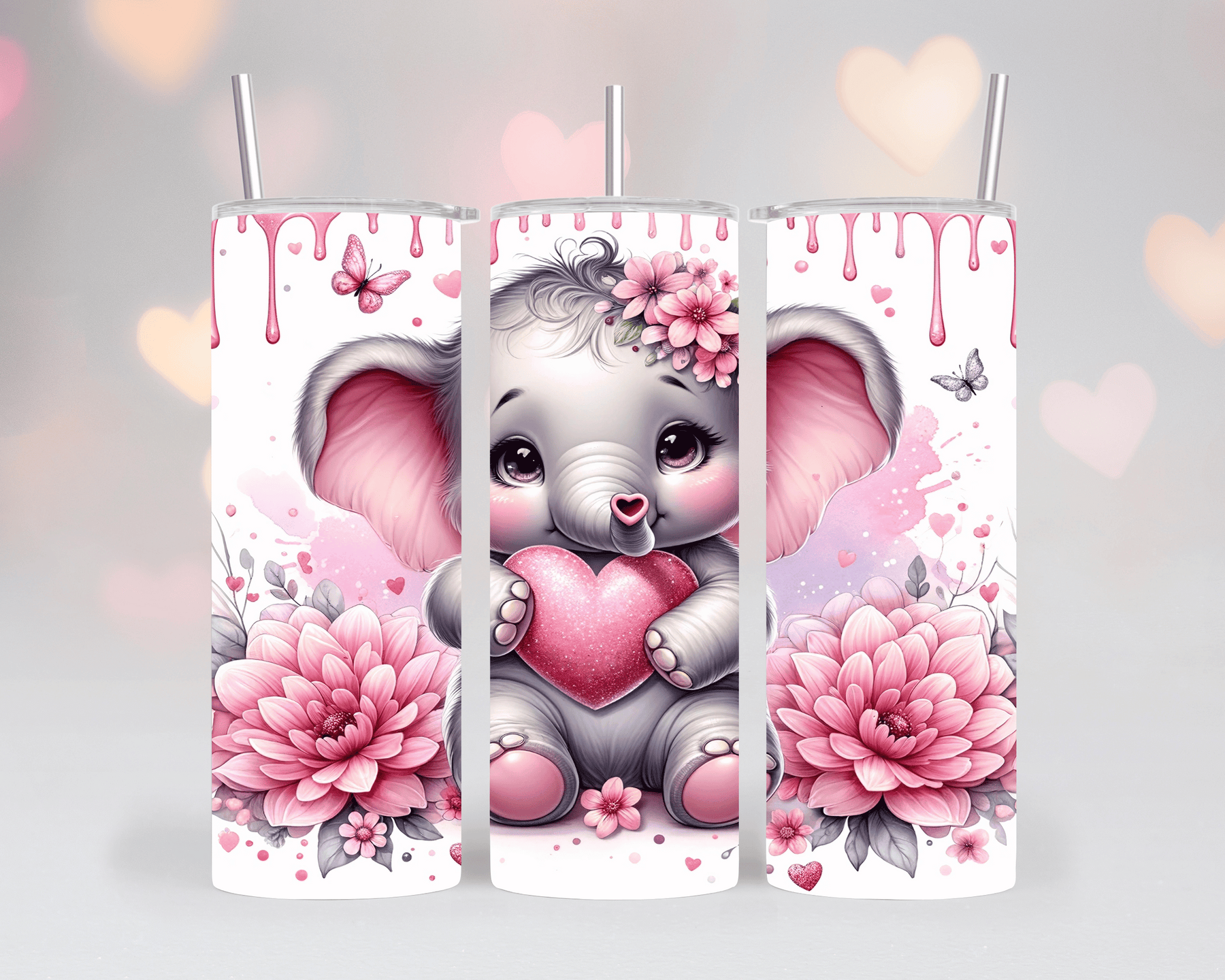 Thermobecher/Tumbler - Elefant mit Kuss & Blumen