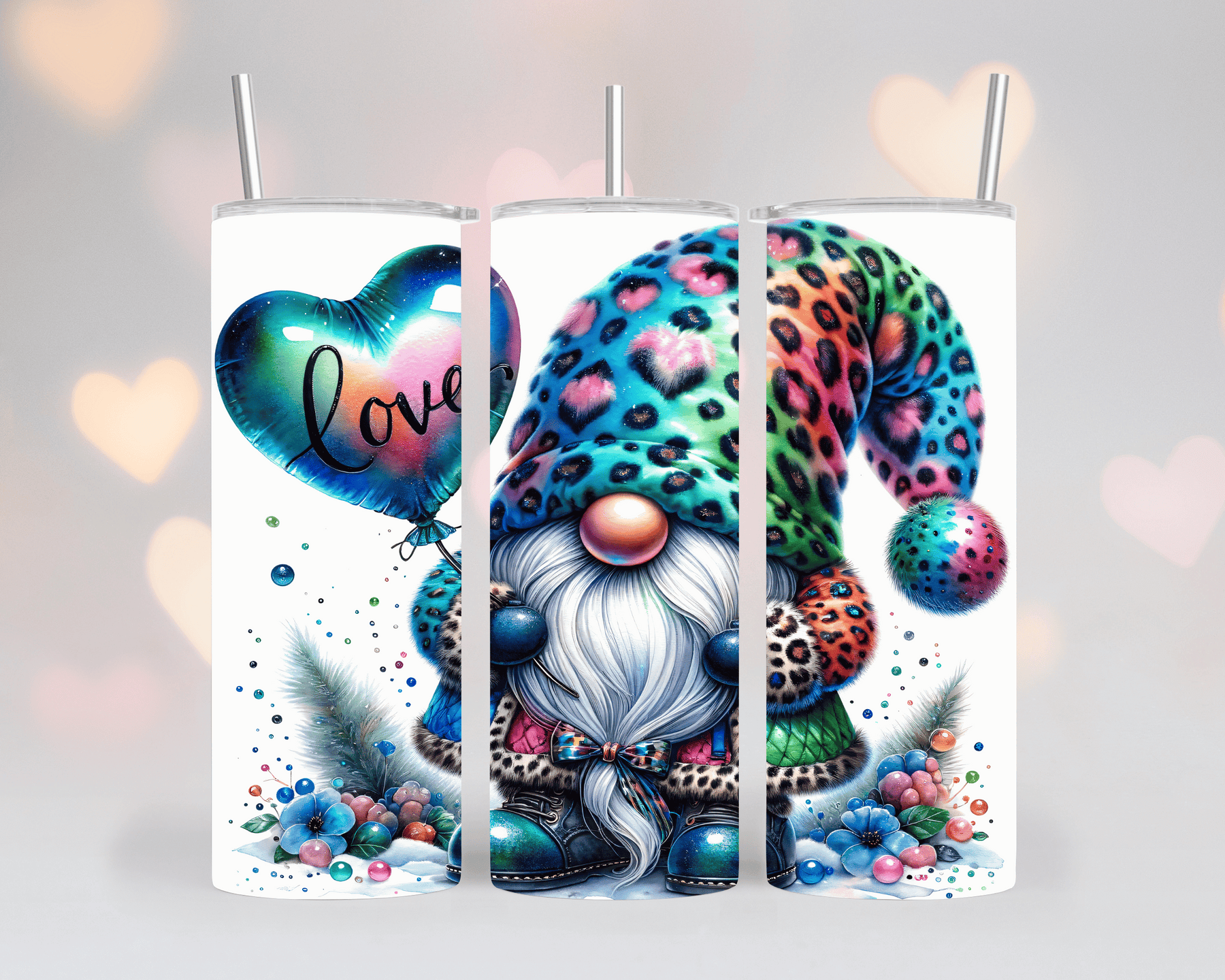 Thermobecher/Tumbler/Tasse Valentine Gnome Türkis mit Luftballon