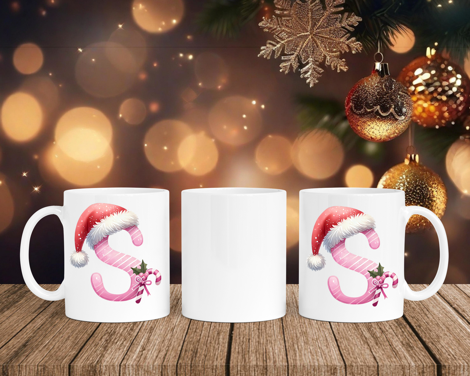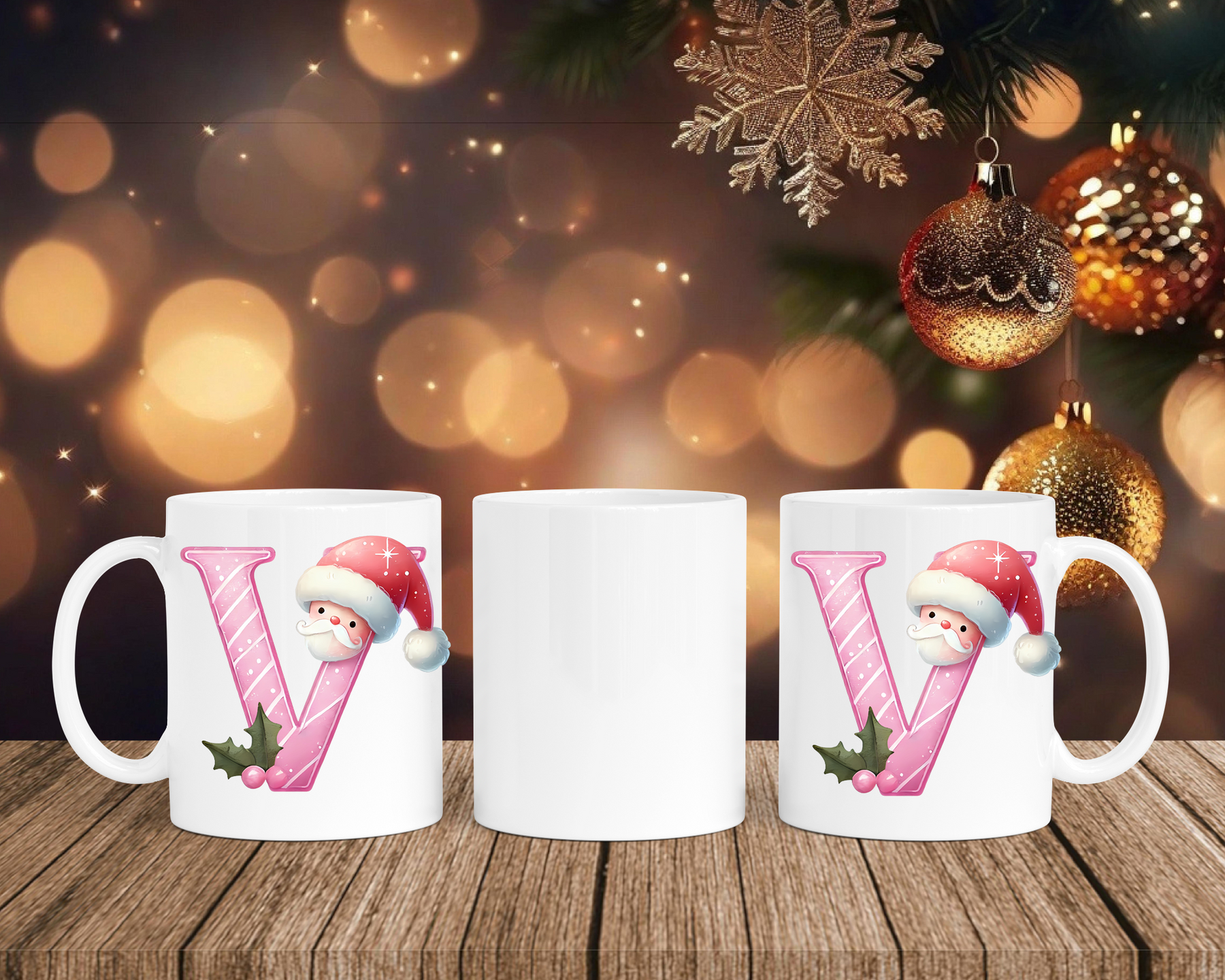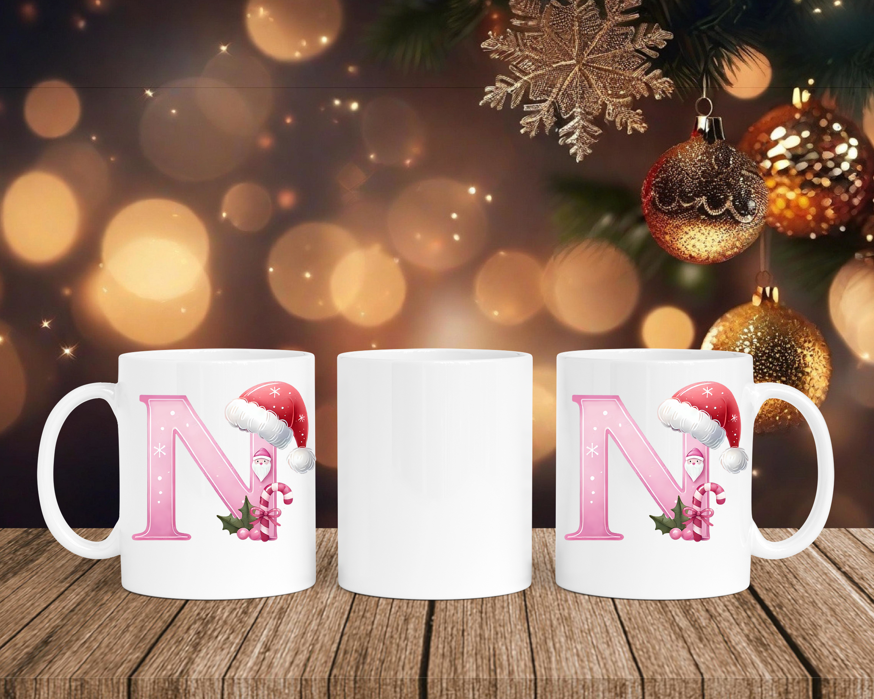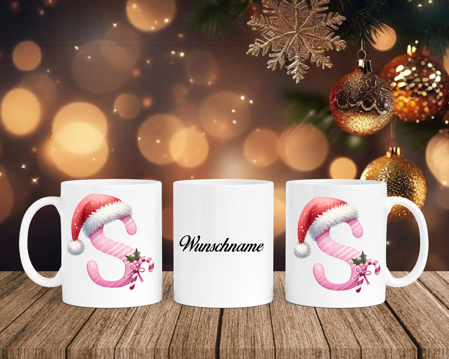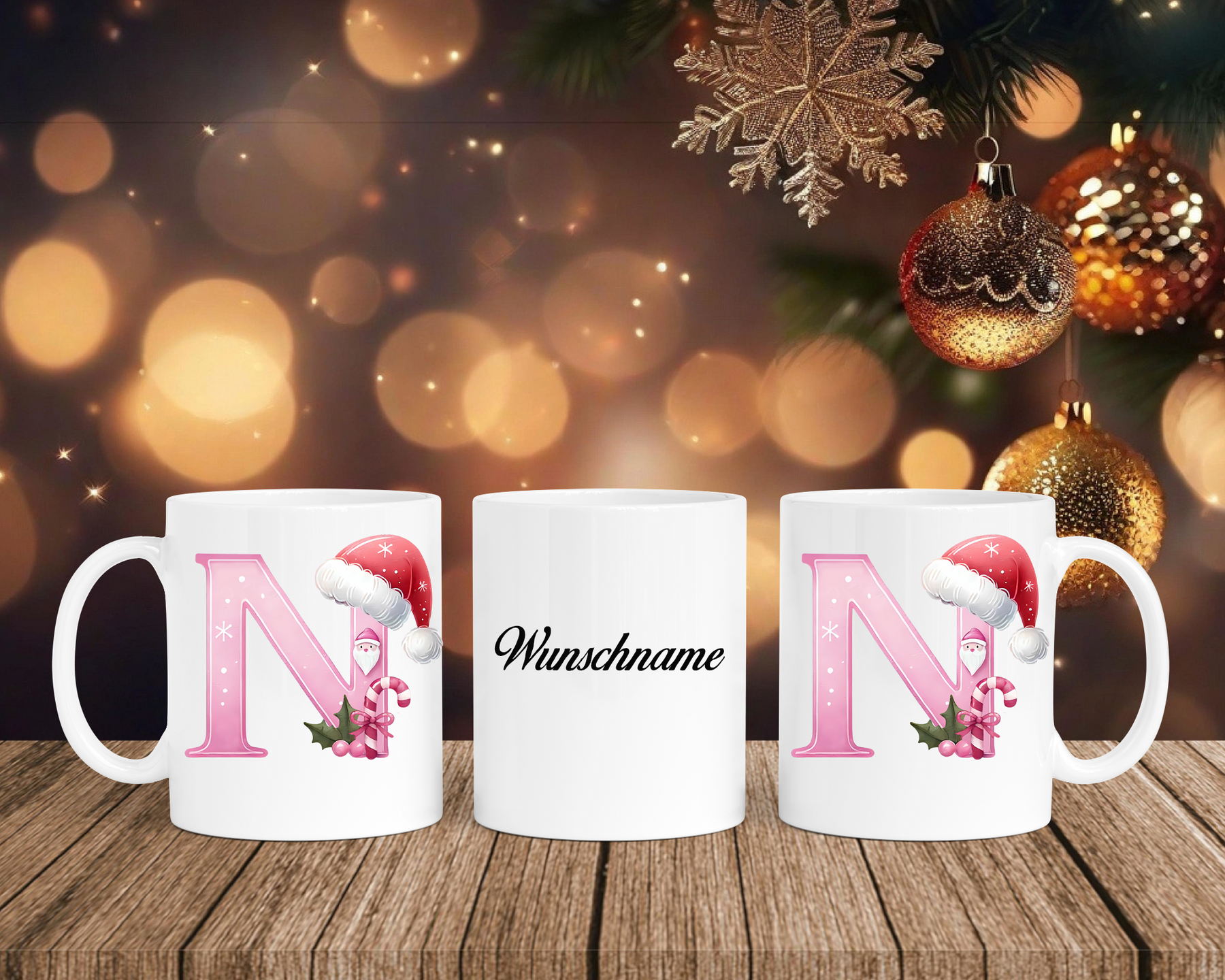 Personalisierte Keramik-Tasse in Weiß-mit Christmas Pink-Alphabet & Namen