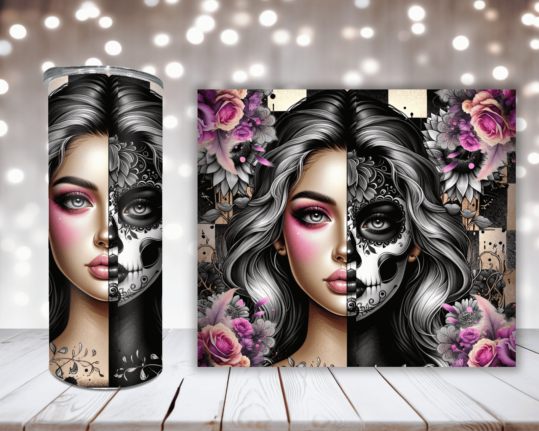 Thermobecher Woman mit 2 Gesichtern und Blumen