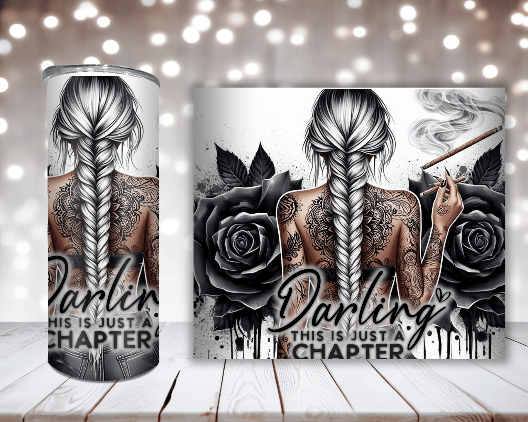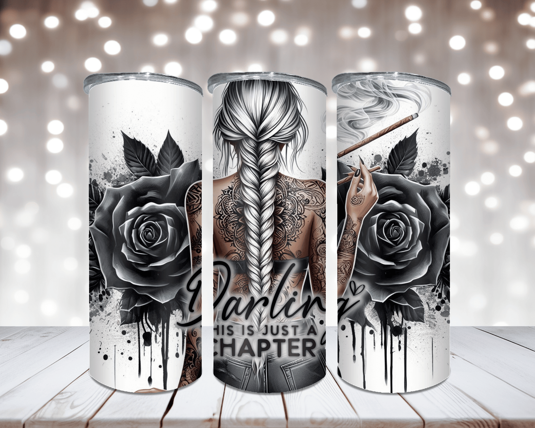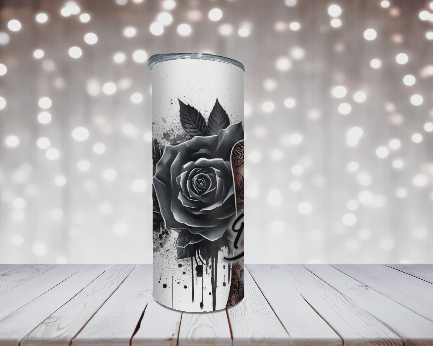 Thermobecher Woman mit grauen Haaren und schwarzen Rosen