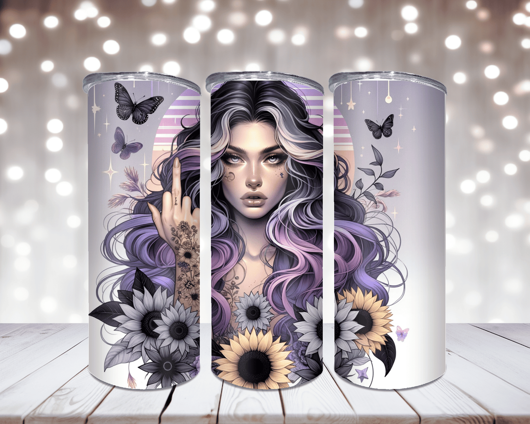 Der Thermobecher „Woman mit Sonnenblume Gelb“ bringt Farbe und Frische in Ihren Alltag.