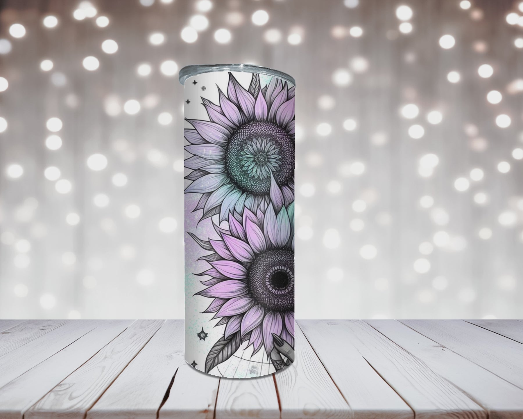 Der Thermobecher „Woman Skull und Sonnenblume“ kombiniert ein auffälliges Skull Design mit der Schönheit der Sonnenblume.