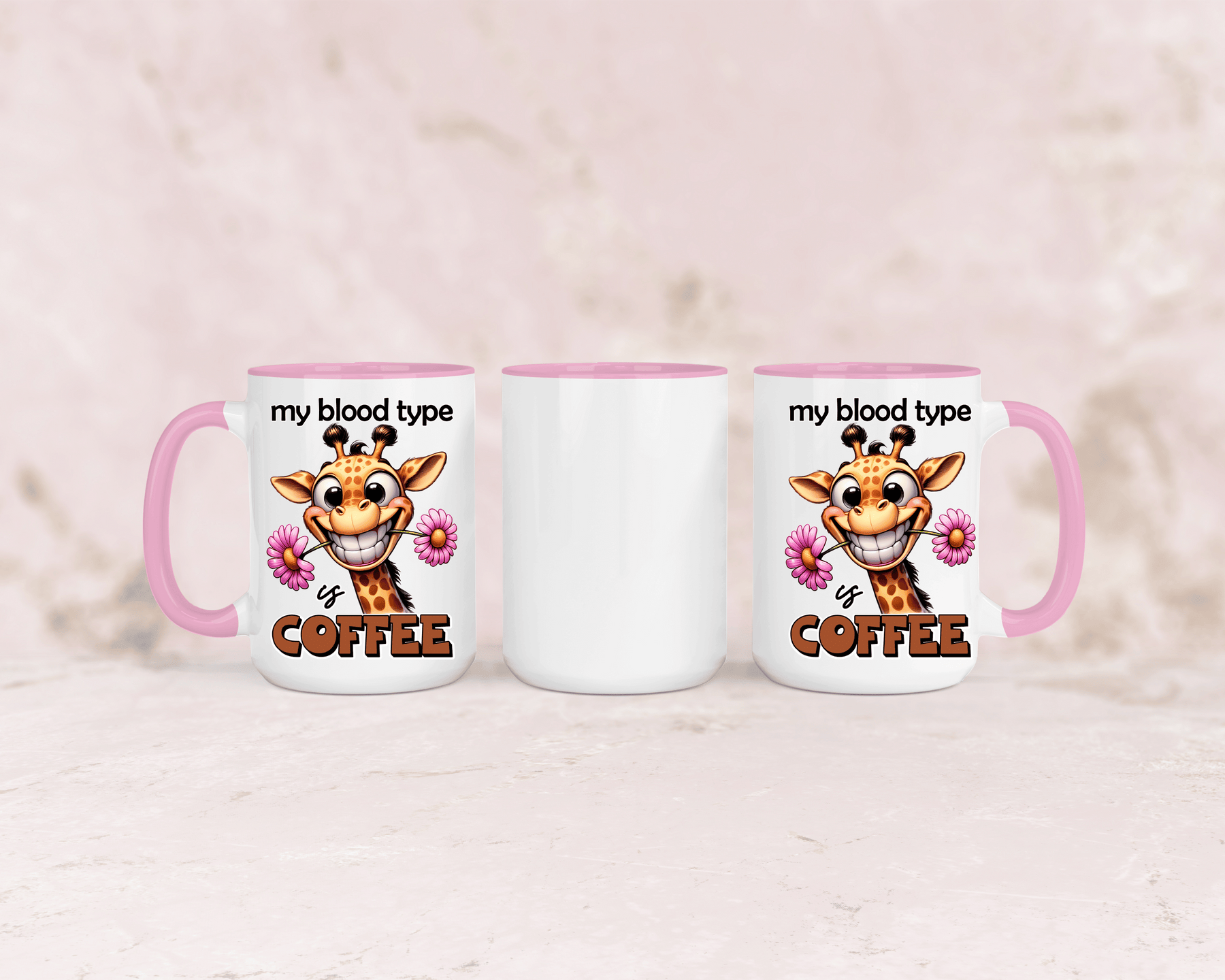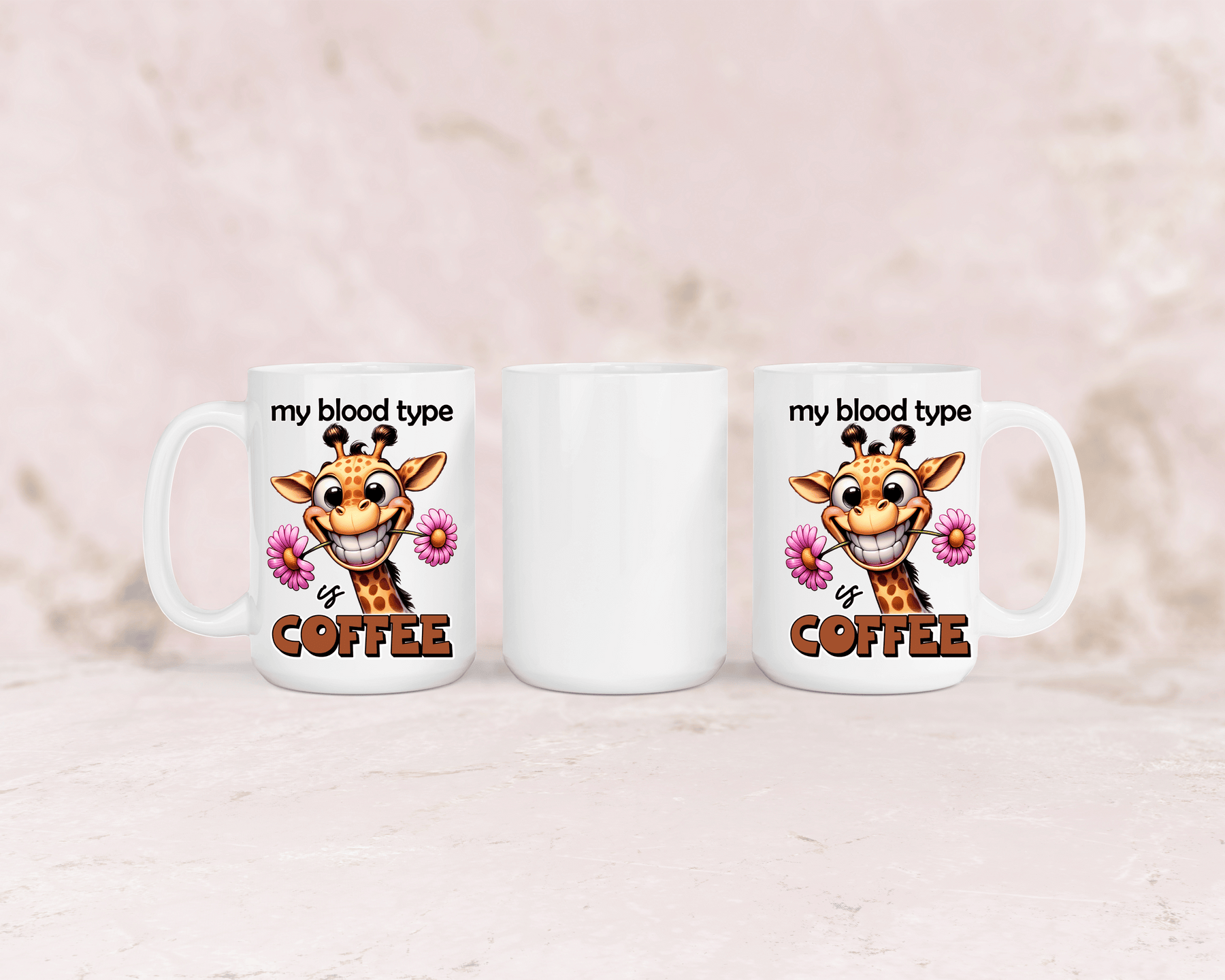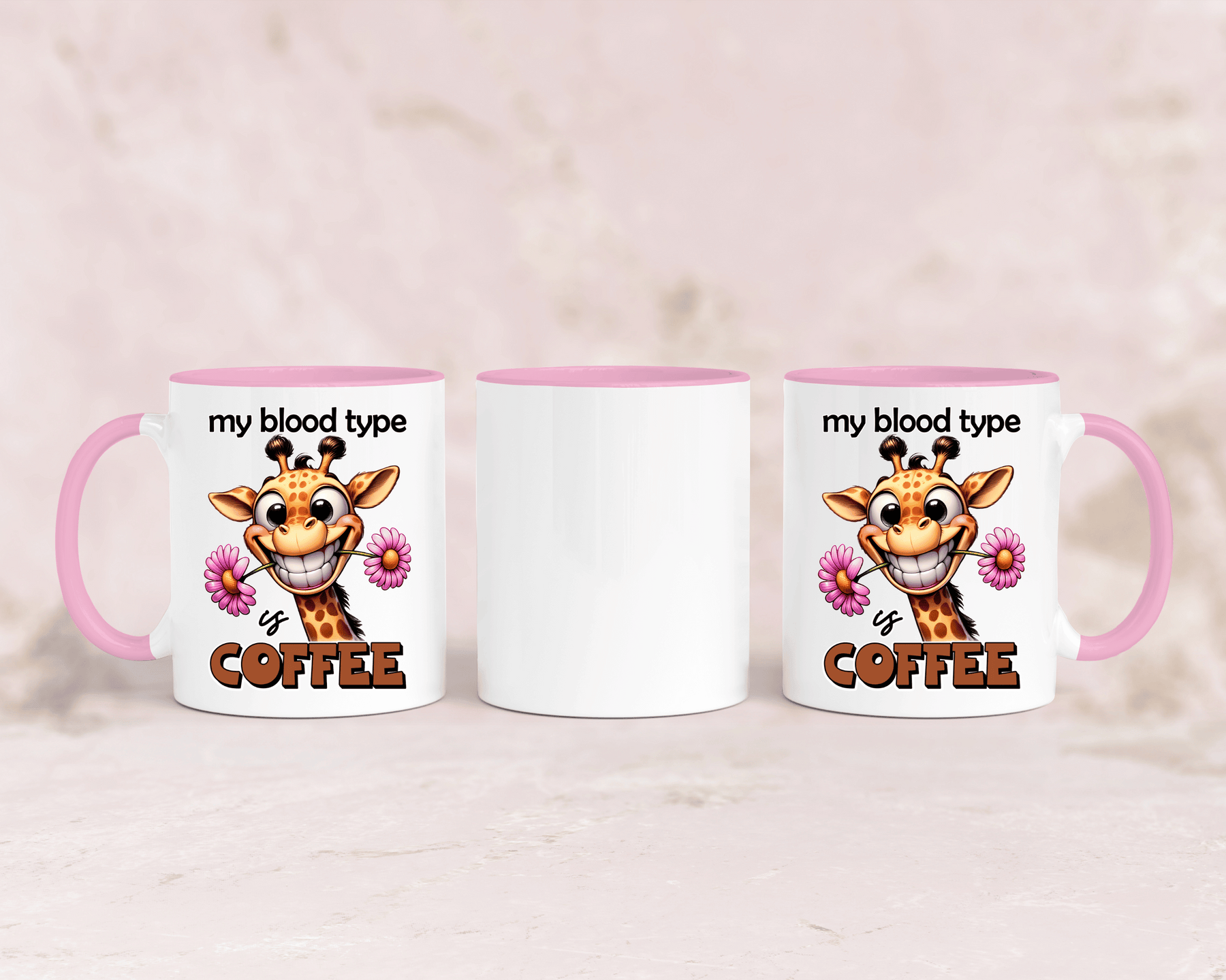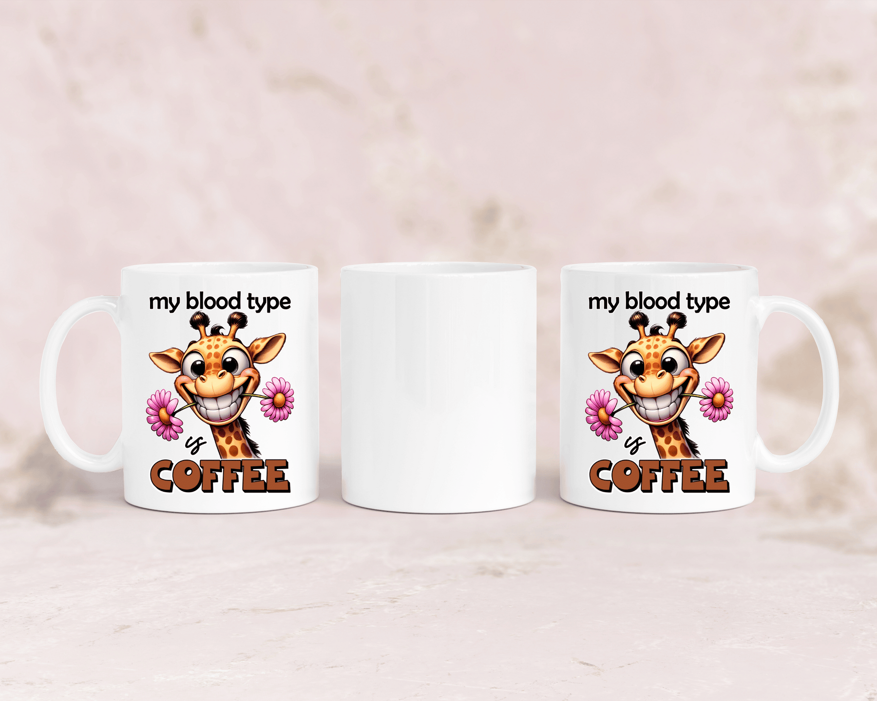Tasse mit niedlicher Giraffe und dem Spruch My blood type is Coffee
