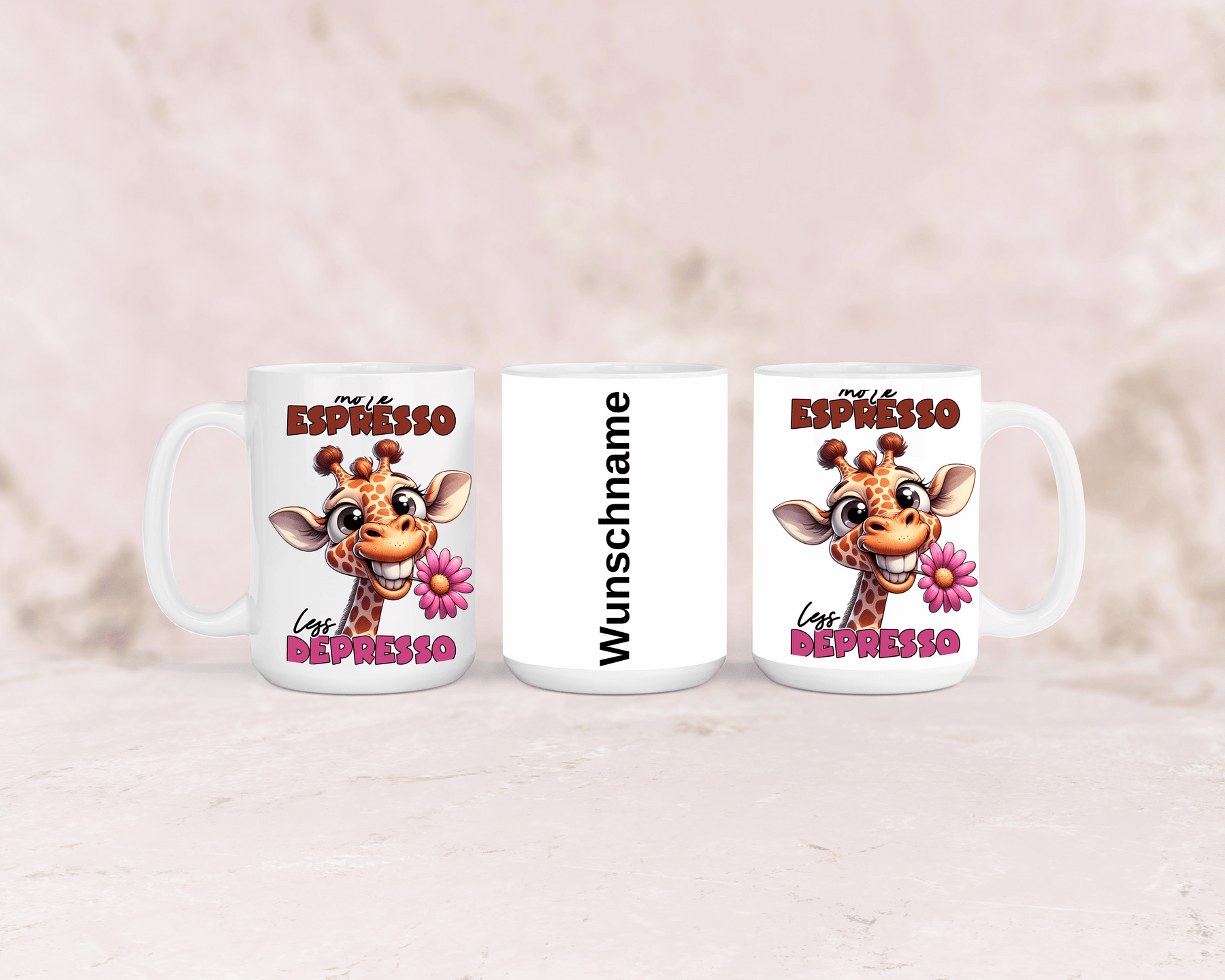 Tasse mit niedlicher Giraffe und dem Spruch „More Espresso“ – personalisierbar