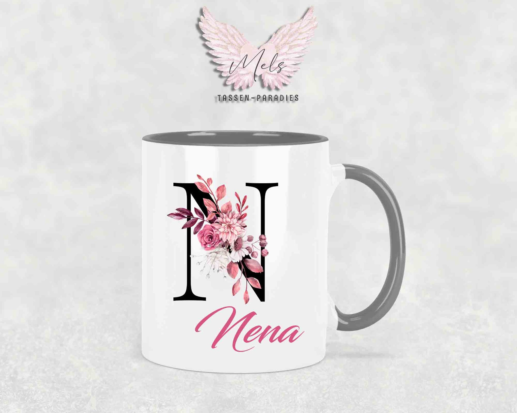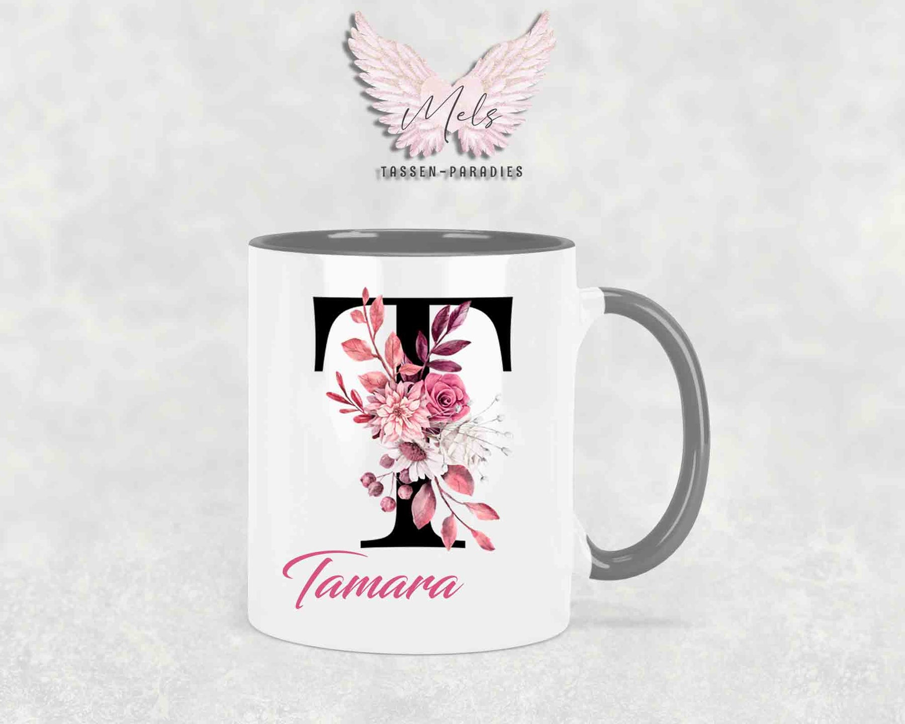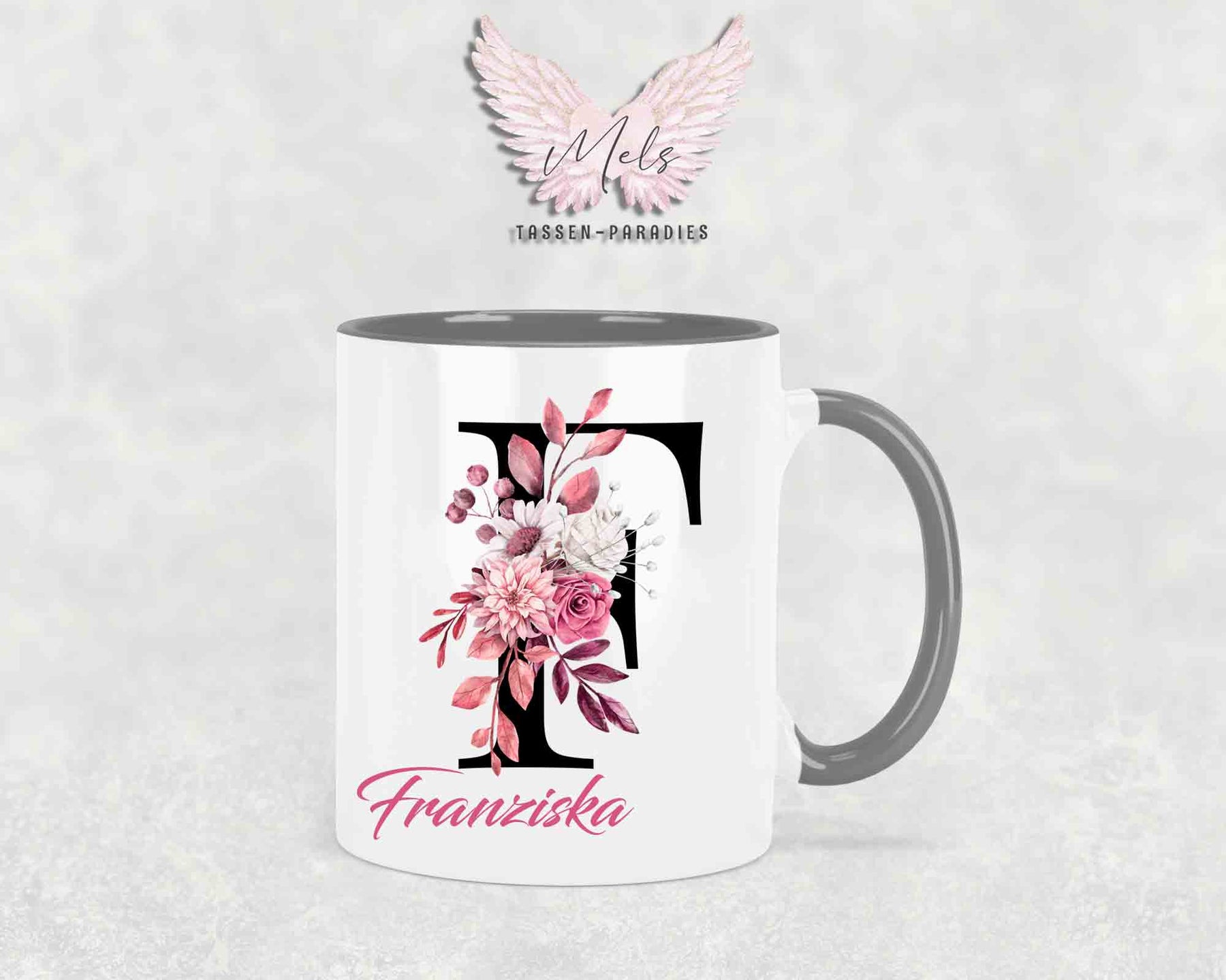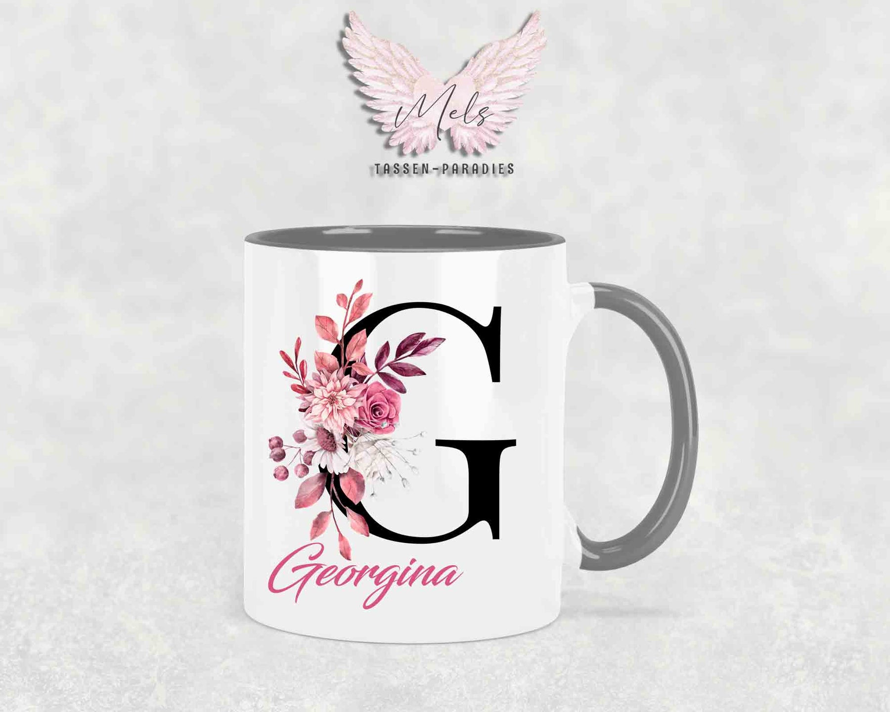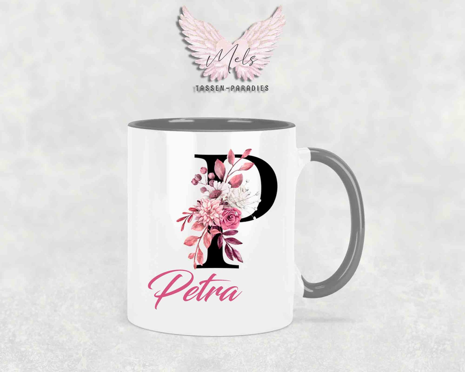 Namen mit Anfangsbuchstaben - Keramik-Tasse Grau