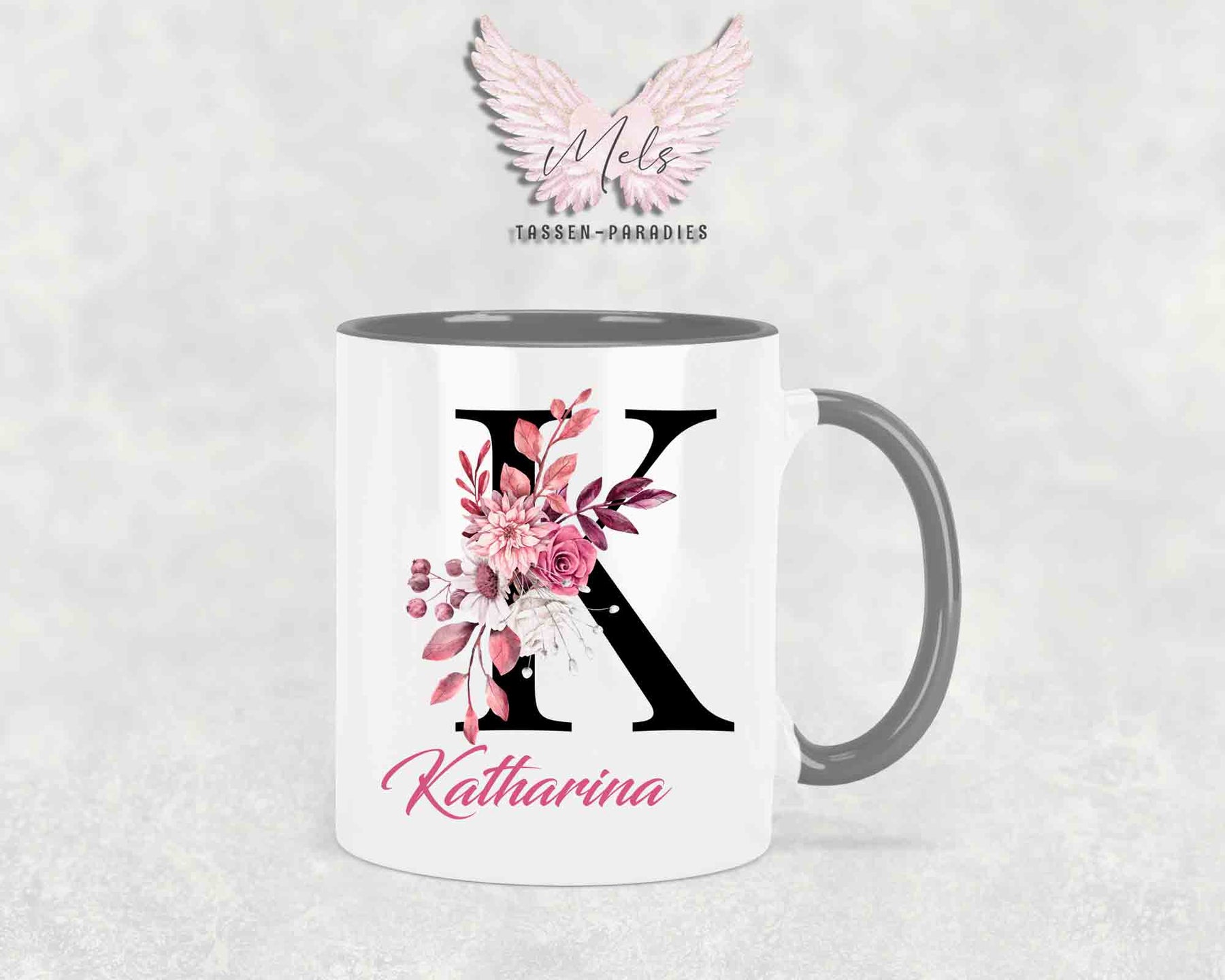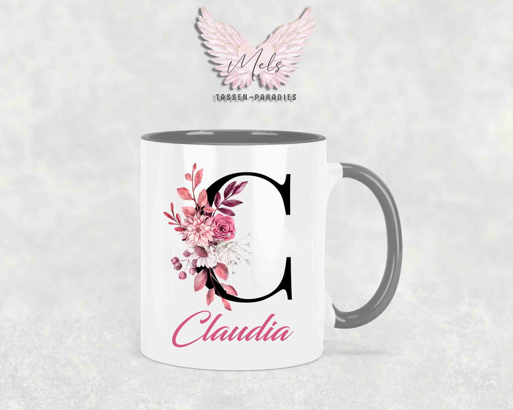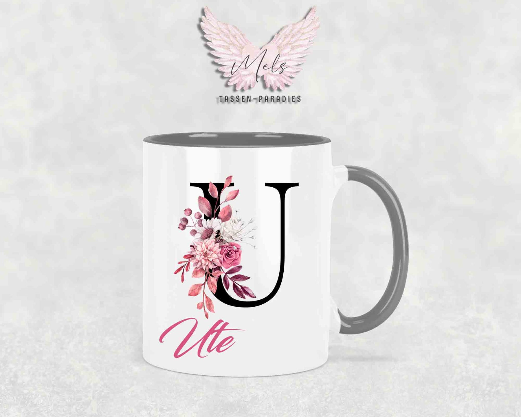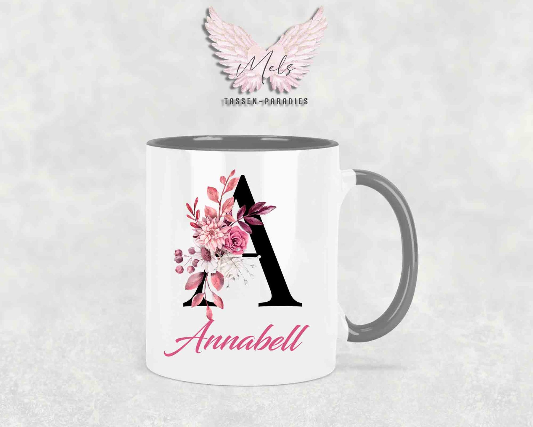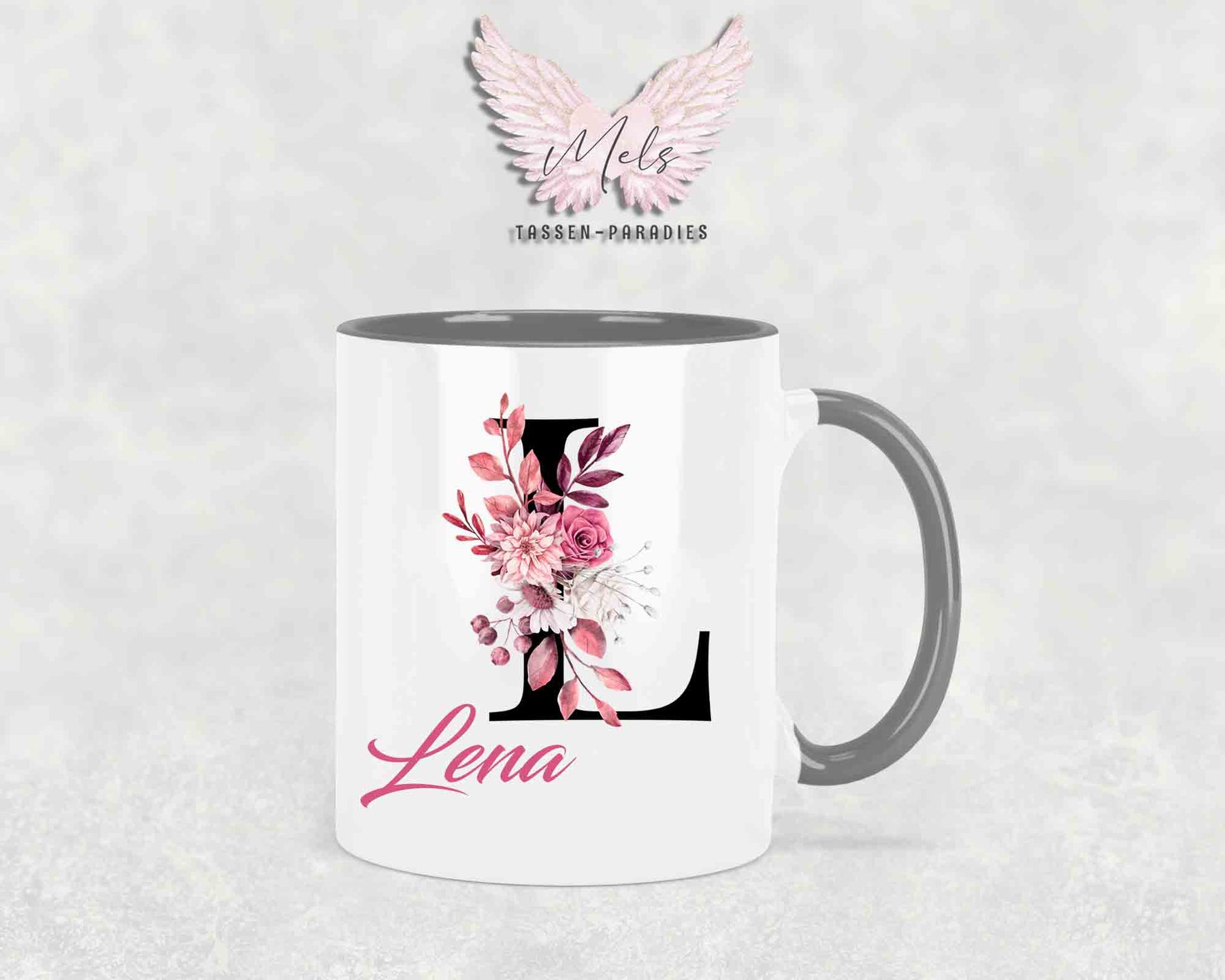 Namen mit Anfangsbuchstaben - Keramik-Tasse Grau