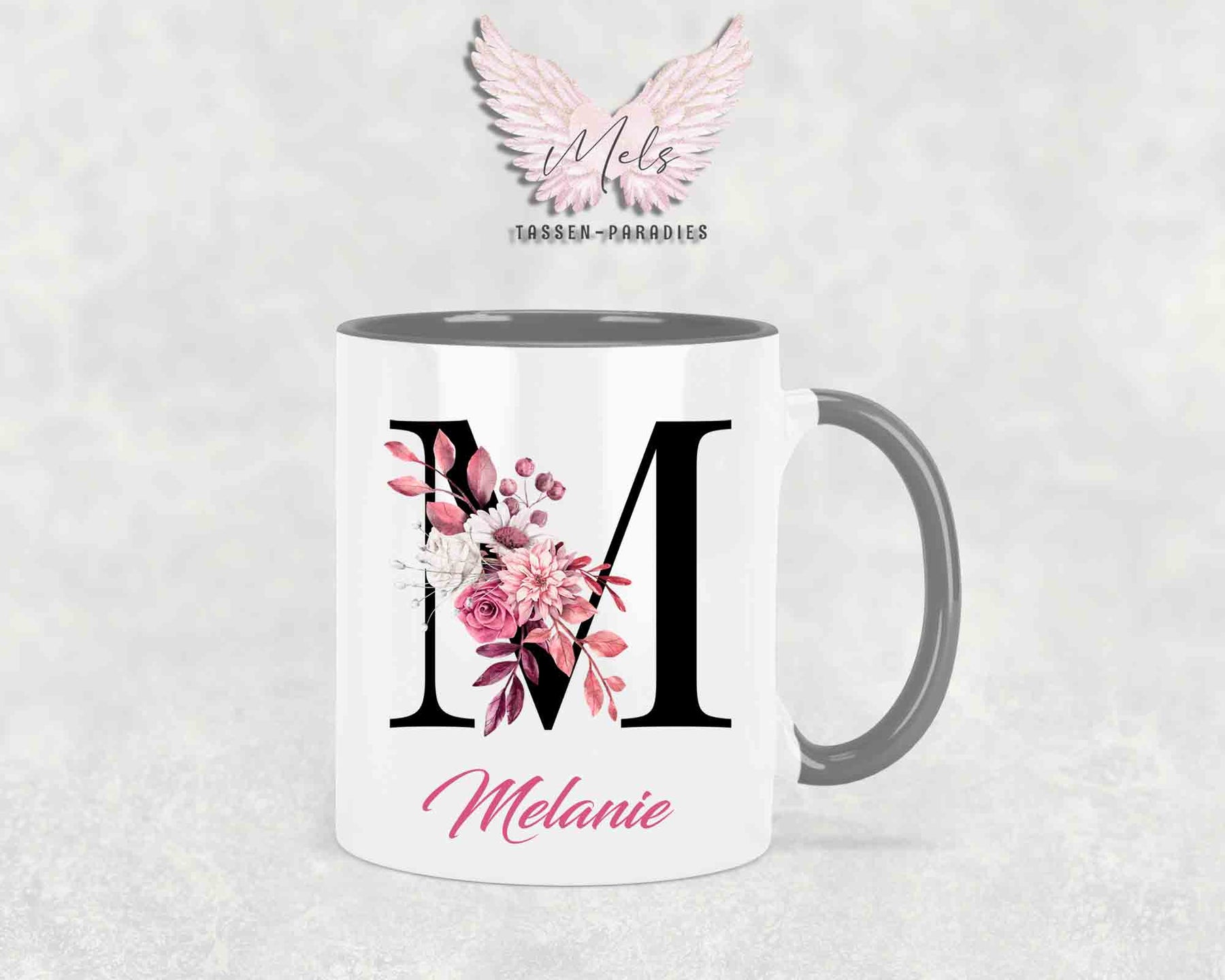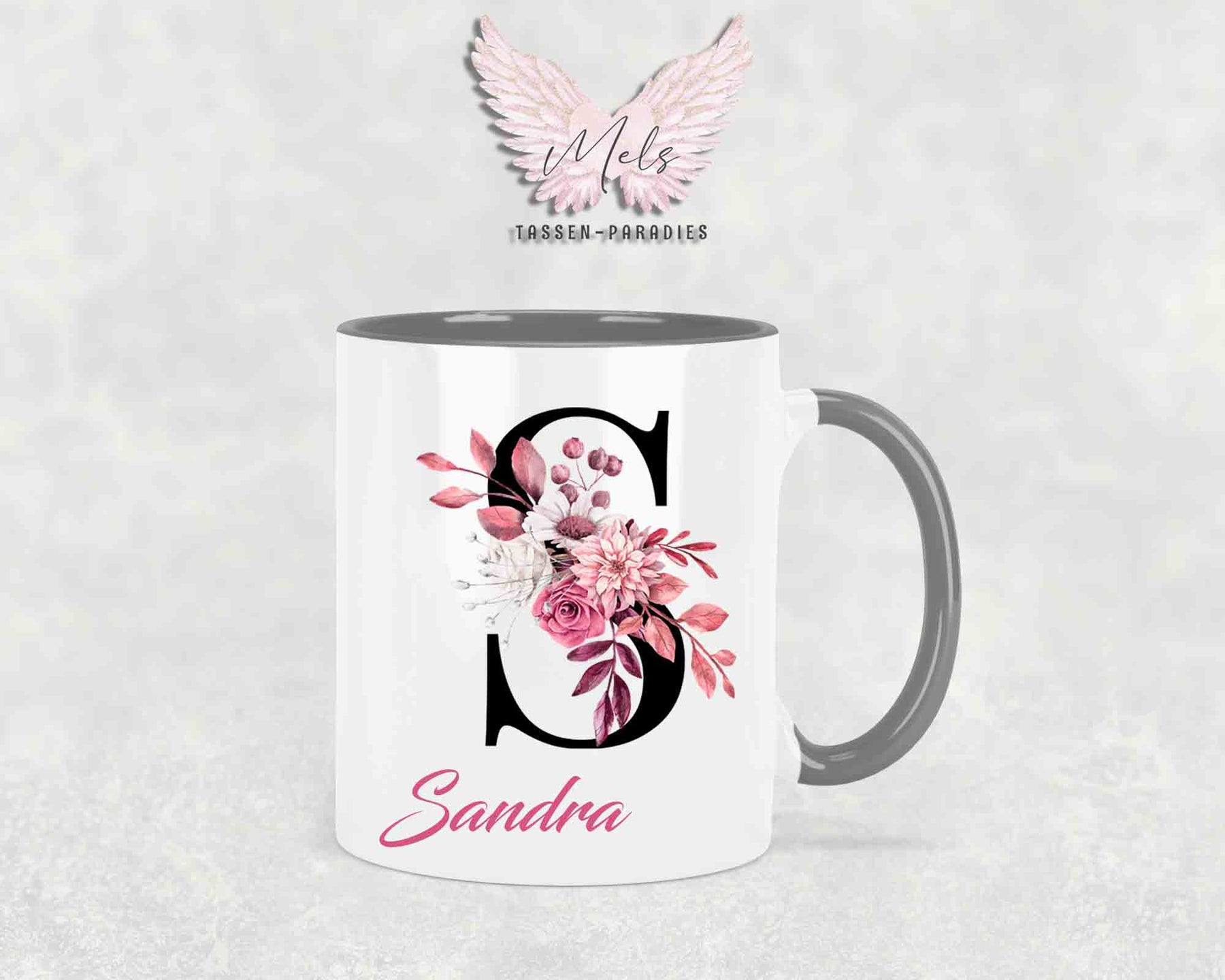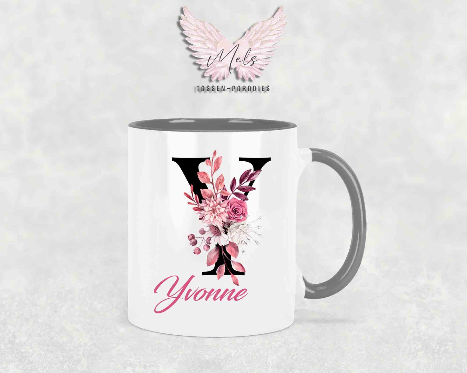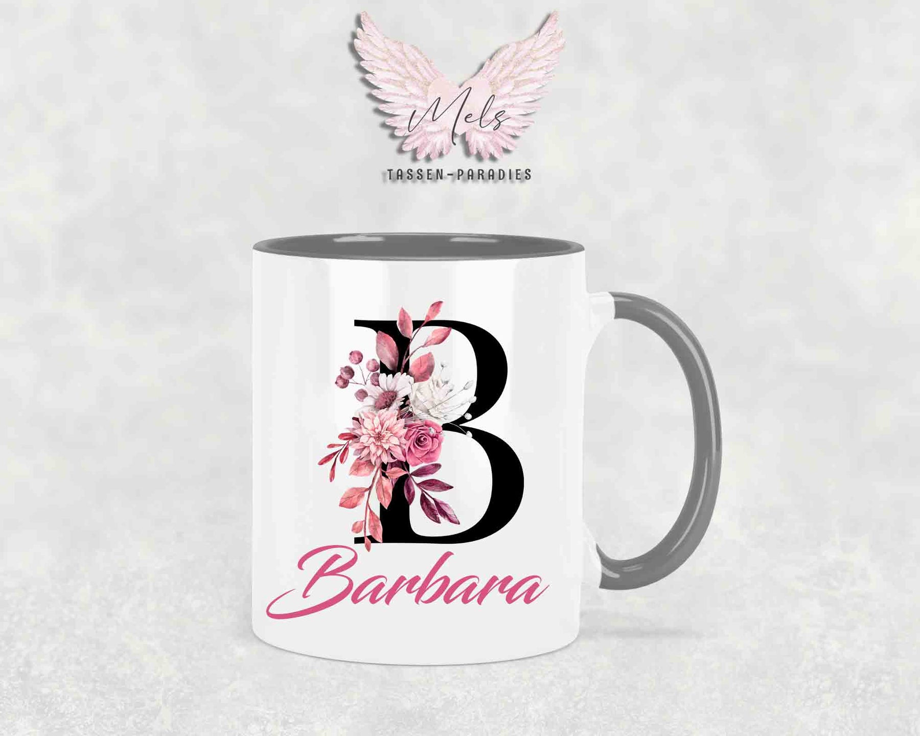 Namen mit Anfangsbuchstaben - Keramik-Tasse Grau