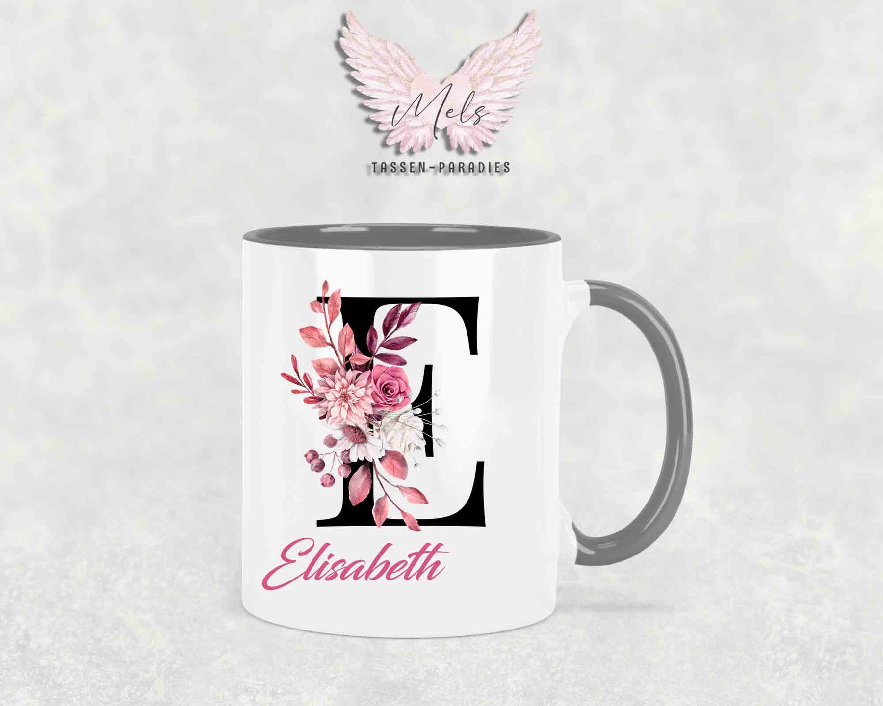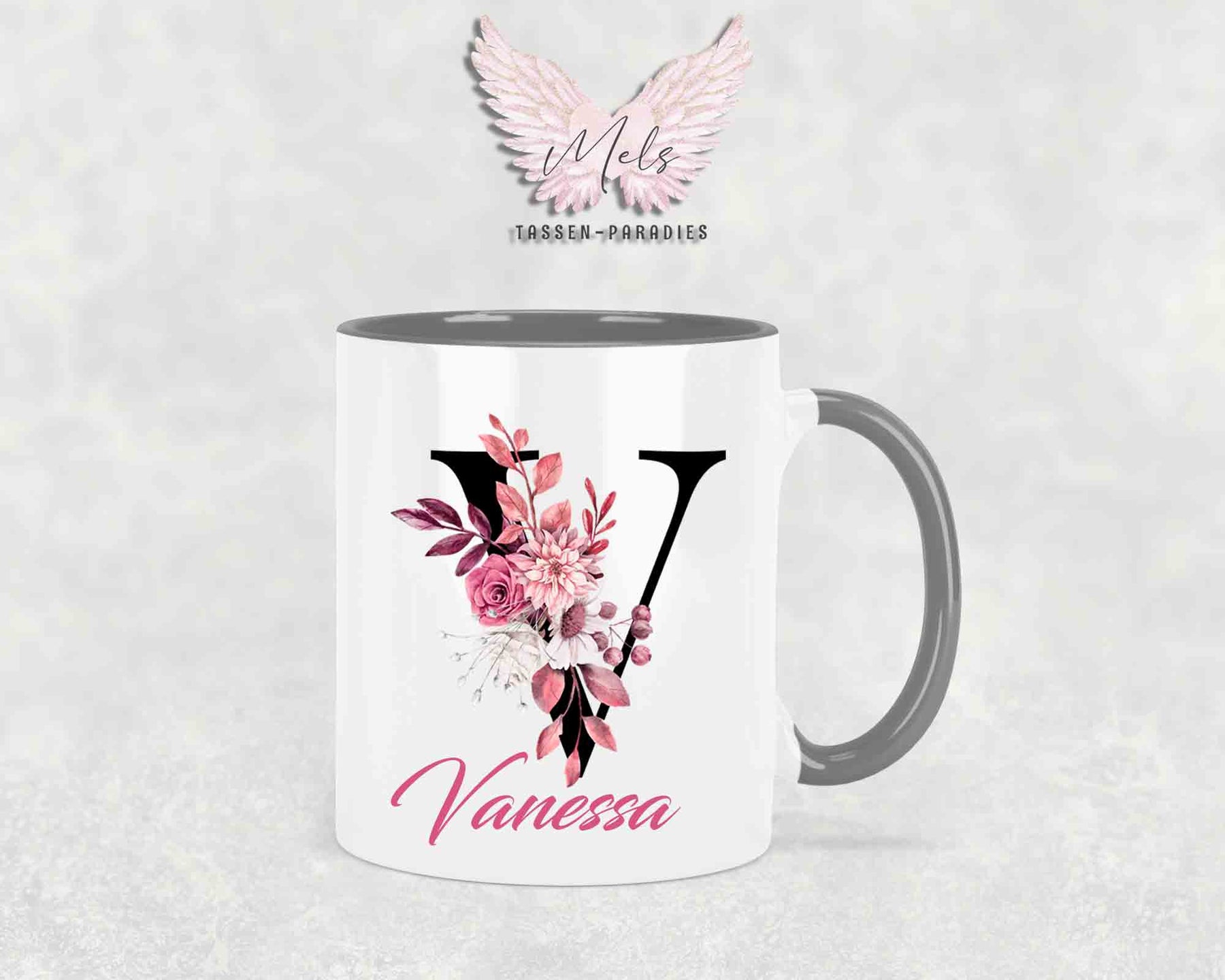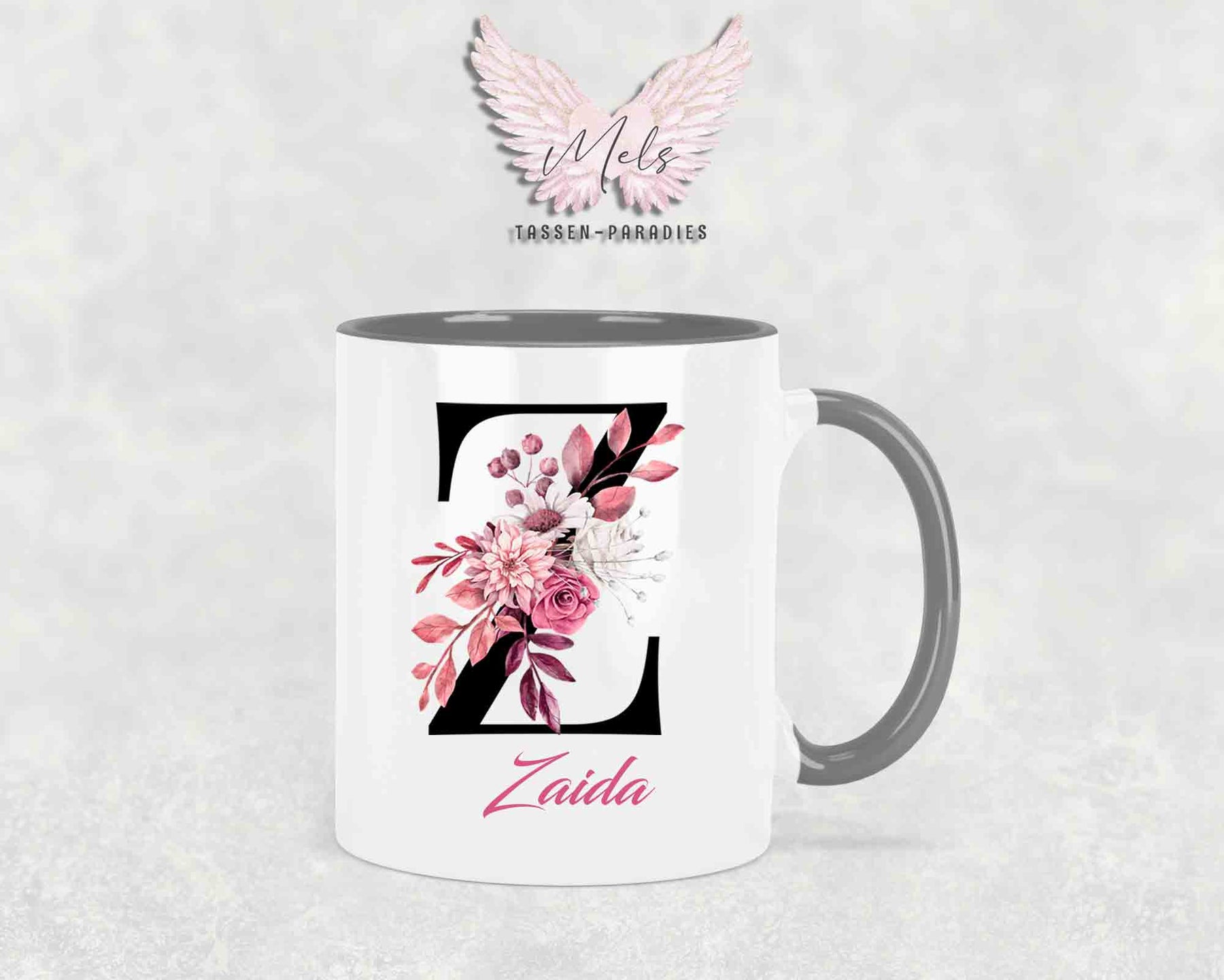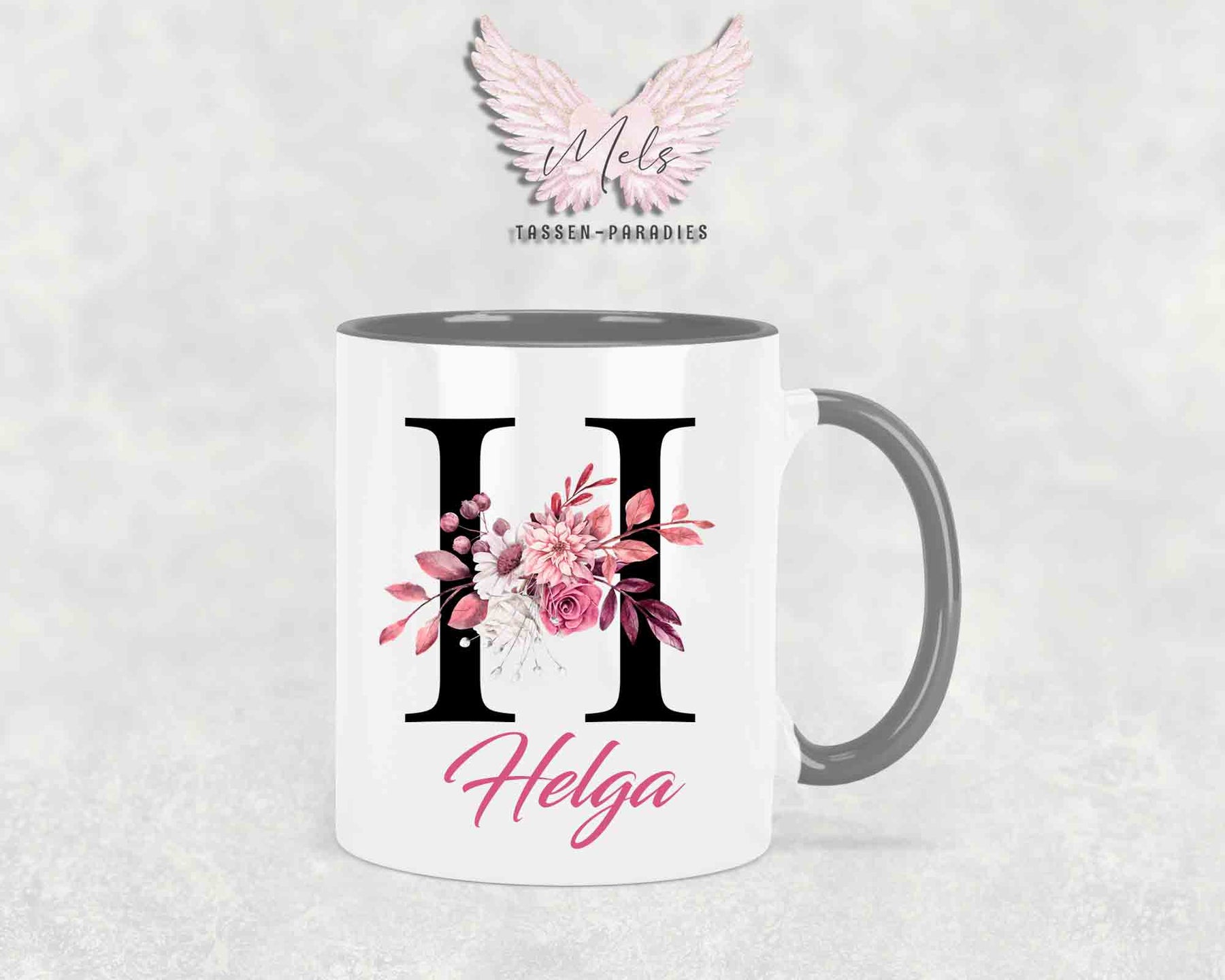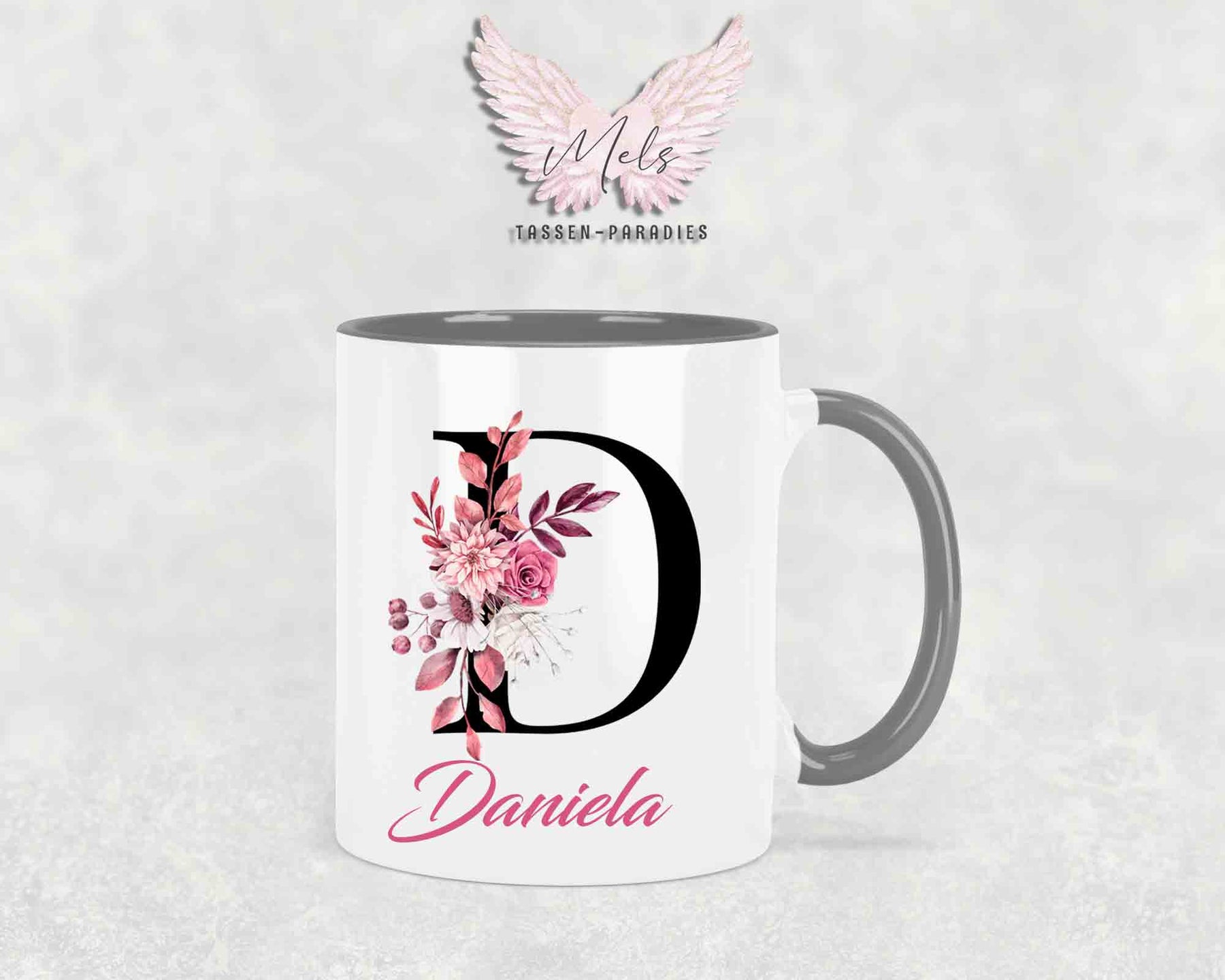 Namen mit Anfangsbuchstaben - Keramik-Tasse Grau