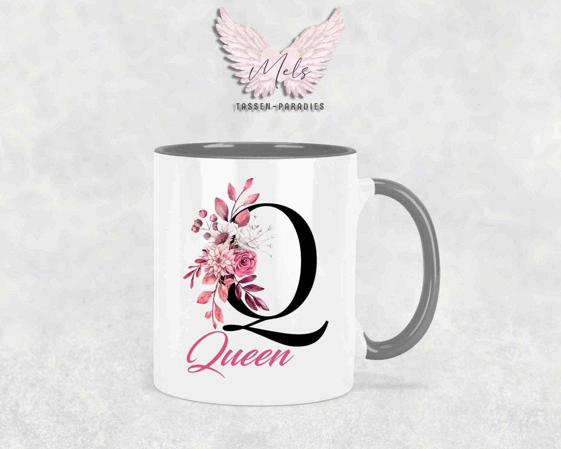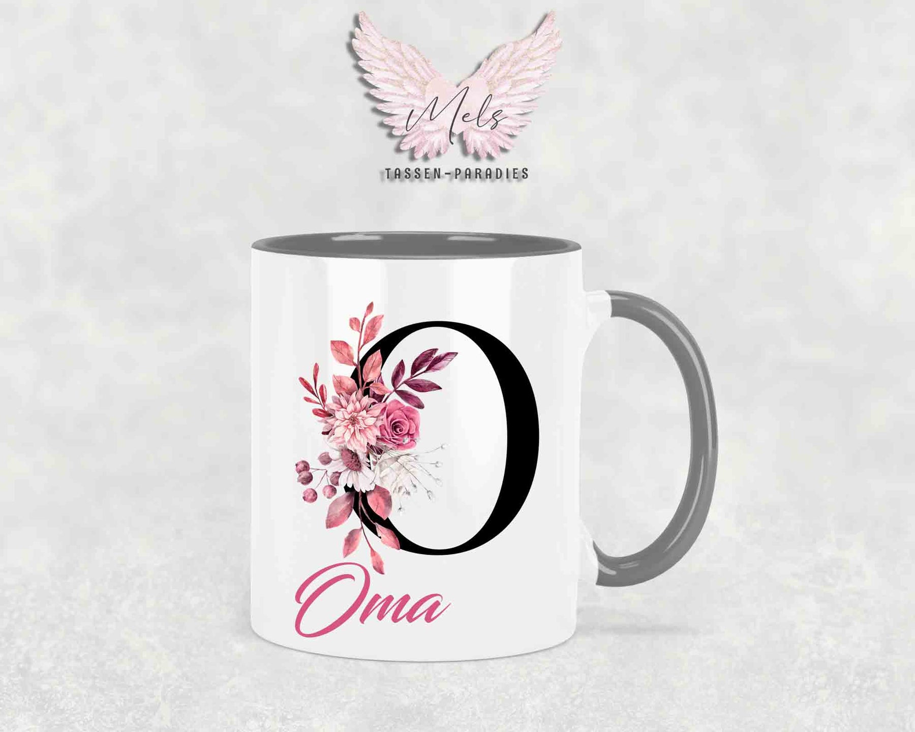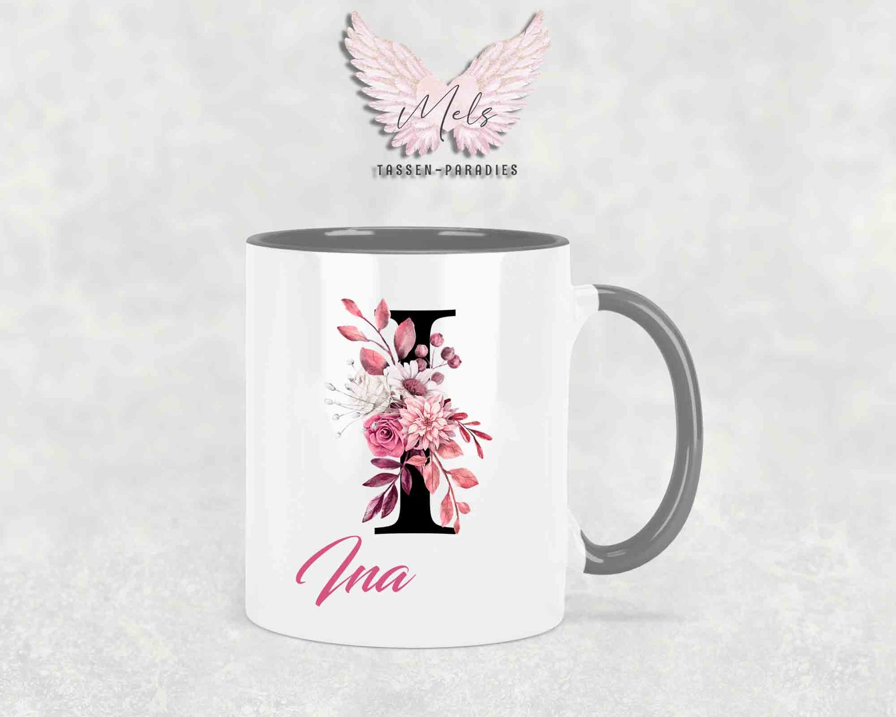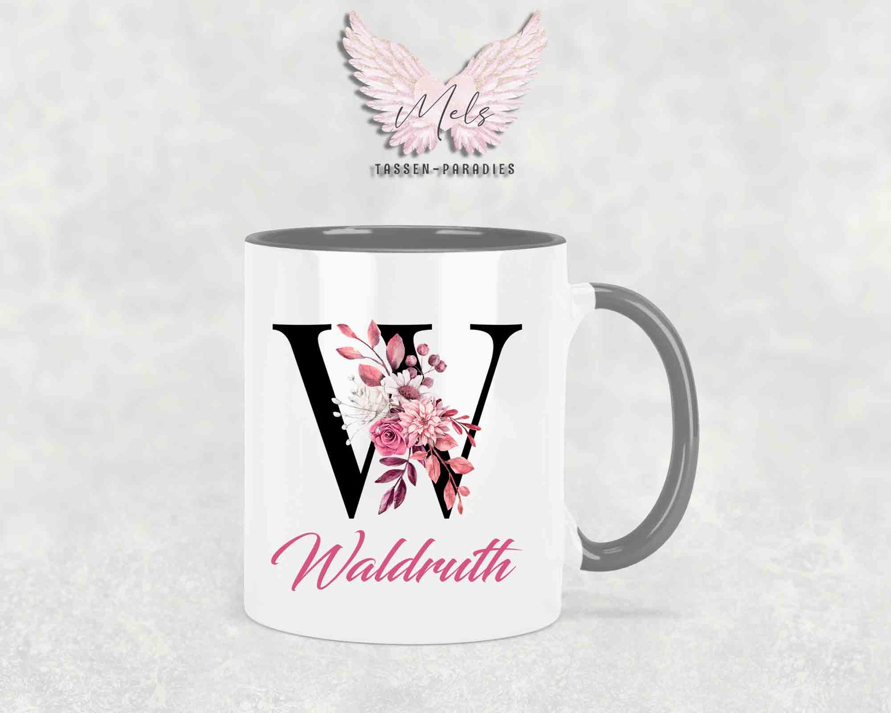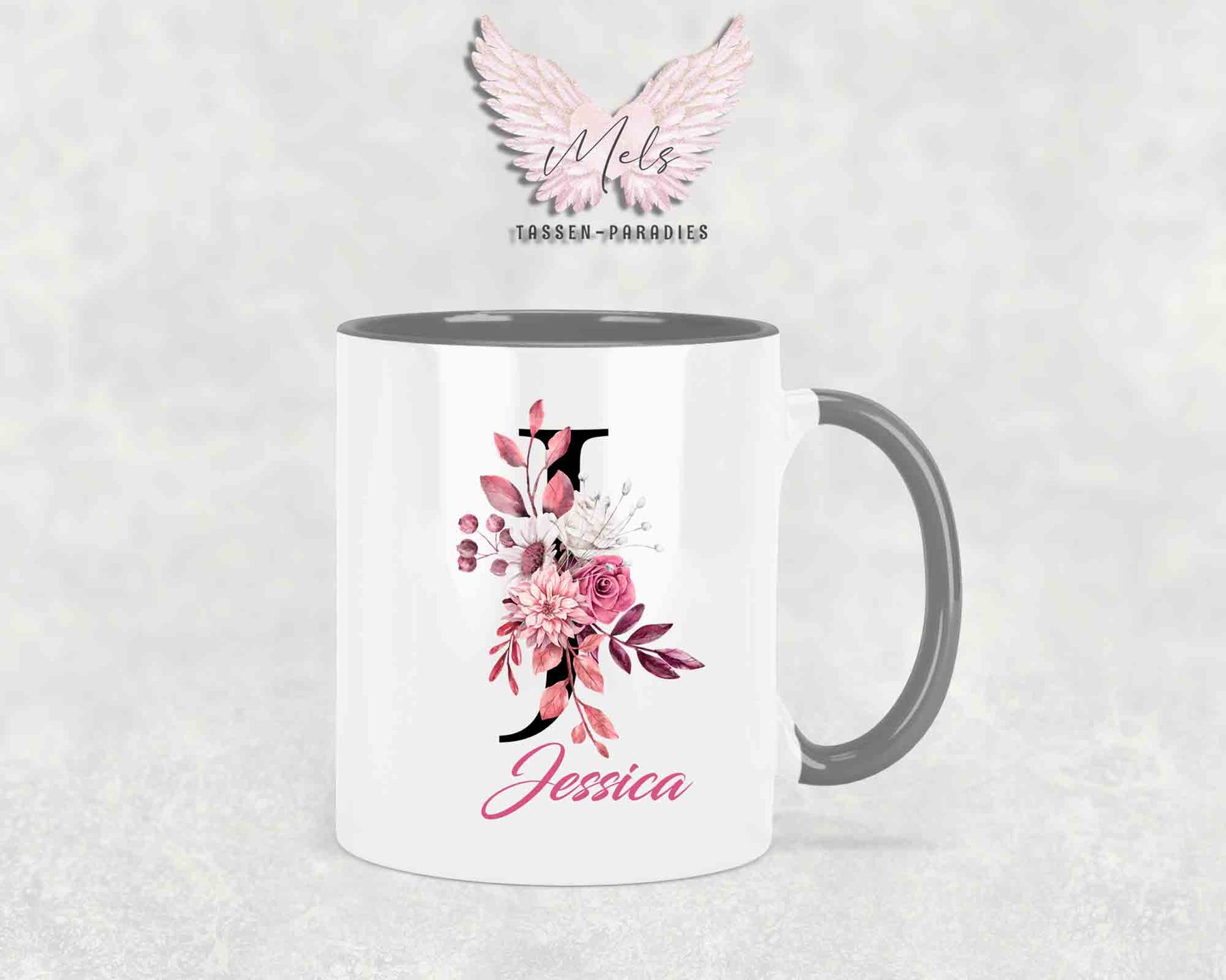 Namen mit Anfangsbuchstaben - Keramik-Tasse Grau