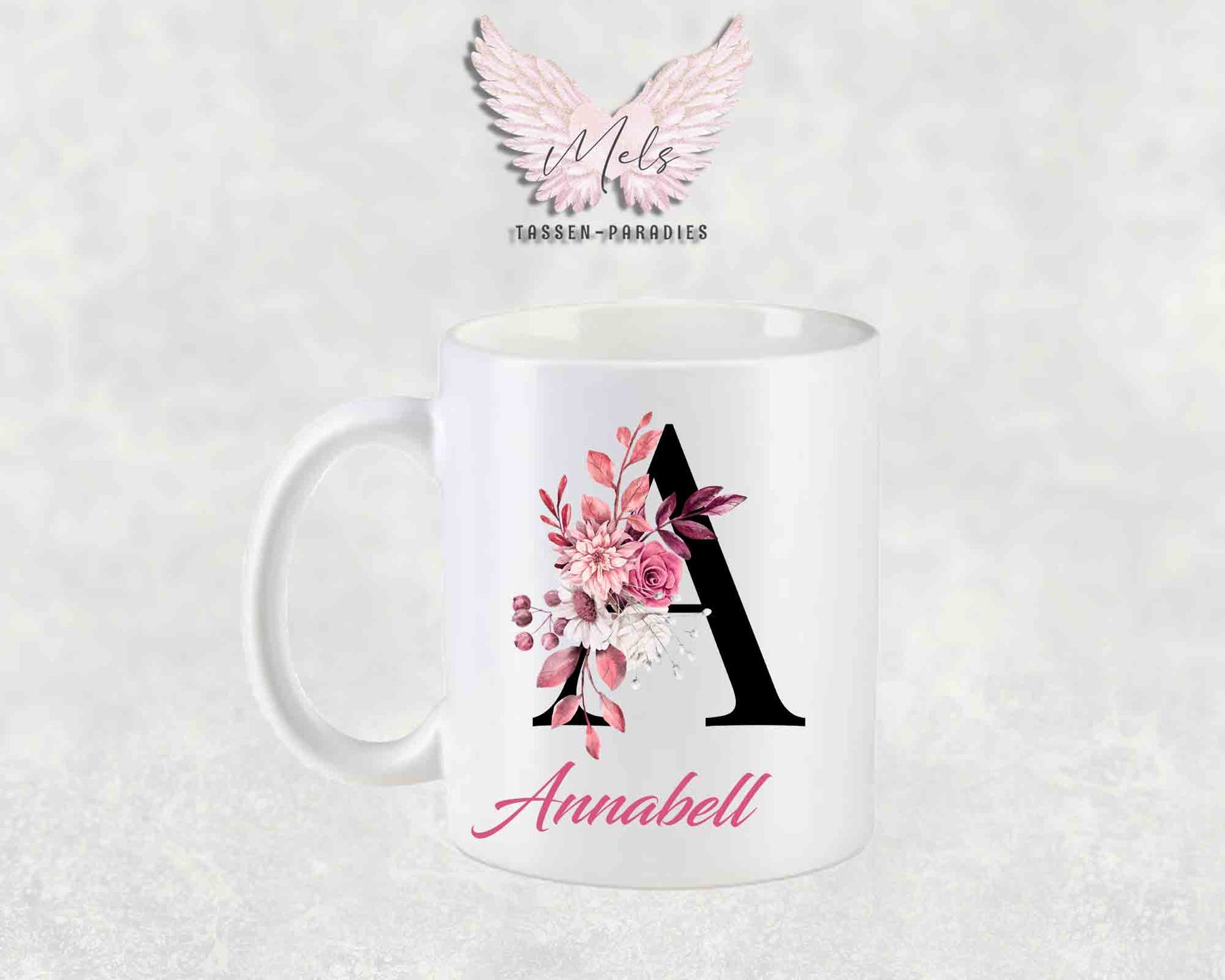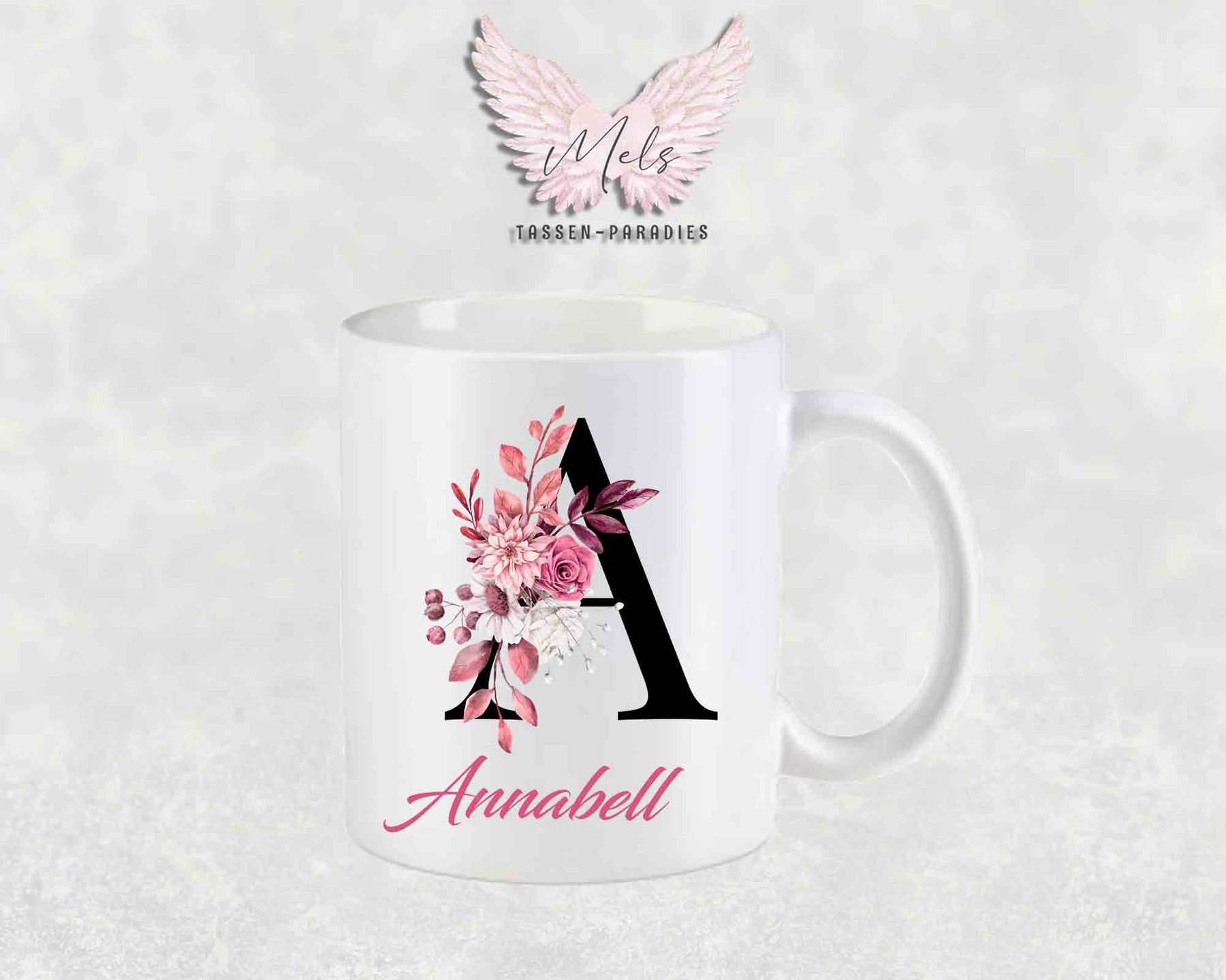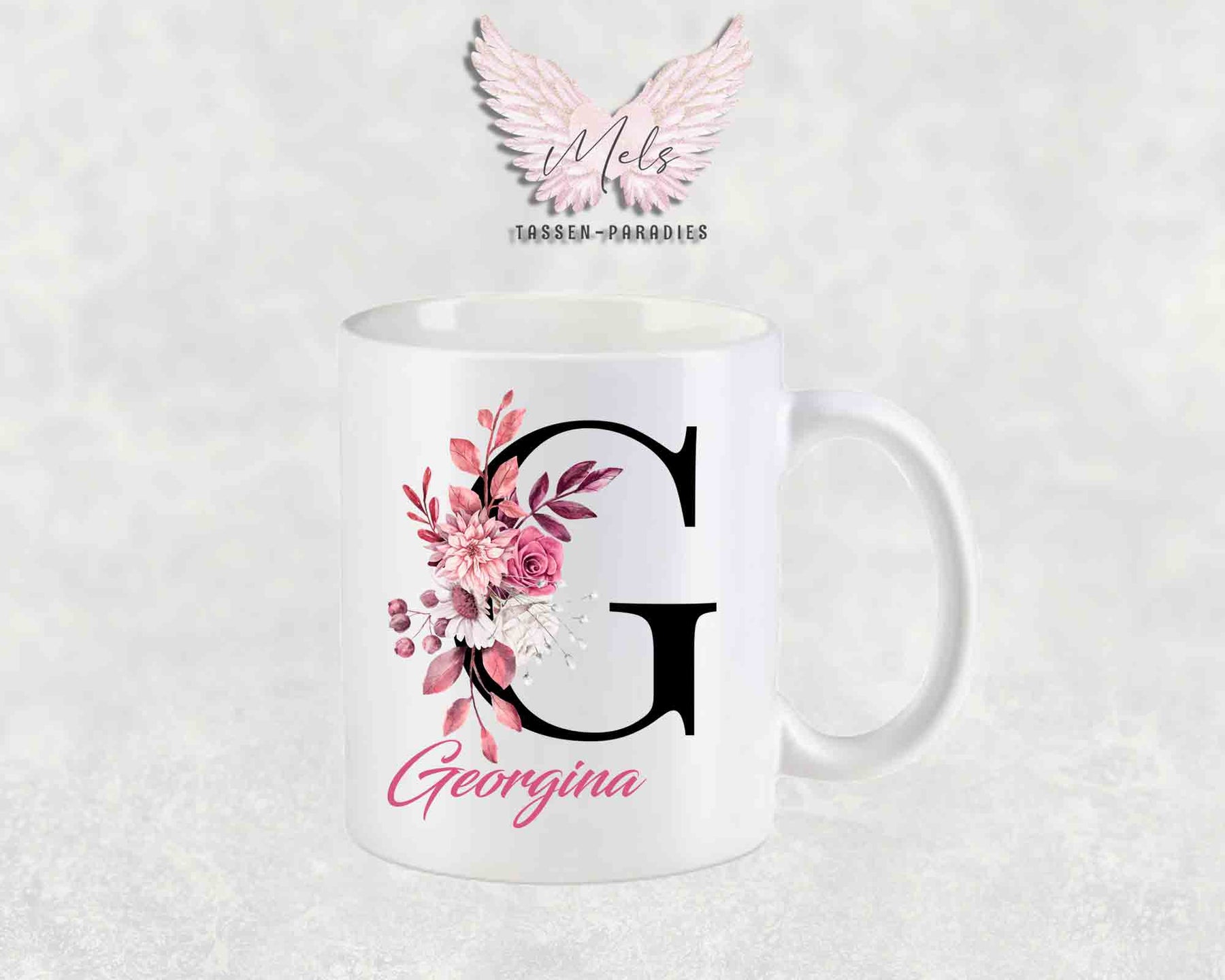 • Auf die Tasse wird Ihr Wunschname mit dem entsprechenden Anfangsbuchstaben gedruckt