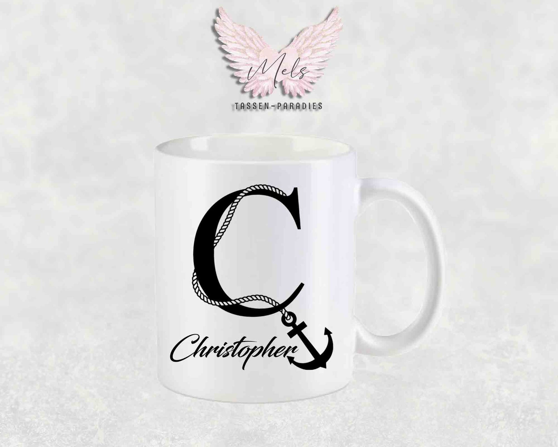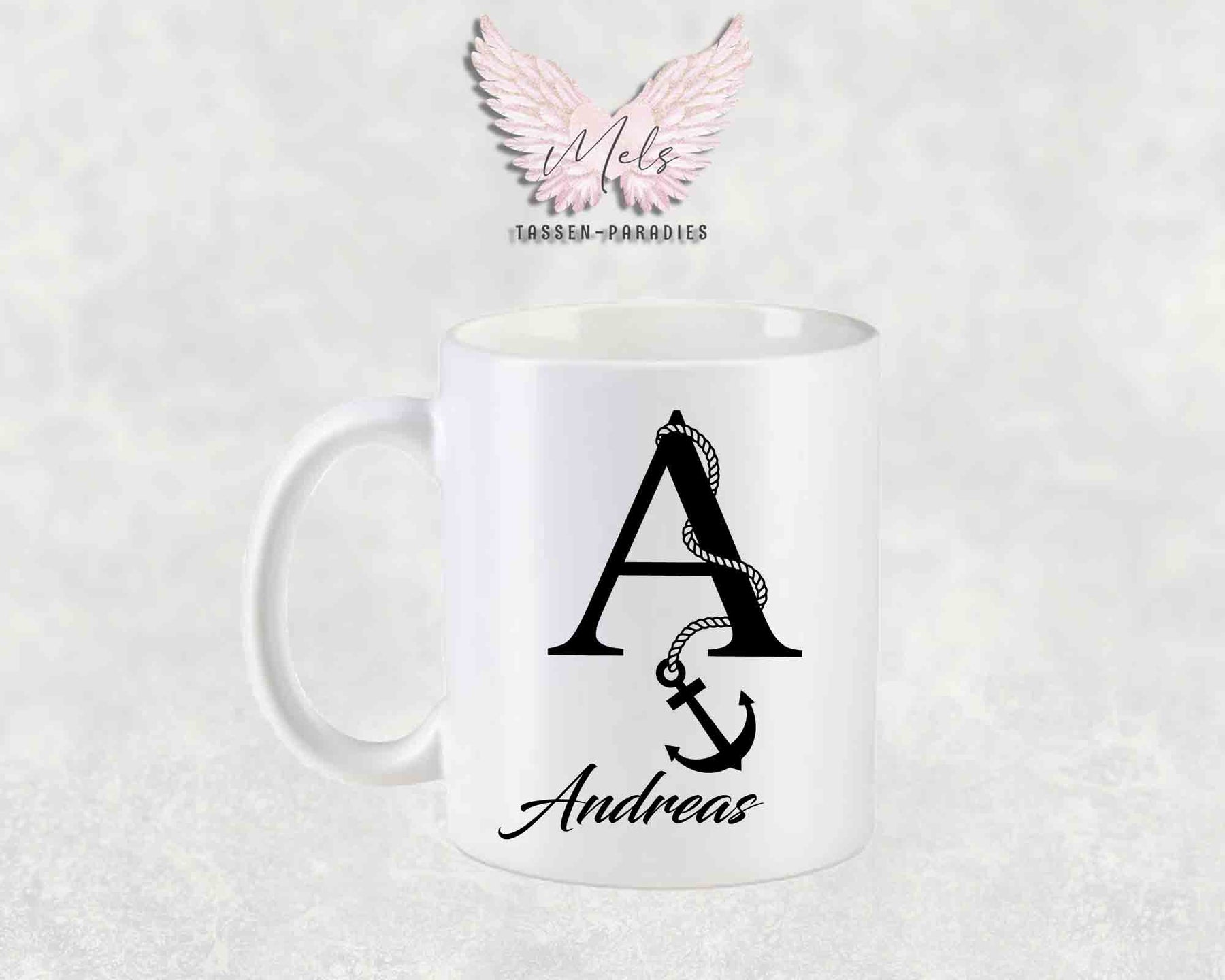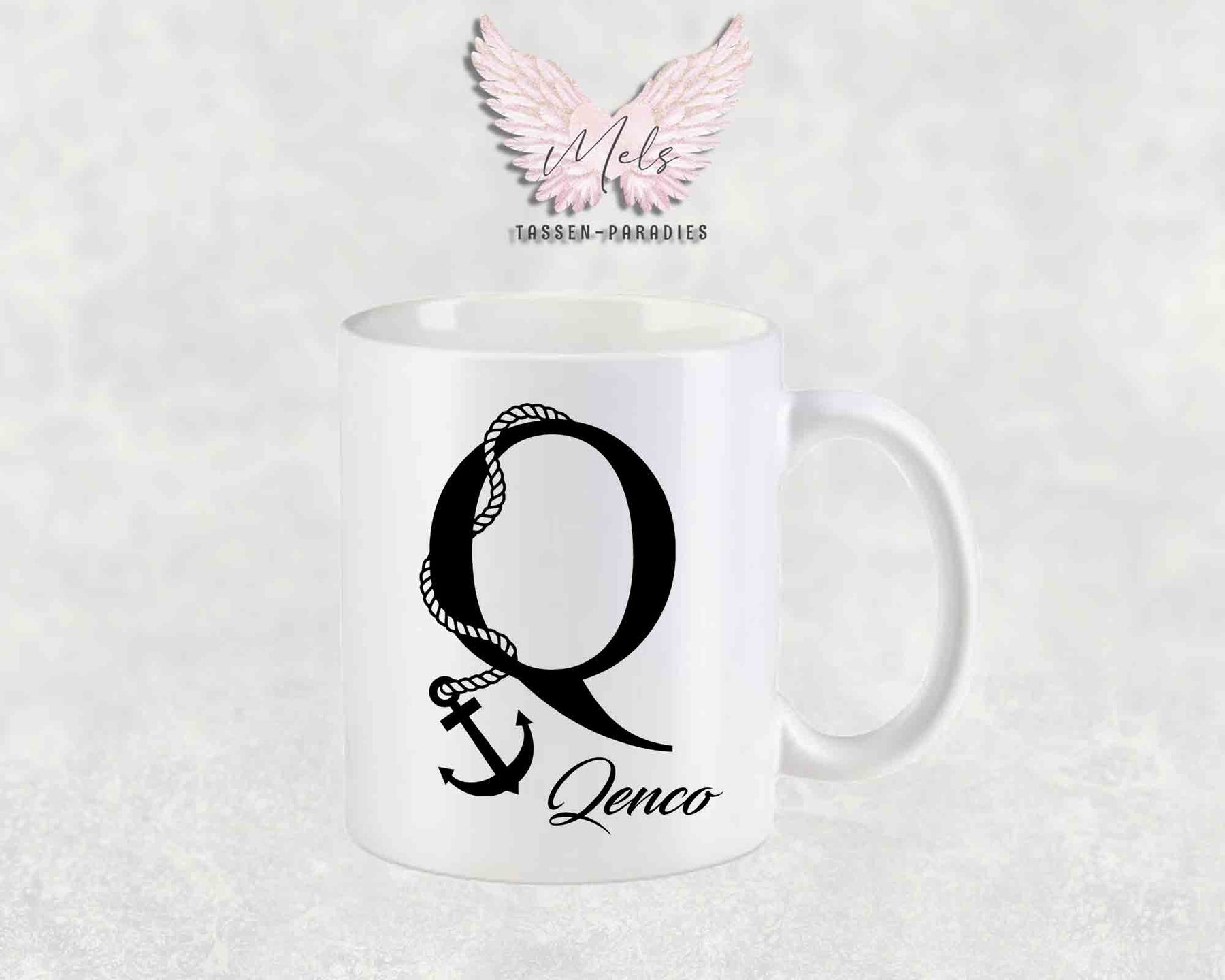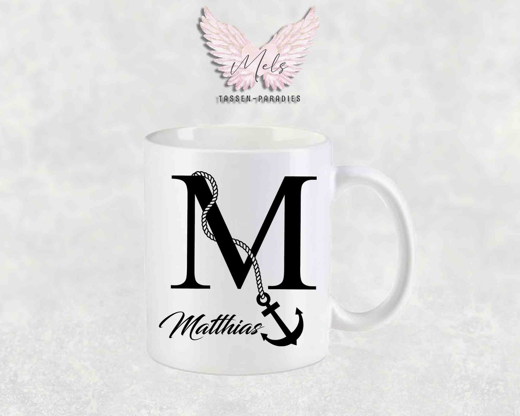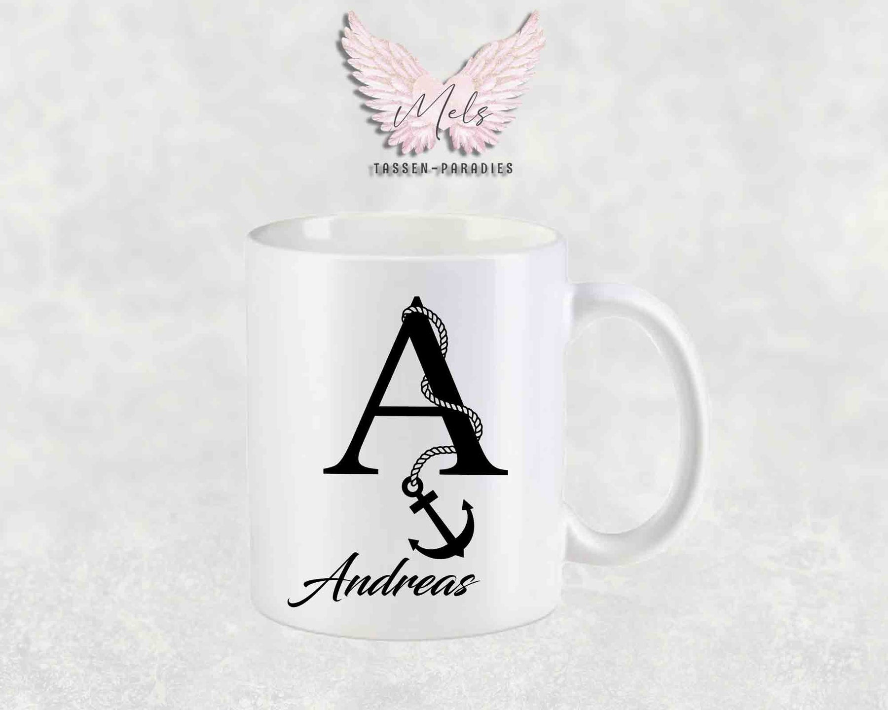 Namen mit Anker-Anfangsbuchstaben - Keramik-Tasse Weiß matt