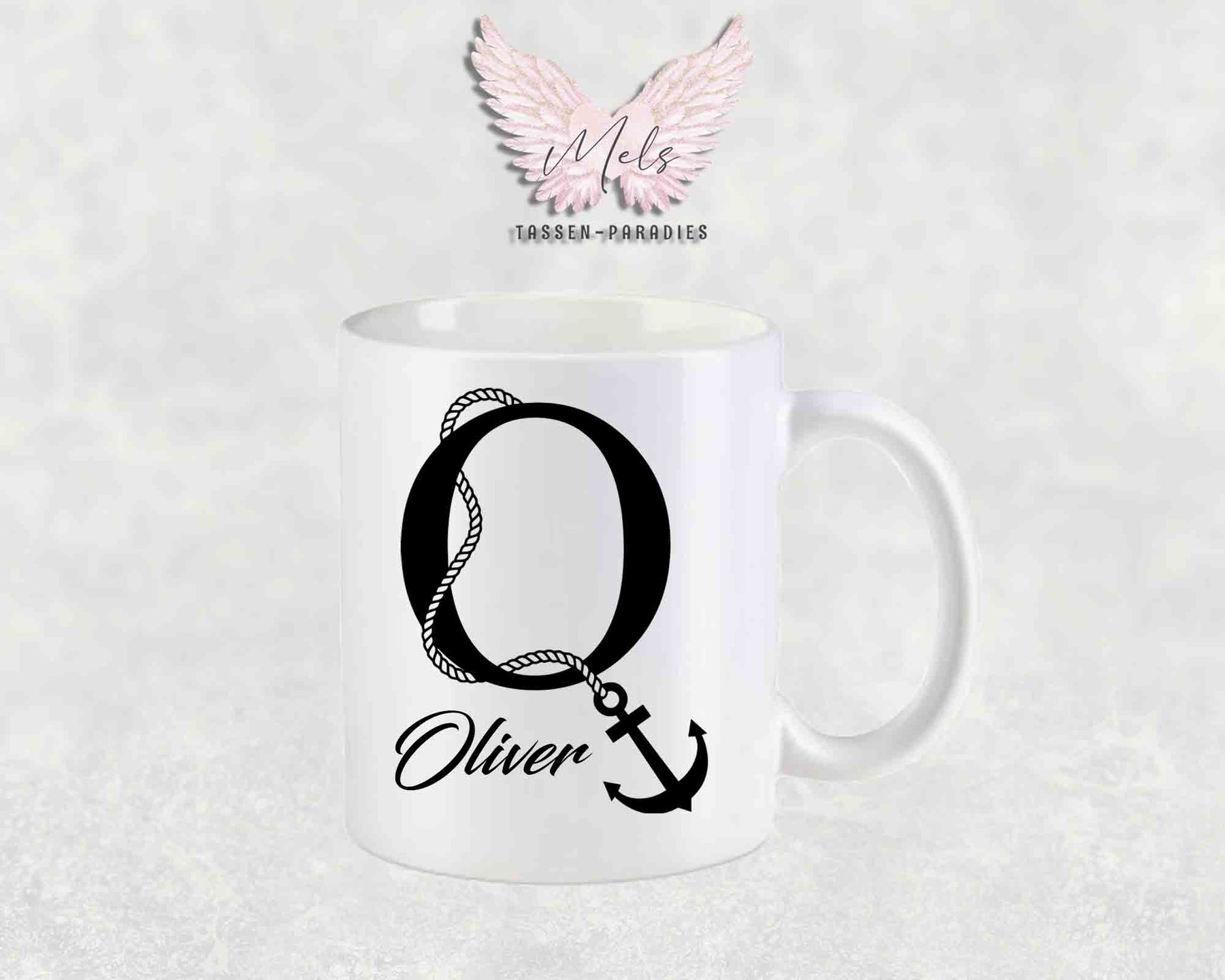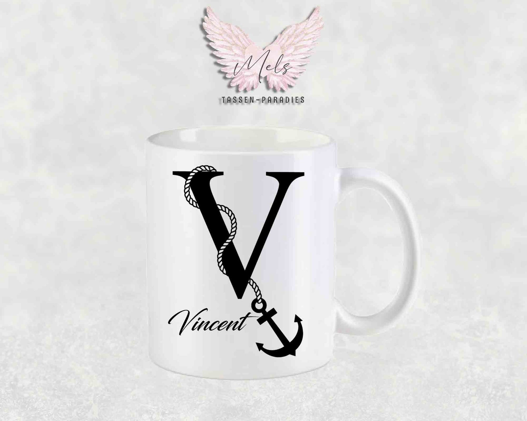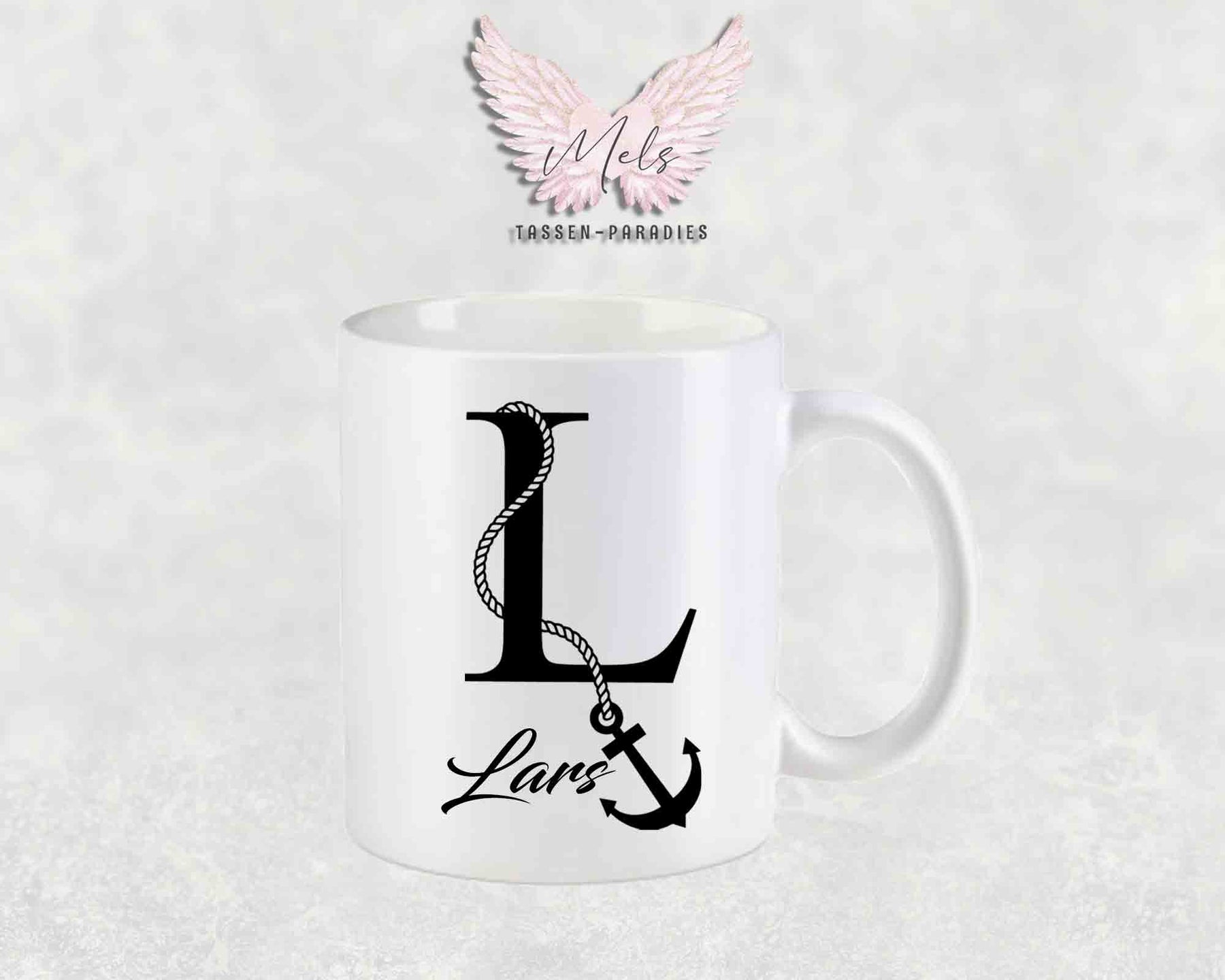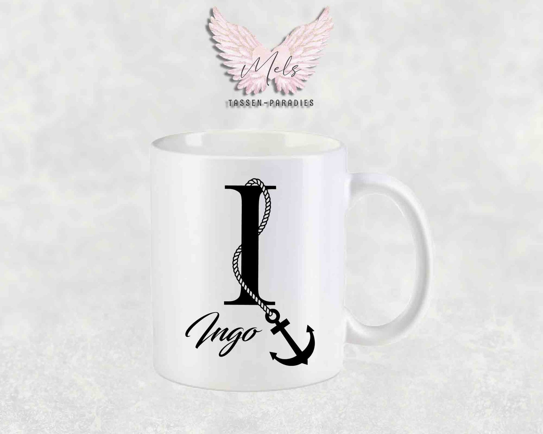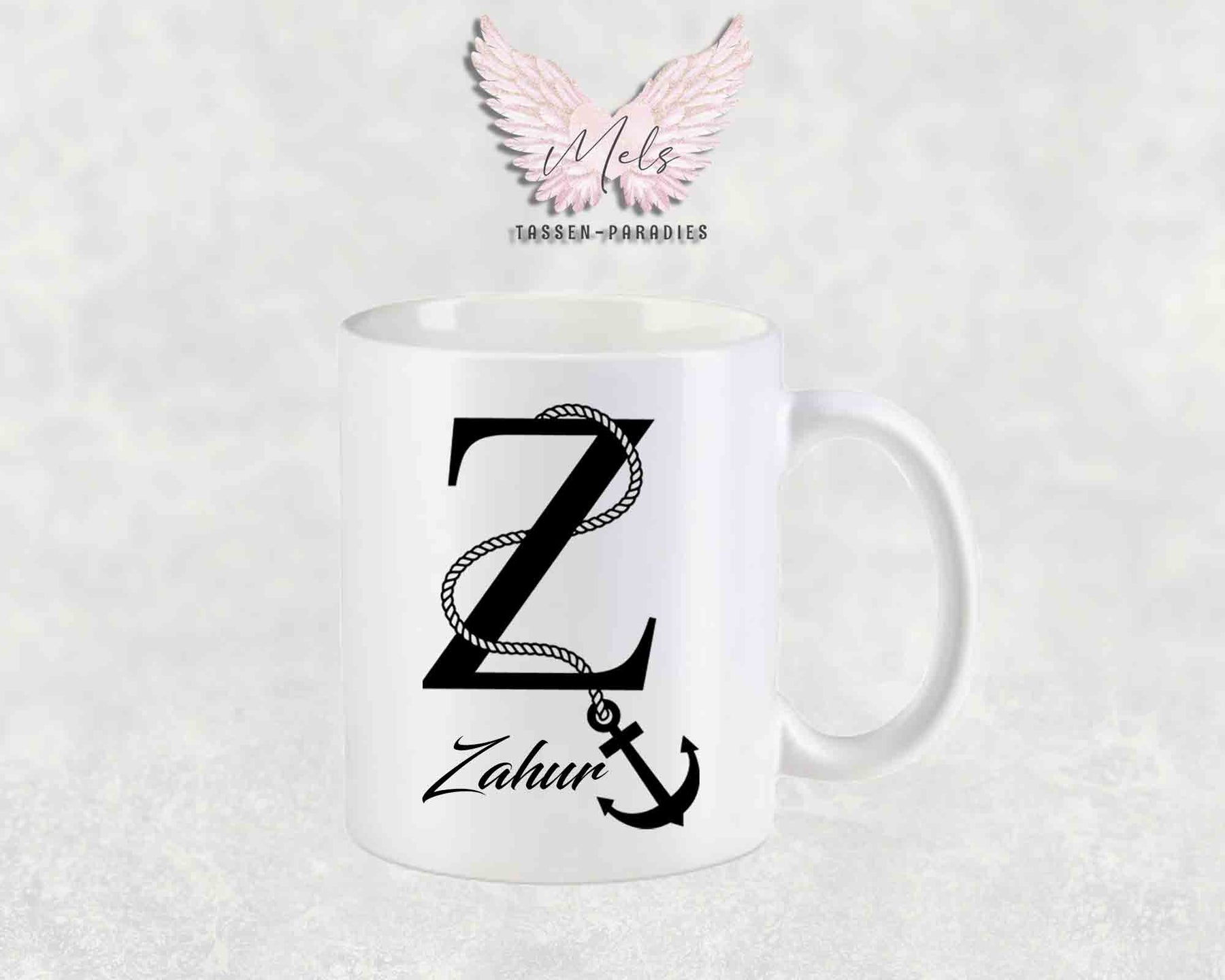 Namen mit Anker-Anfangsbuchstaben - Keramik-Tasse Weiß matt