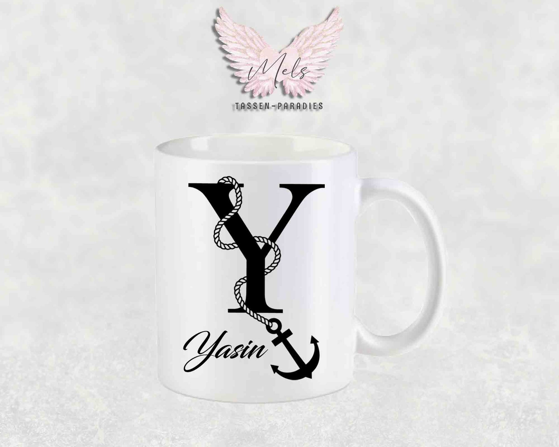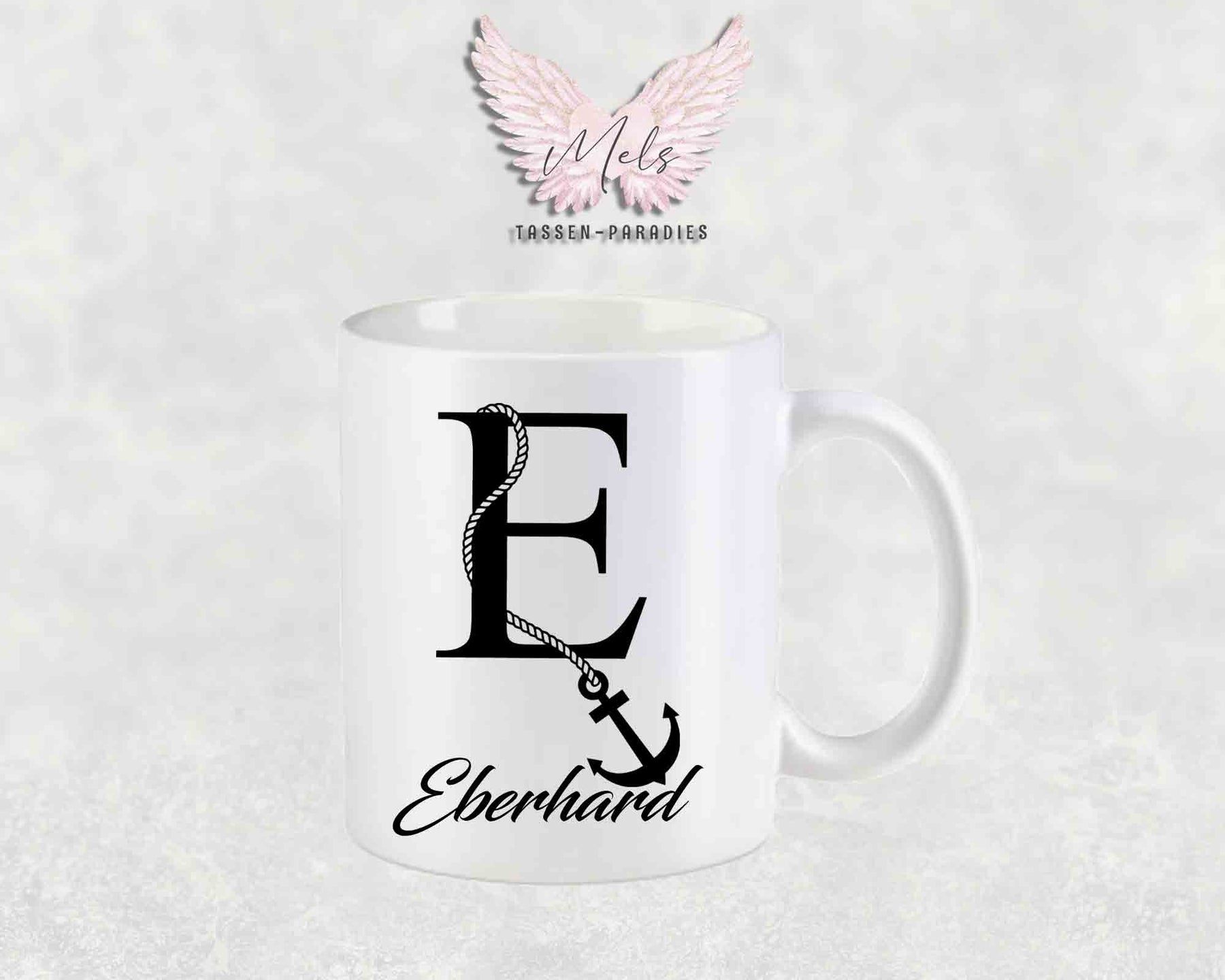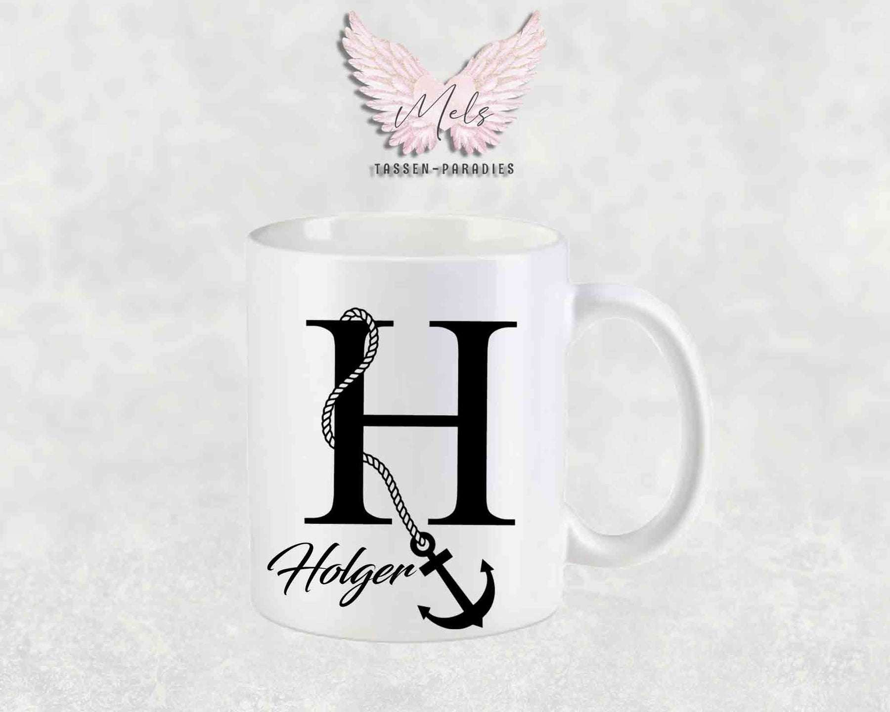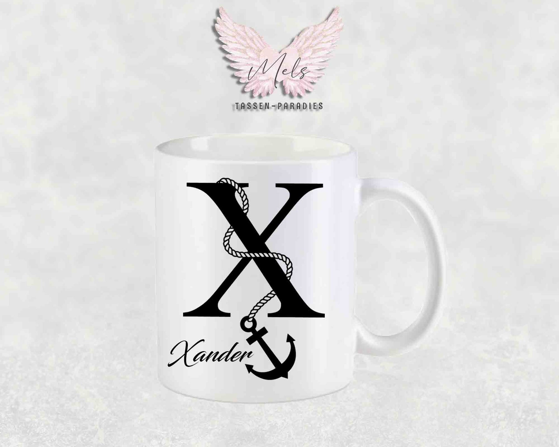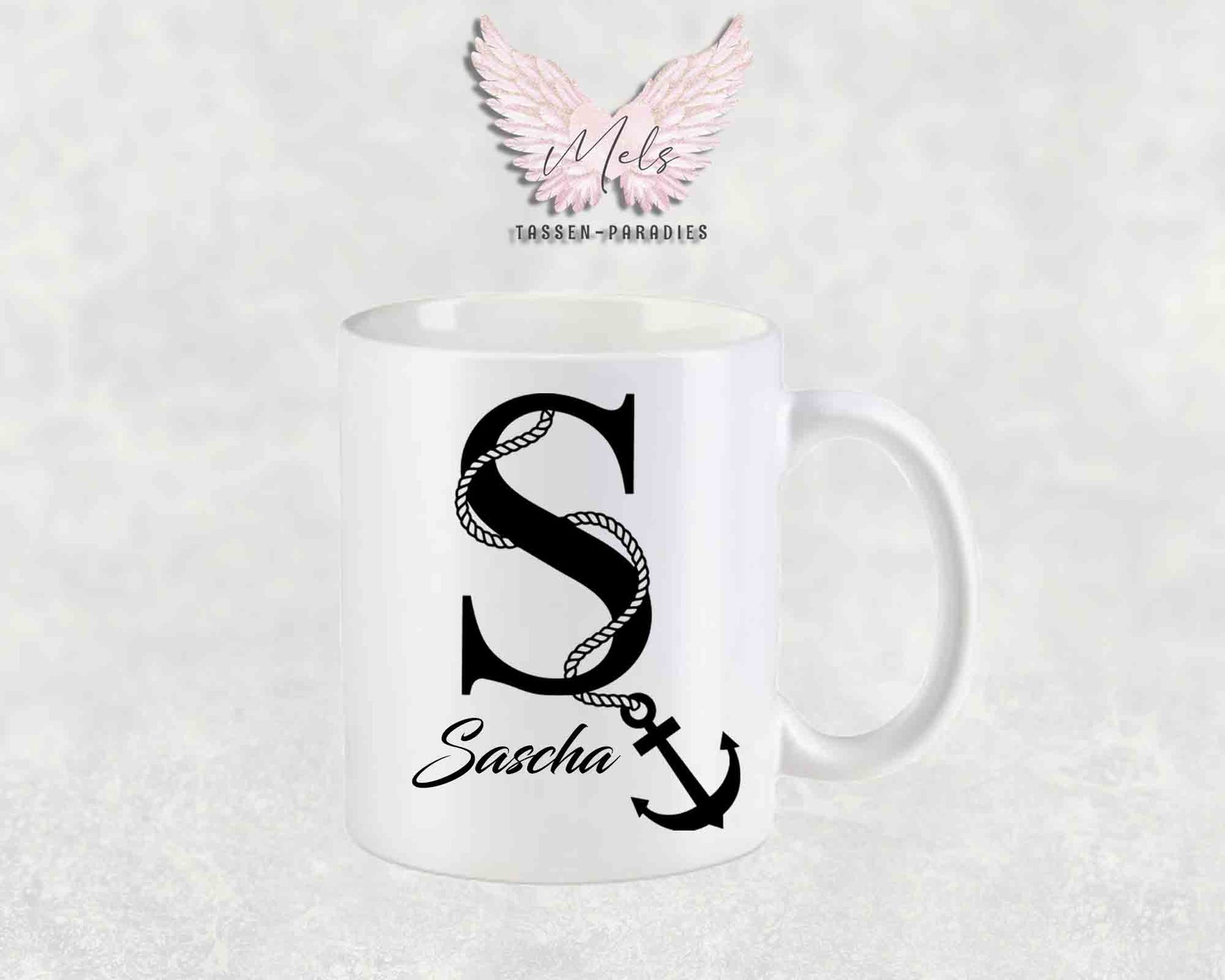 Namen mit Anker-Anfangsbuchstaben - Keramik-Tasse Weiß matt