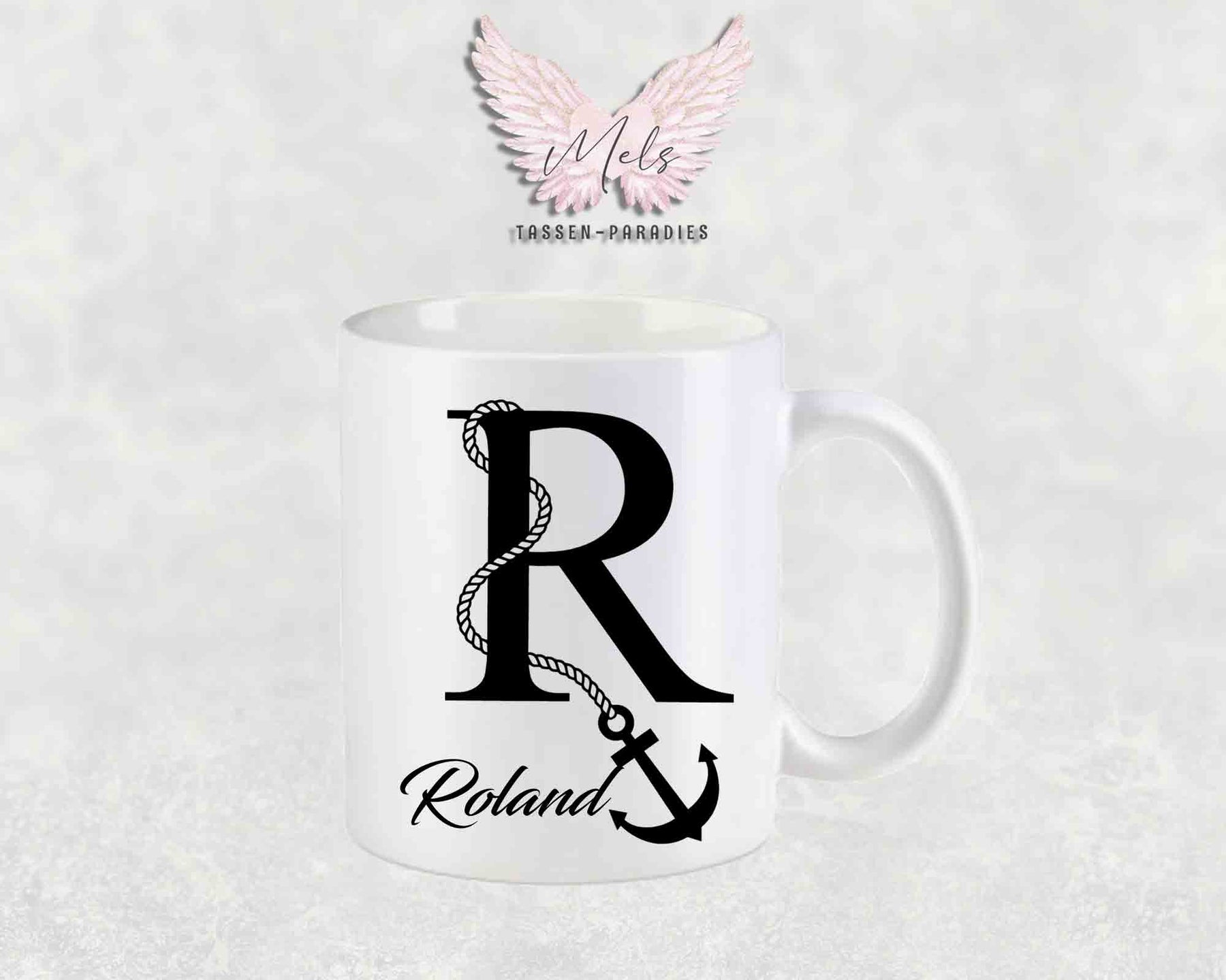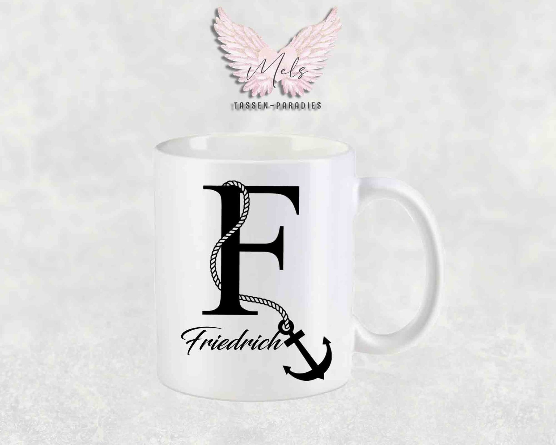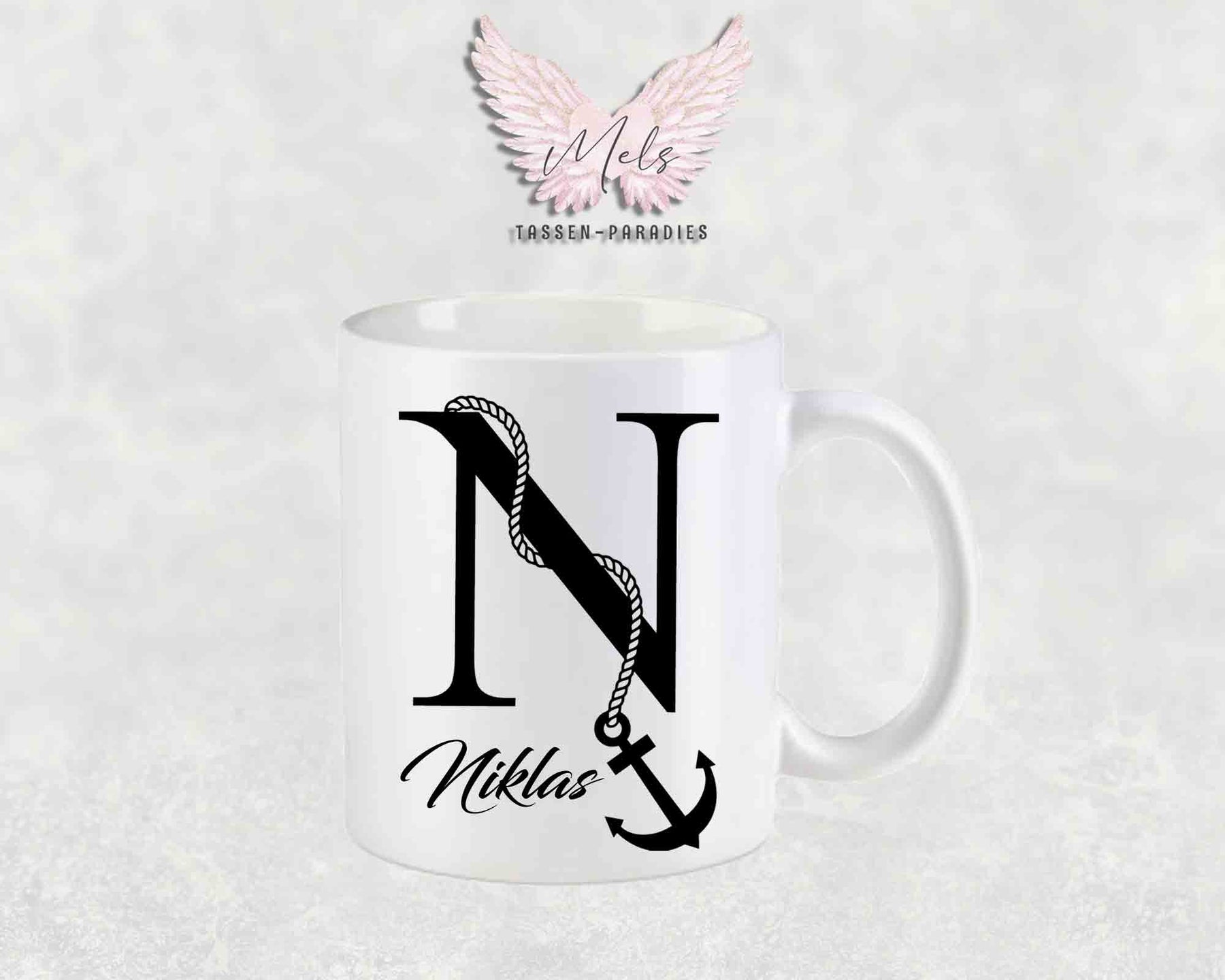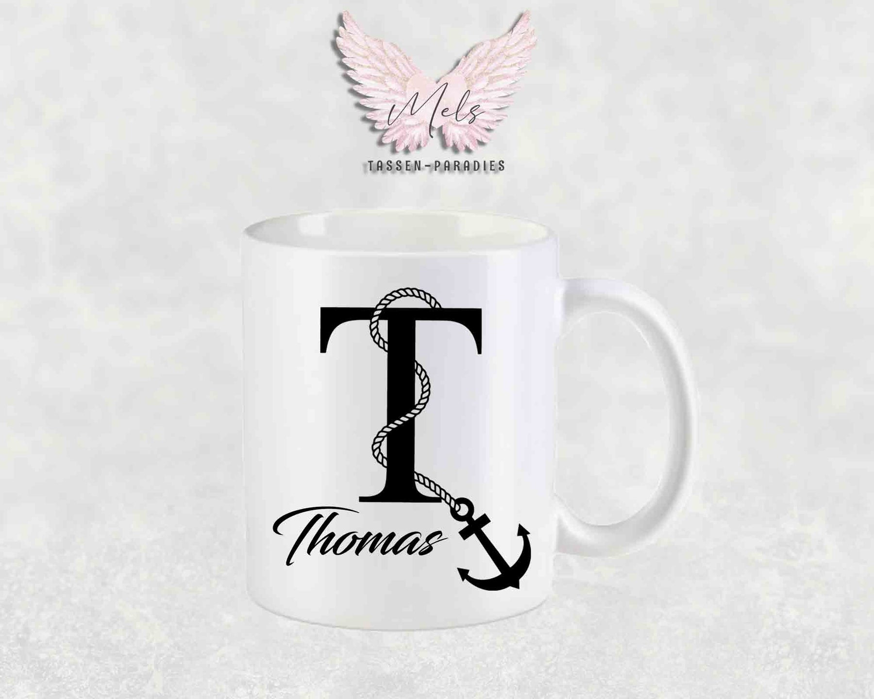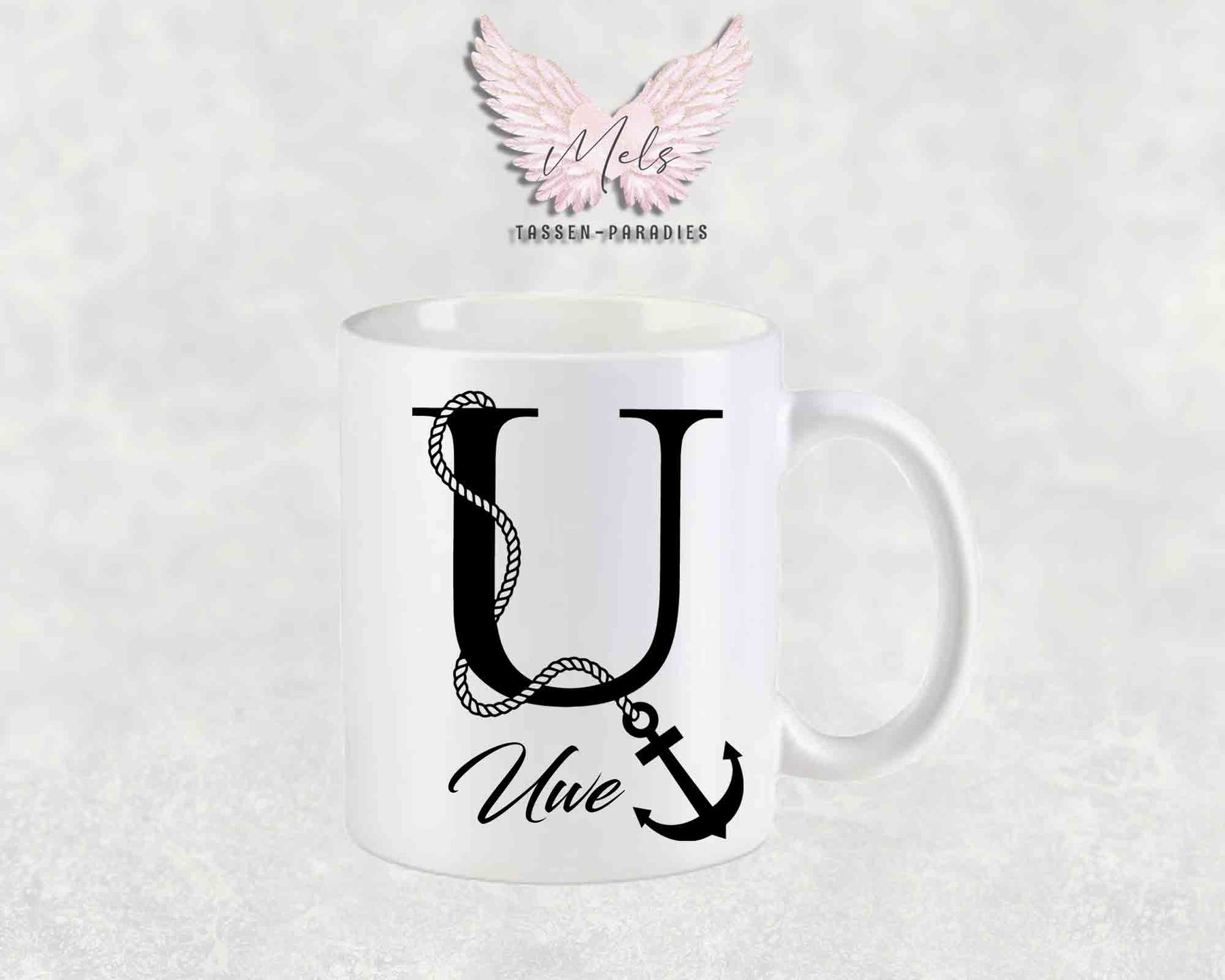 Namen mit Anker-Anfangsbuchstaben - Keramik-Tasse Weiß matt