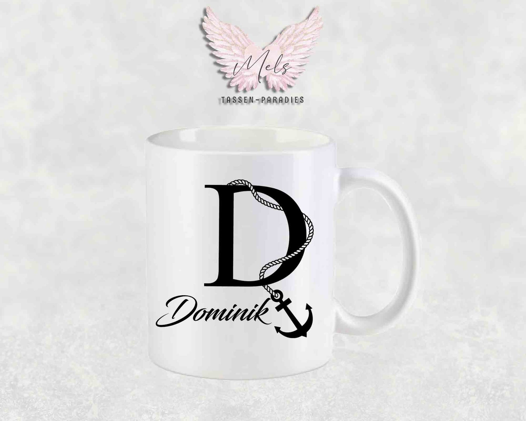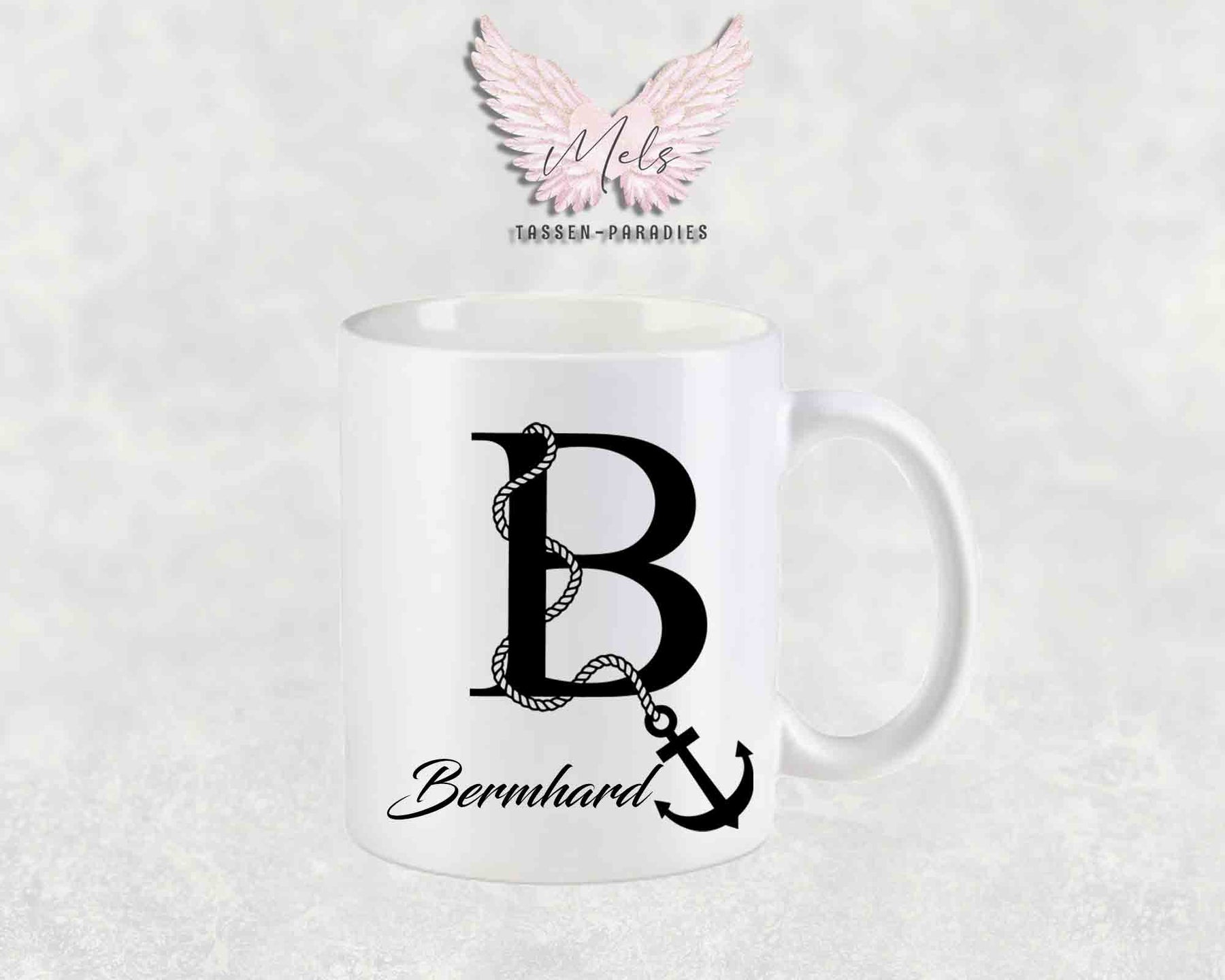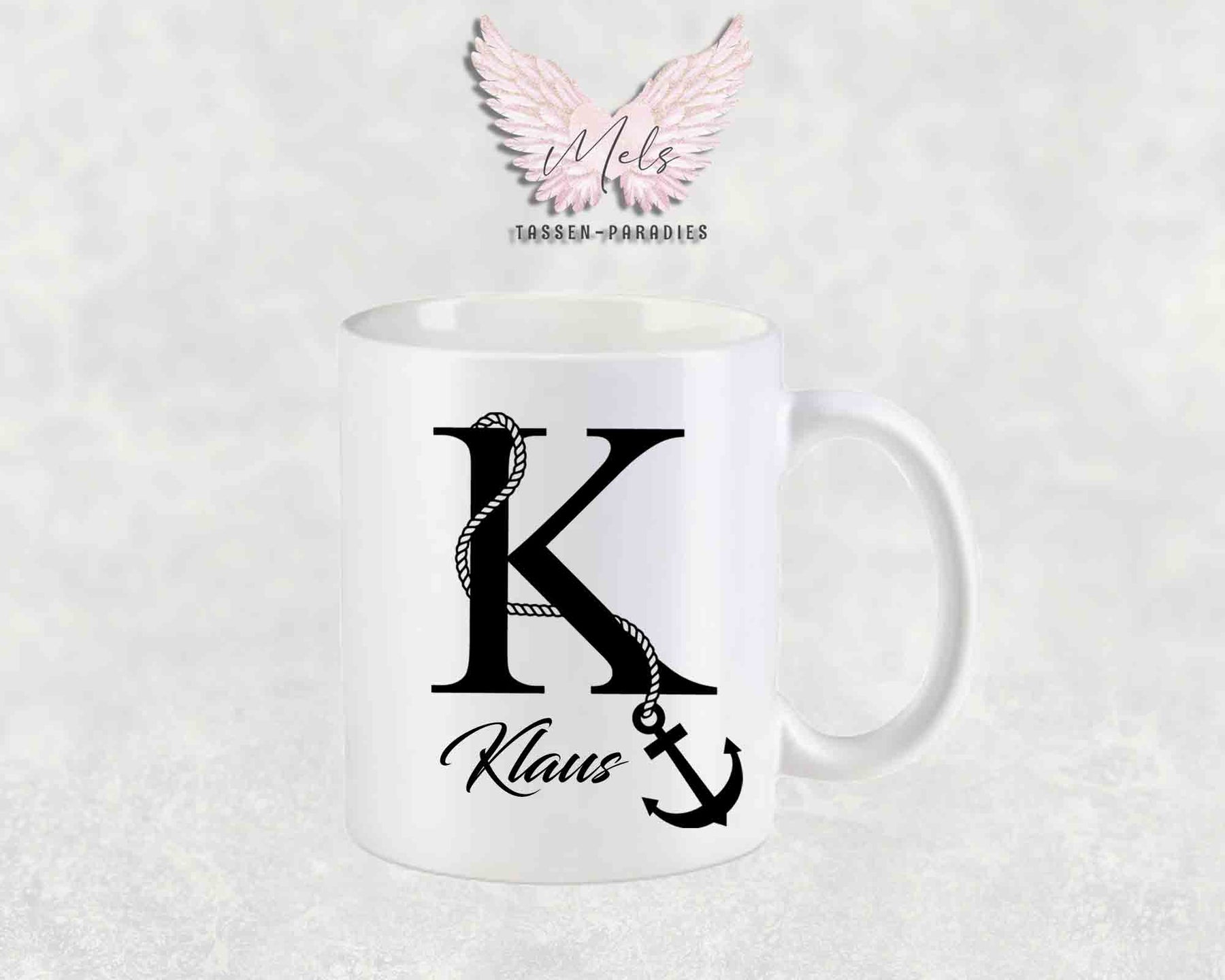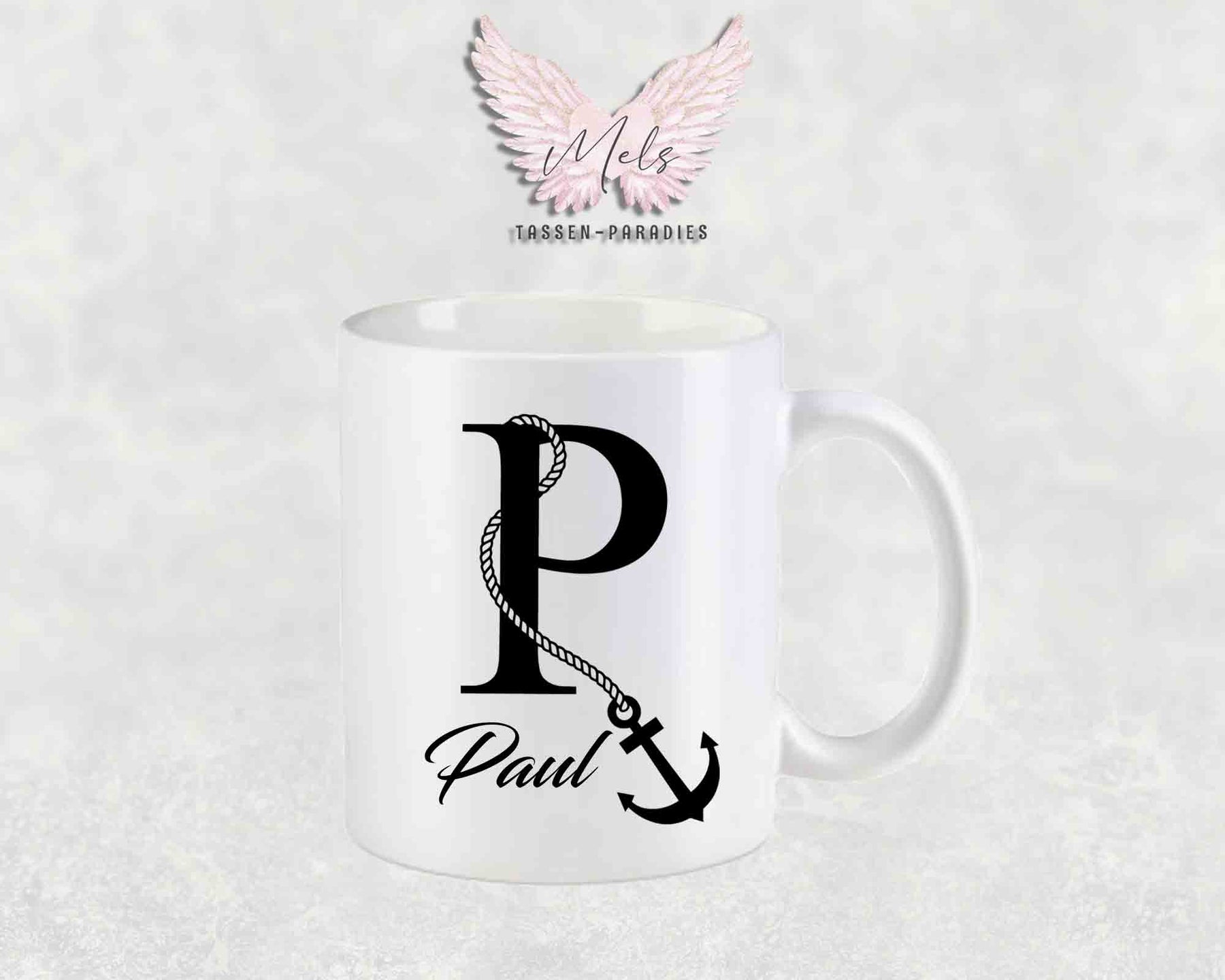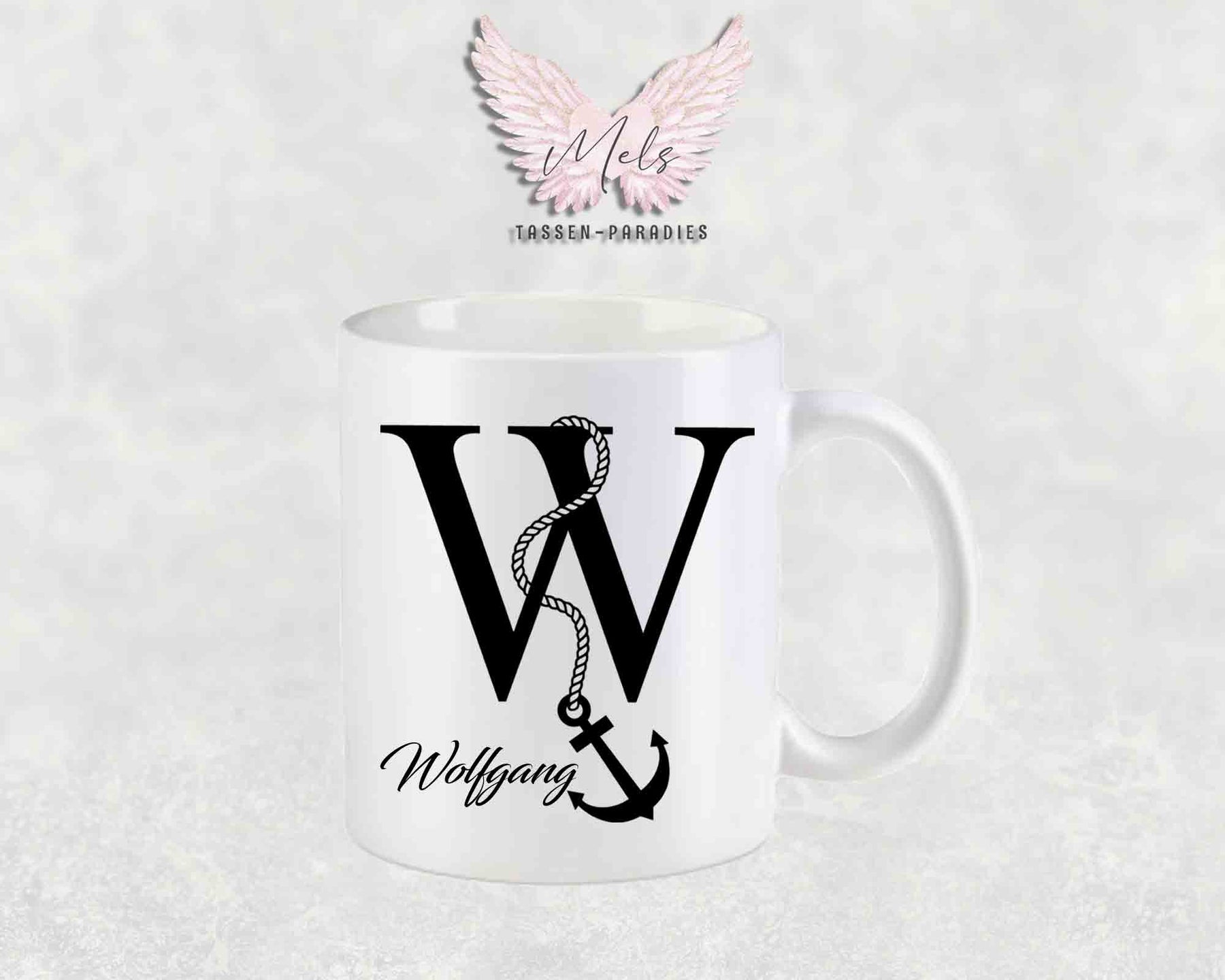 Namen mit Anker-Anfangsbuchstaben - Keramik-Tasse Weiß matt