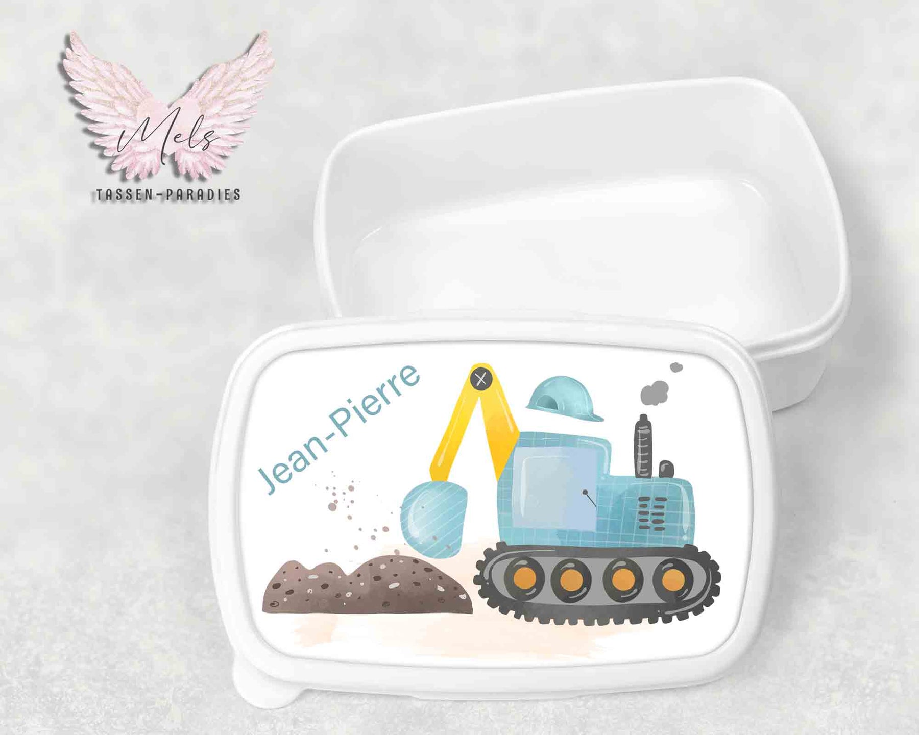 Baustelle 3 - Personalisierte Kinder-Brotbox / Lunchbox weiß mit und ohne Name