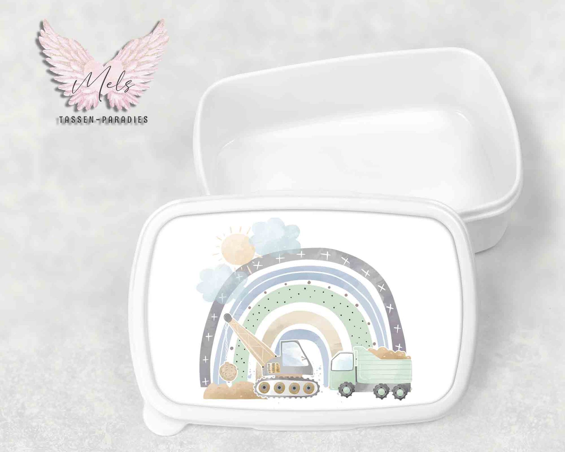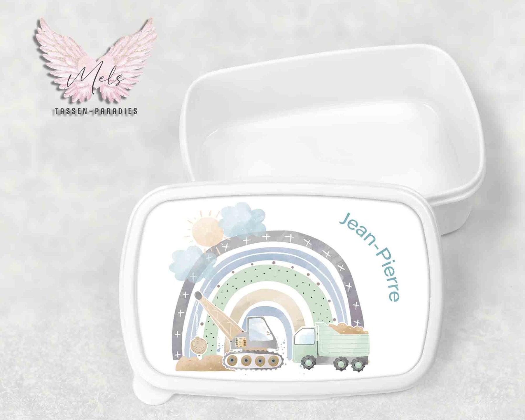 Baustelle 9 - Personalisierte Kinder-Brotbox / Lunchbox weiß mit und ohne Name