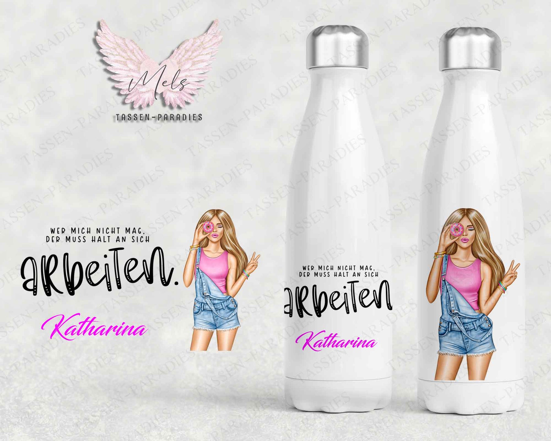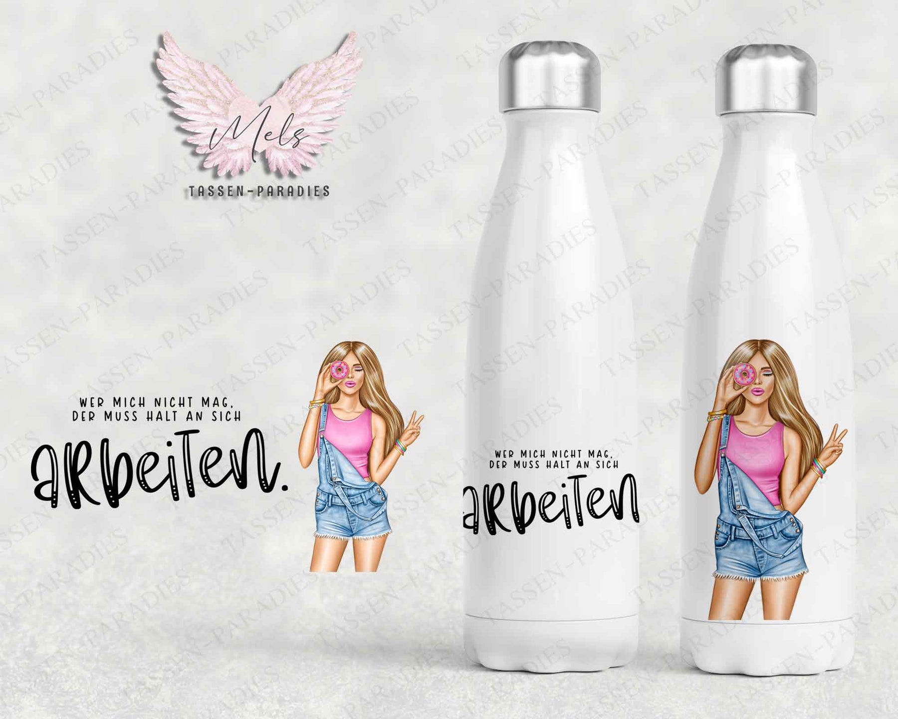 Wer mich nicht mag, der muss halt an sich arbeiten - mit Bild - Edelstahl-Thermoflasche Weiß